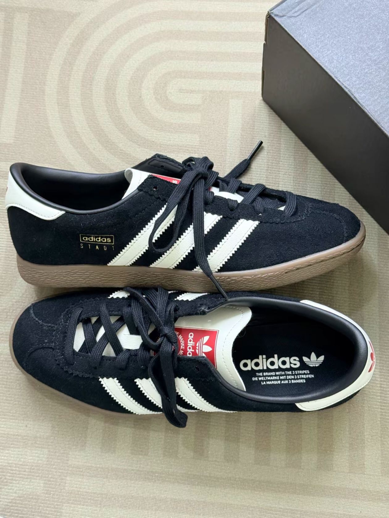 本篇笔记关联了adidas Originals Stadt T头鞋 德训鞋 运动休闲鞋 防滑耐磨舒适透气百搭潮流复古时尚薄底 黑色/汉玉白/浅猩红等商品,为用户提供真实的使用体验和购买参考。