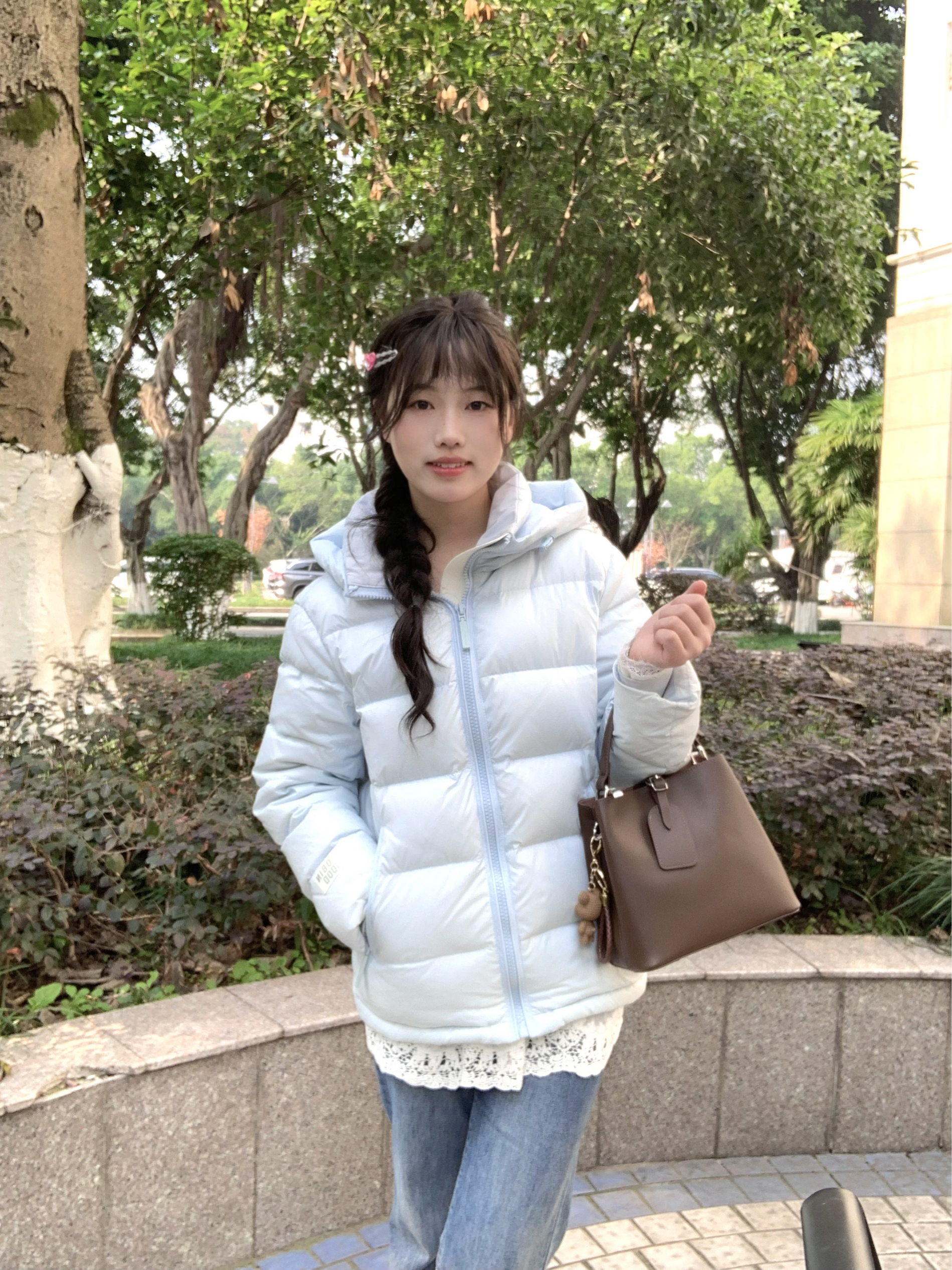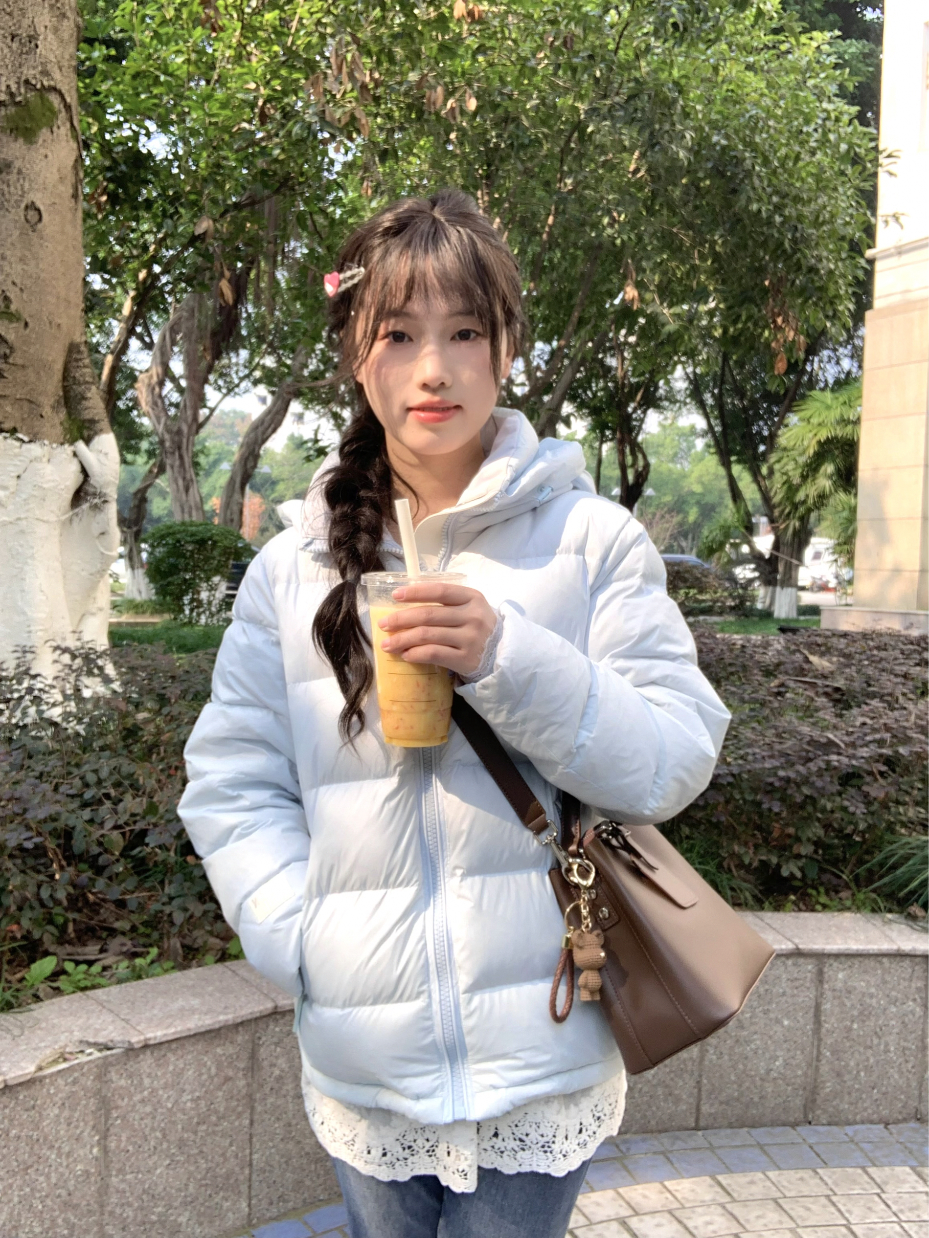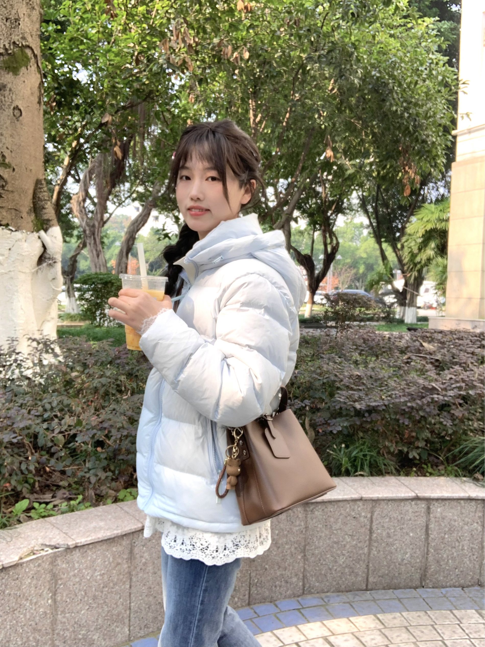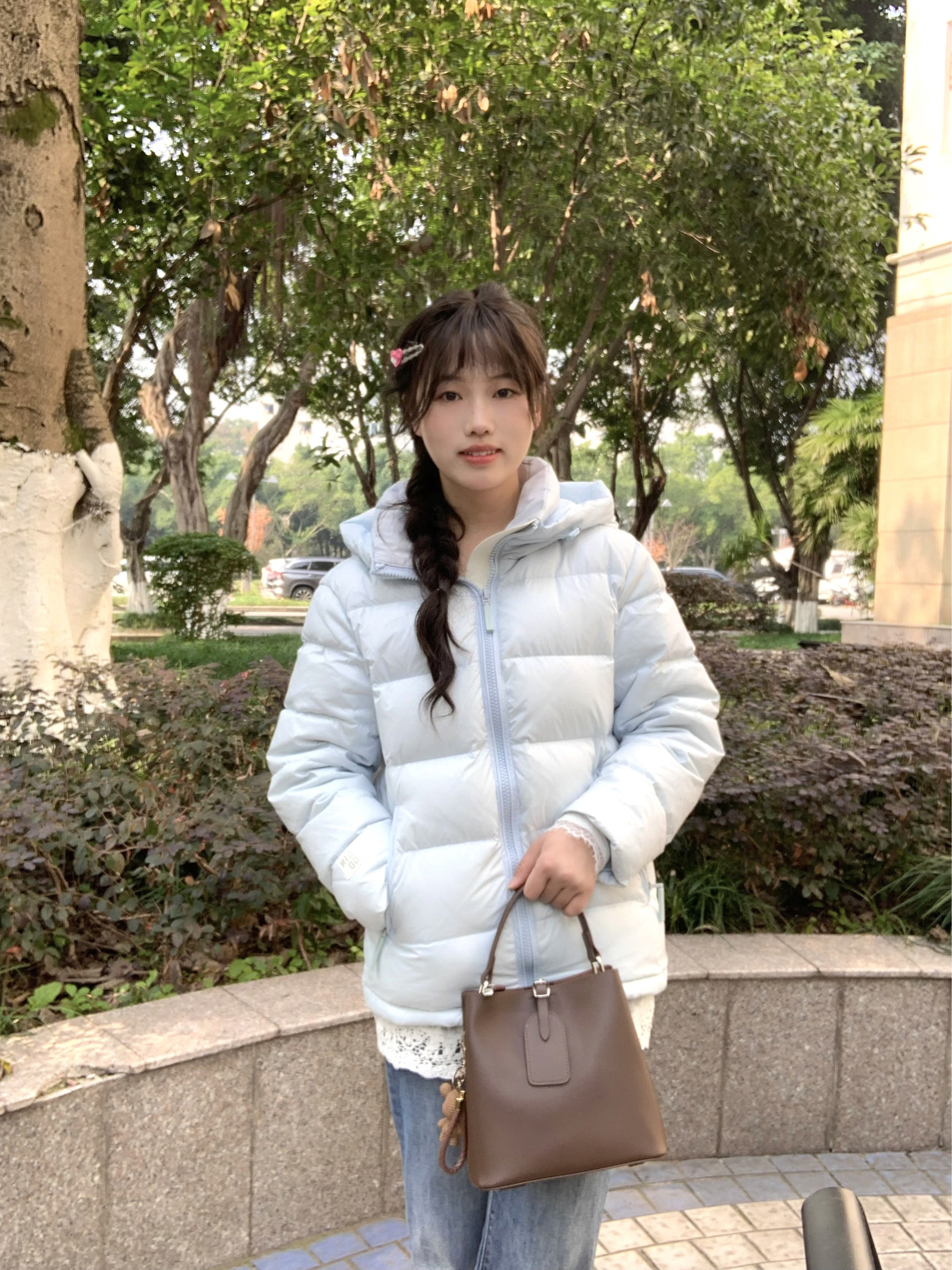 不靠建模靠穿搭也能变身美美girl👧🏻 今天穿杨超越妹妹同款罗宾汉羽绒服🌟 淡淡的蓝真的很可爱◍˃ᵕ˂◍上身秒变甜妹🥰 我的身高158厘米体重50公斤这件穿的M码哦 搭配这个通勤包包简直时尚感拉满✨ 冬日通勤必备小包,学生党上班族都能轻松驾驭