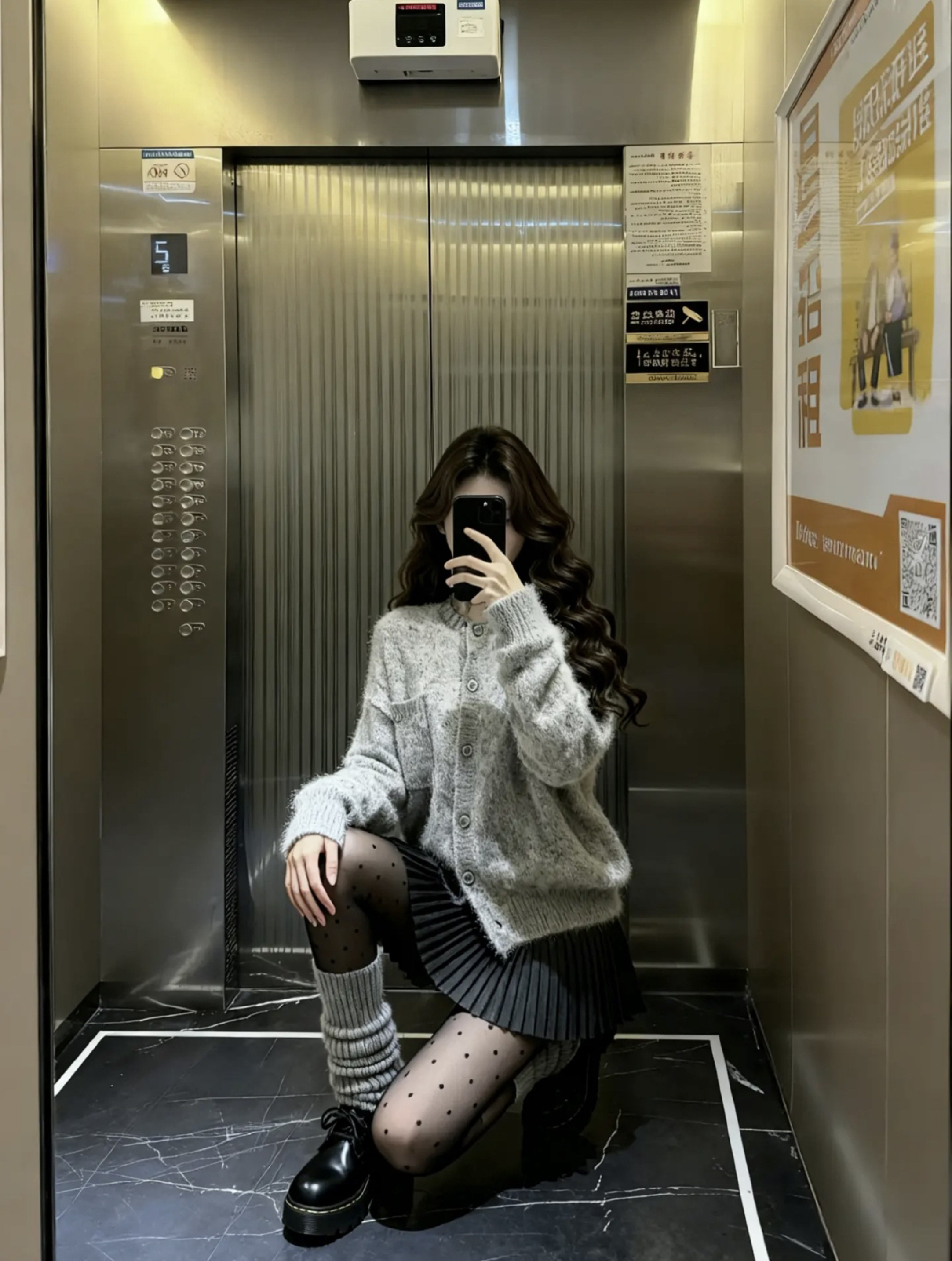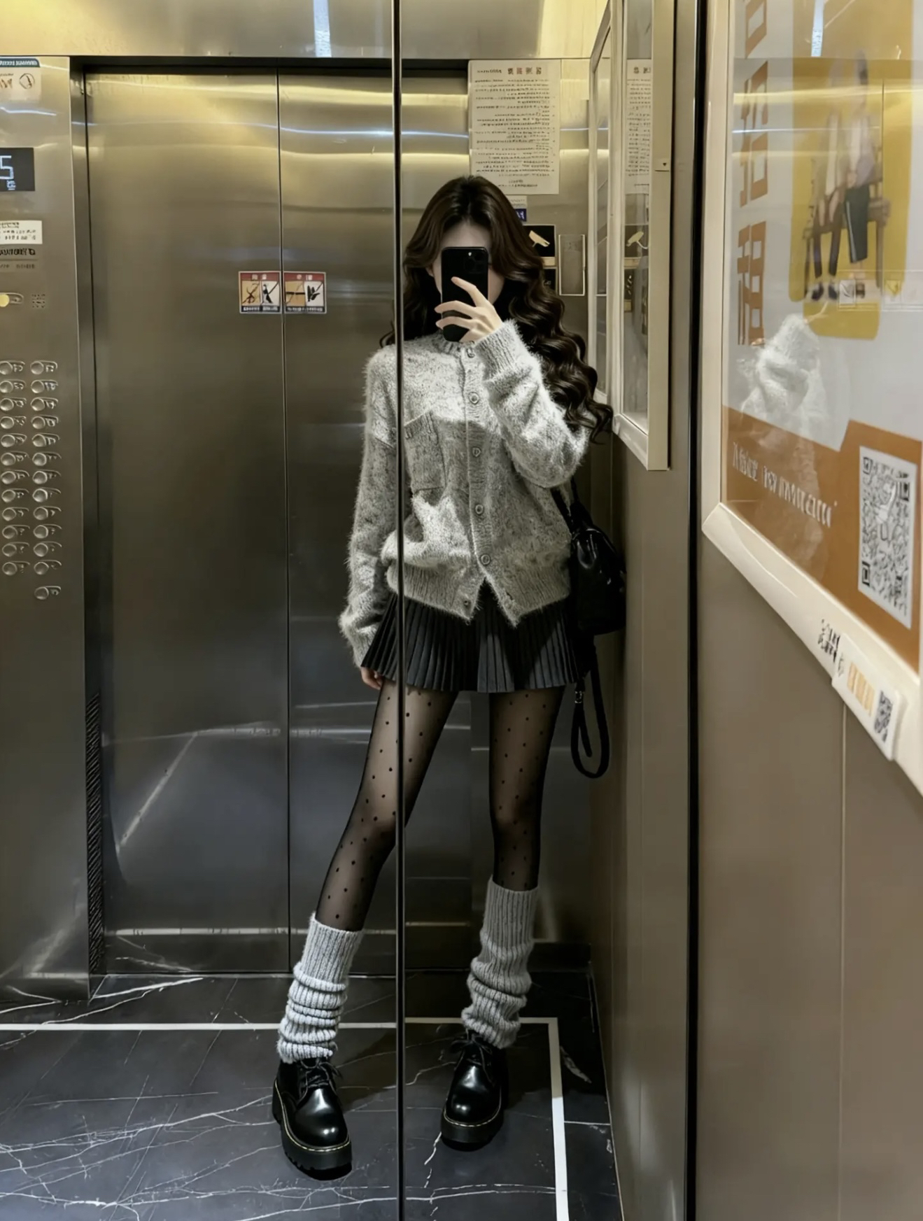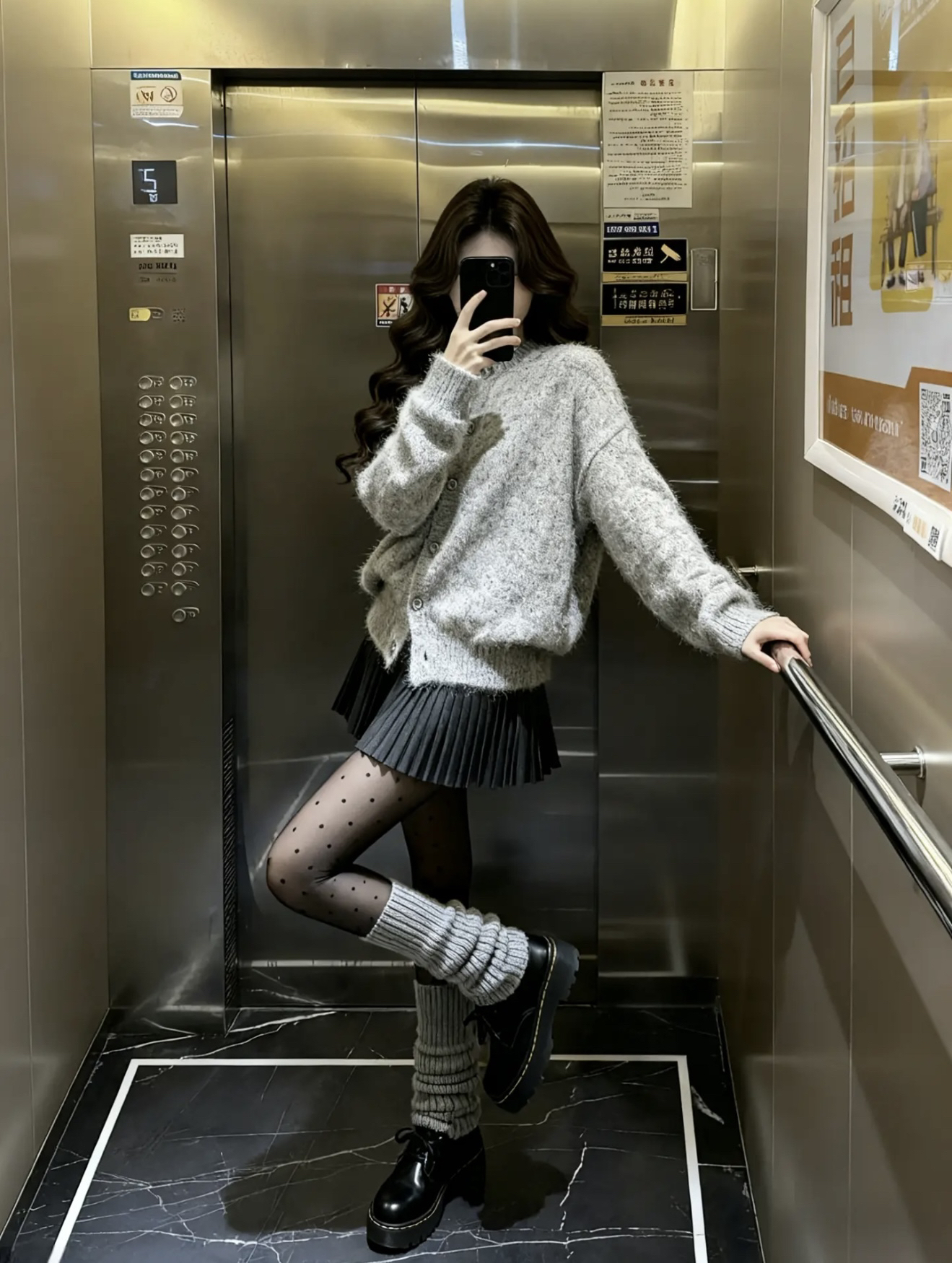 灰fufu软到想rua,搭百褶裙秒变甜妹 波点黑丝+堆堆靴是甜酷暗号 踩上厚底鞋直接把‘韩里韩气’焊在身上 电梯自拍都能出片,这穿搭公式我能穿到过年🧨