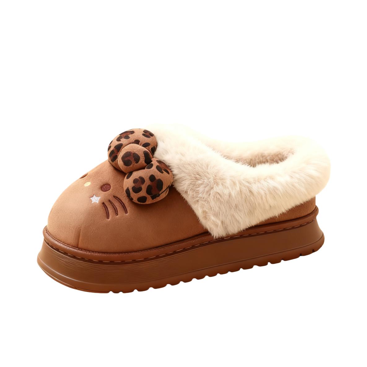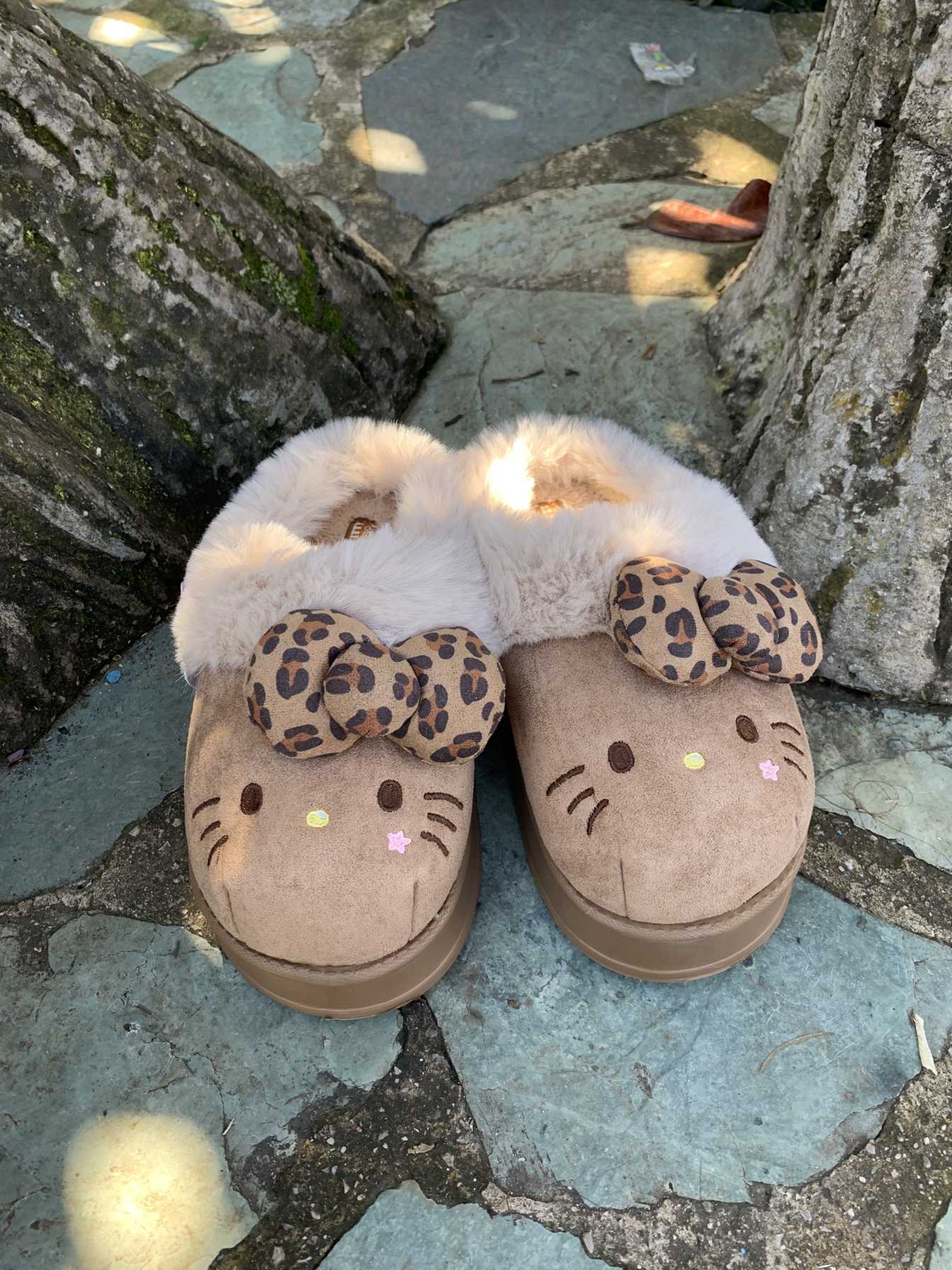 三丽鸥联名的hello Kitty毛拖鞋,我买的是棕色的,耐脏并且颜色很百搭很适合秋冬搭配~ 鞋子的内里是咖色的,久穿也不容易显脏。 其次鞋内里的毛毛做的很厚实,穿上脚🦶感觉整个人都是暖呼呼的😆一点都不感到寒冷🥶 鞋子大概有个2-3cm的增高,鞋子高度对小个子很友好并且也不会崴脚!🤓本人亲测穿着暴走也完全🆗 颜值高穿脱方便我愿称之为Kitty控懒人冬日福音毛拖鞋🥰😍