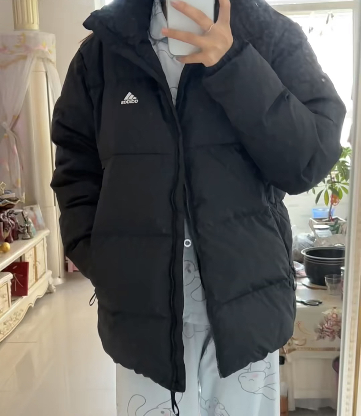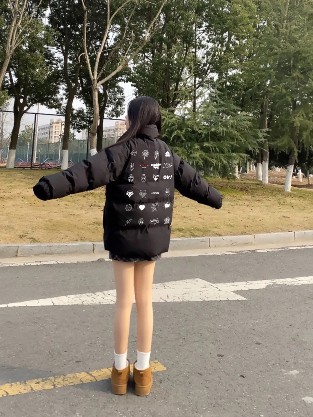 分享一下上身这件百搭的羽绒服: 高蓬松度带来的廓形感+简约黑色,轻松印花设计,自带一定层次感,方便叠穿,轻便舒适 填充物是白鸭绒,高绒子含量,阔型的剪裁对于身材的包容度也很高 轻松出门,all black也能细节