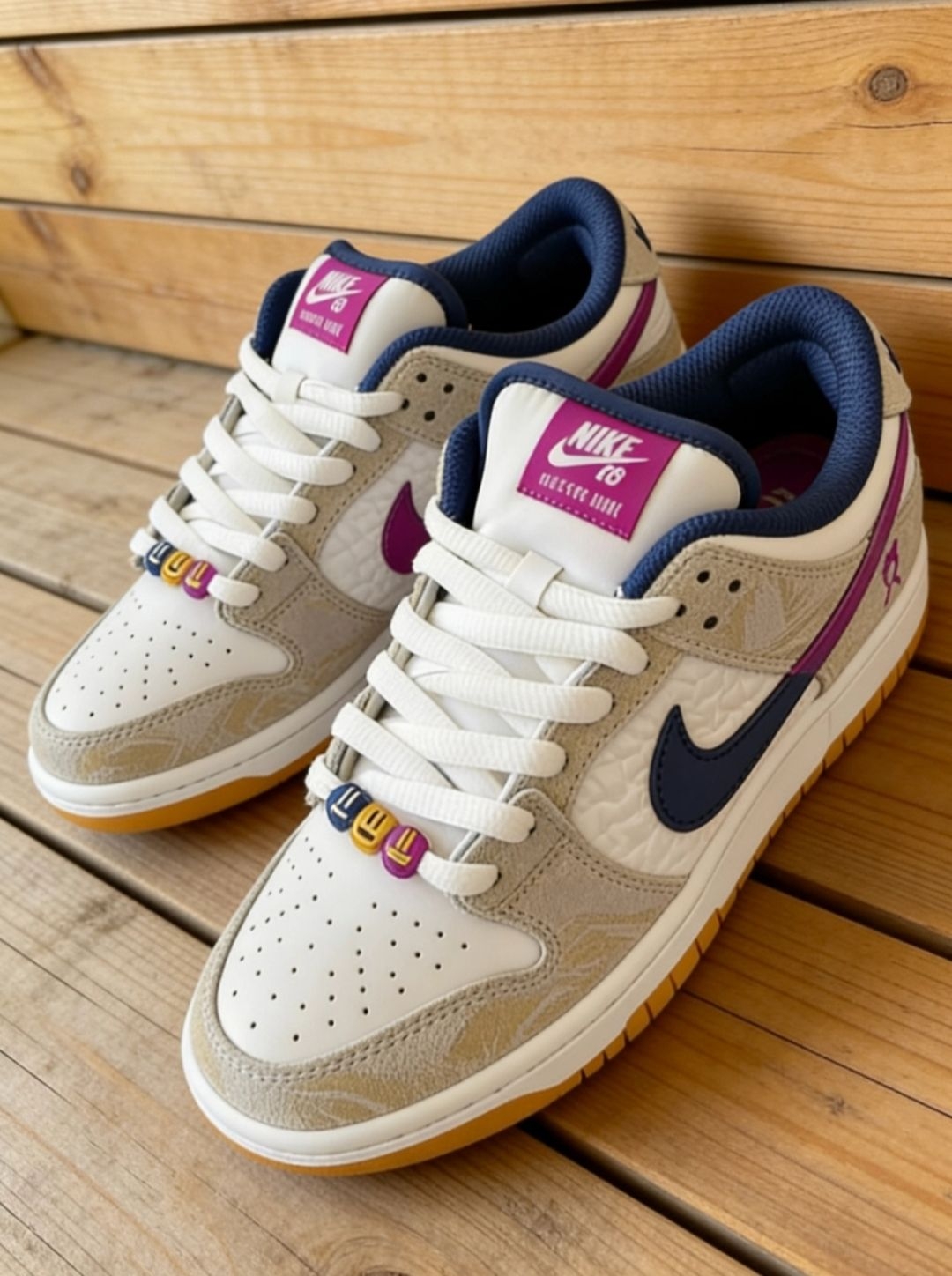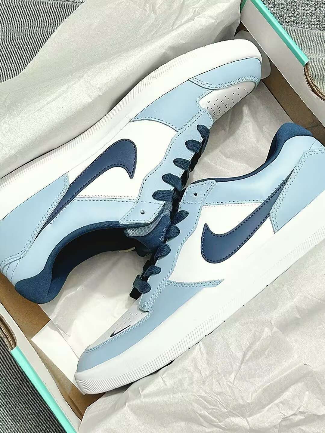这双Nike SB Force 58以冰蓝为主调,搭配海军蓝与米白撞色设计,鞋头的迷你Swoosh、鞋身的海军蓝大勾形成层次感,鞋舌处的Nike SB标识与后跟的SB浮雕细节拉满,尽显滑板鞋的街头质感。 鞋面采用皮革材质打造,兼顾质感与耐用性;鞋头的透气冲孔设计提升上脚舒适度,鞋底的六边形纹路则保证了滑板时的抓地力与耐磨性。整体配色清新又不挑穿搭,不管是日常出街还是滑板运动,都是极具辨识度的选...