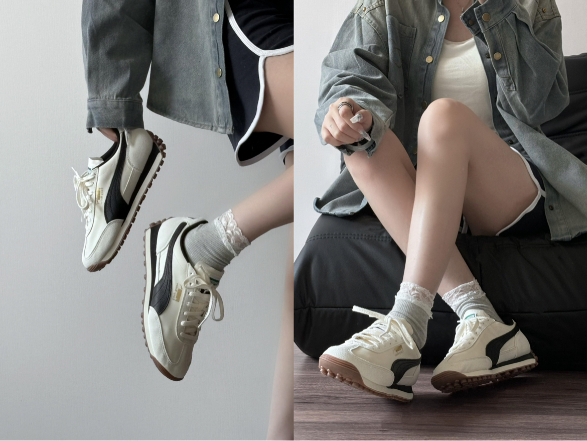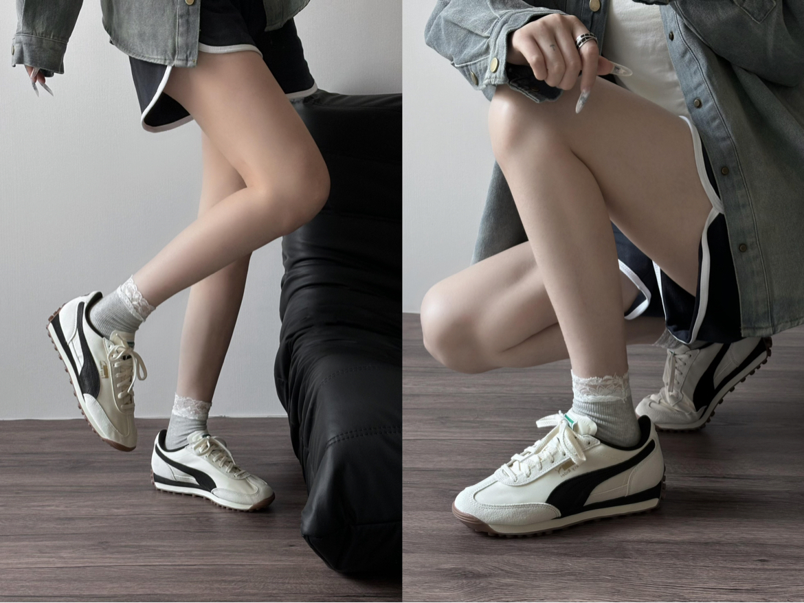 入手这双复古跑鞋,白黑金标配色很对味,麂皮与皮革拼接有质感,搭牛仔、短裙都能穿出复古松弛感。脚感意外舒服,鞋底有回弹,日常走路没负担。美中不足是麂皮易沾灰,清洁要仔细;夏天穿久了,鞋内透气性一般。但它的复古调与实穿性,还是让我愿意常穿,算是穿搭里的“氛围担当”