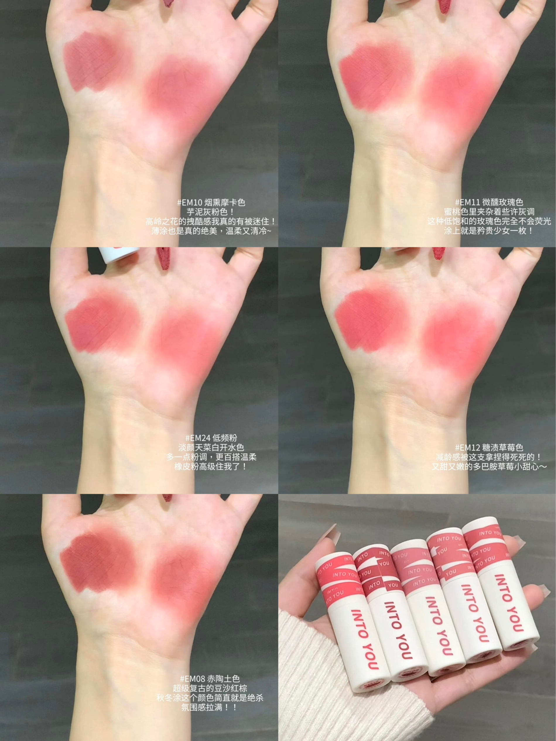 本篇笔记关联了INTO YOU 心慕与你女主角唇颊两用唇泥 雾面丝绒哑光 2g EM11微醺玫瑰色、INTO YOU 心慕与你女主角唇颊两用唇泥 雾面丝绒哑光 2g EM12糖渍草莓色、INTO YOU 心慕与你女主角唇颊两用唇泥 雾面丝绒哑光 2g EM14冰莓红等商品,为用户提供真实的使用体验和购买参考。