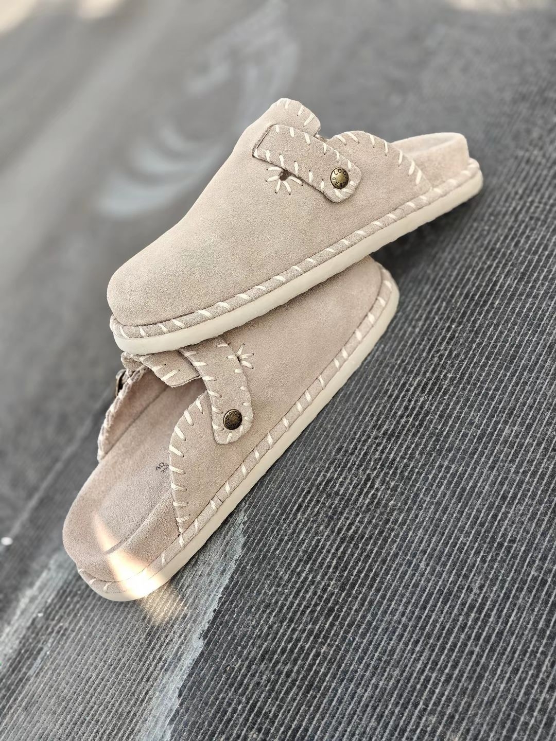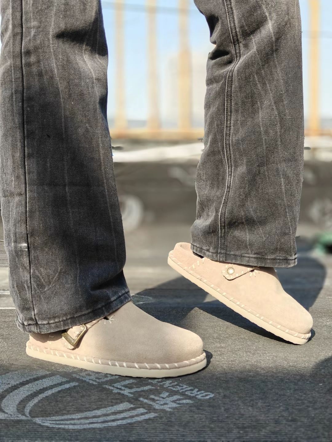 今天选了这双冬天穿的牛反绒勃肯拖 而且进口牛反绒软乎乎的 上手摸起来质感 在说包头设计藏肉还显脚瘦 35mm厚底悄悄增高,走路软乎乎的 加上金属调节扣也是方便穿,男女同款的宅家 遛弯、咖啡店打卡穿也百搭 上脚很舒服,不挑码数。