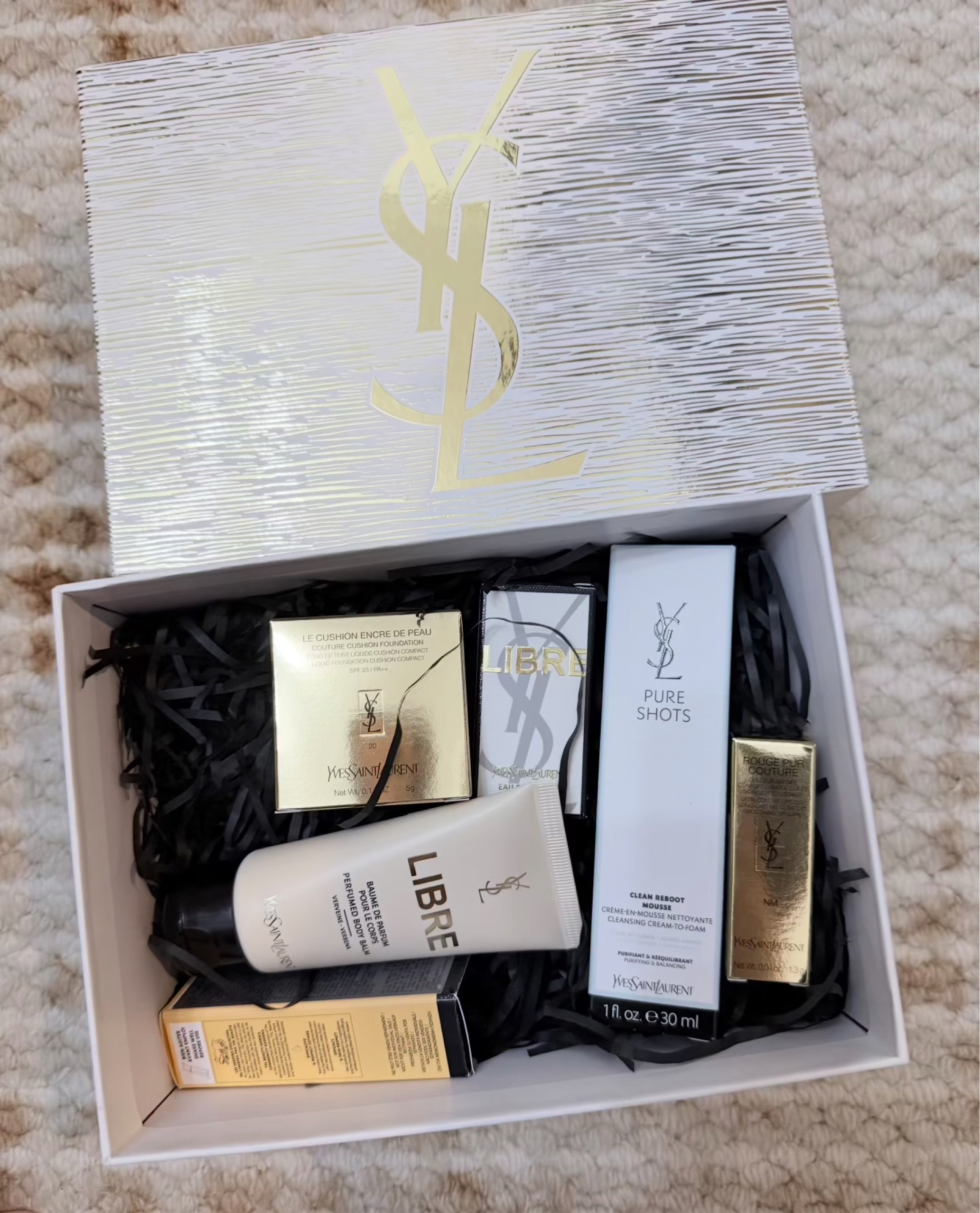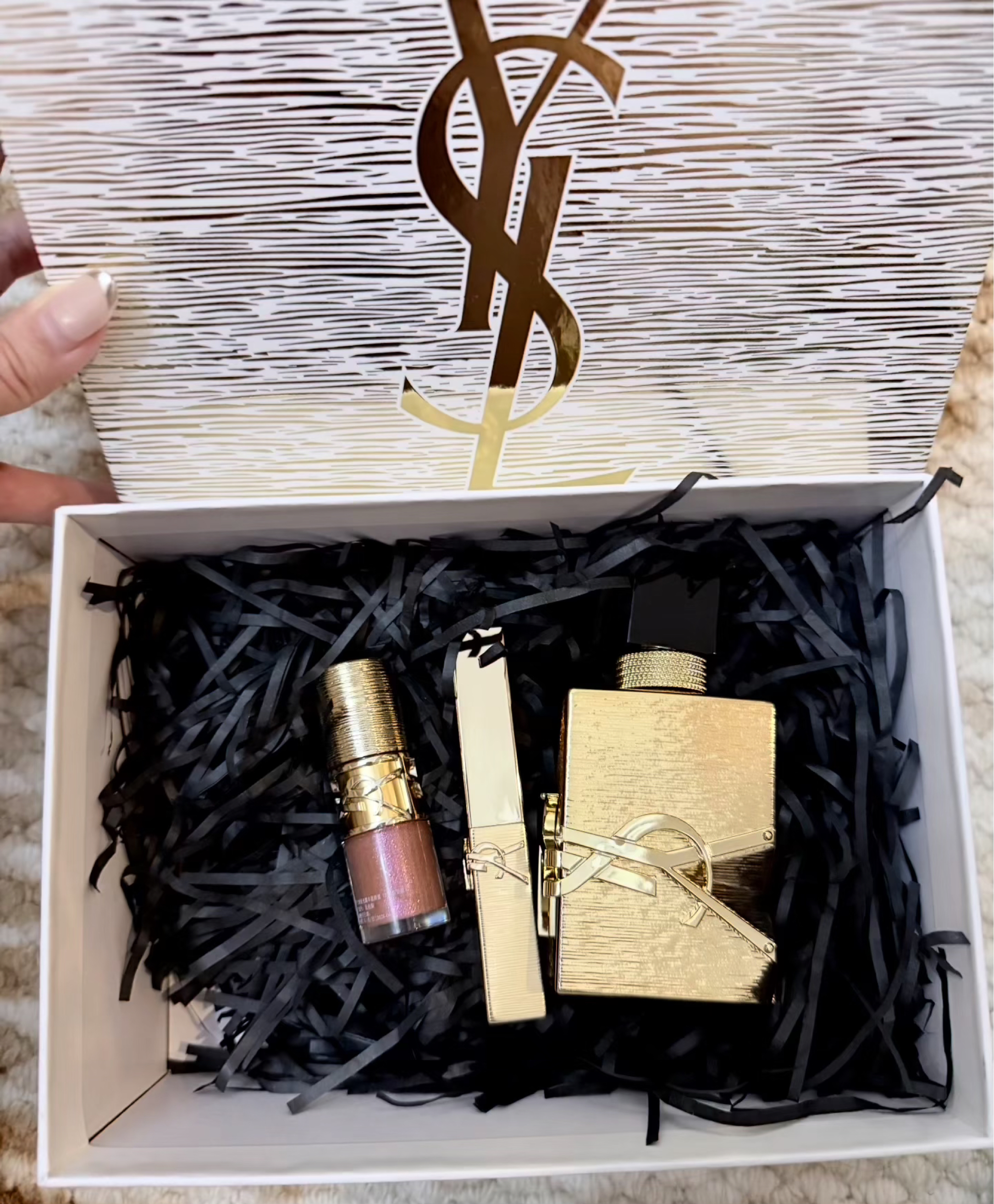 我们女孩子就喜欢这样金灿灿的东西 唇蜜很好看 可叠涂 图三live 香水是经典的自由之水 后调是奶香味 家里还剩一半 收到礼盒正好补货了 小金条口红变成大金条口红了hhh 这个色号刚好没有 还送了一大堆赠品 #彩妆 #礼盒套装 #ysl #ysl圣诞限定 #圣诞礼盒