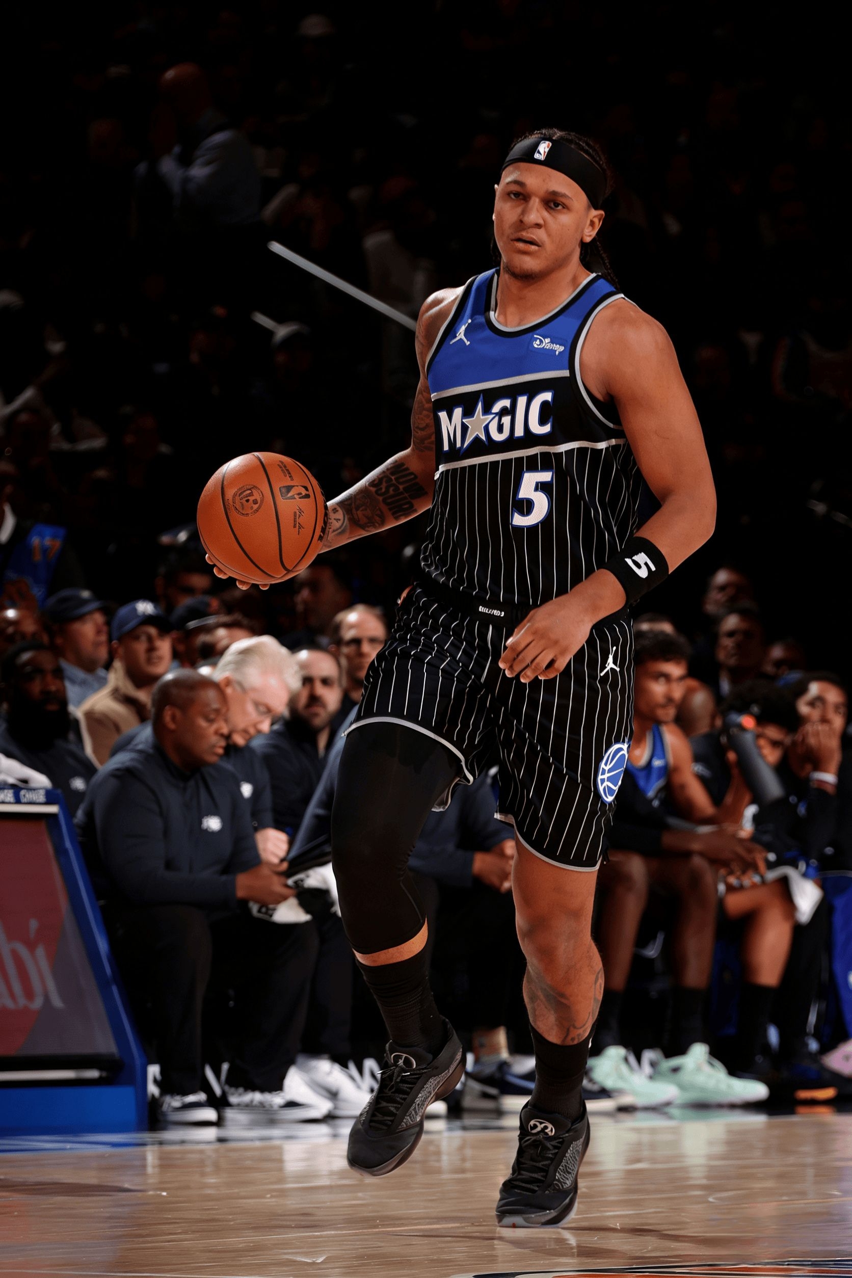 今天看魔术100-106不敌尼克斯的比赛,班凯罗脚上这双AJ 40/23太抢镜——全黑鞋面配隐藏式纹路,和魔术队服适配度拉满,镜头给到鞋侧飞人标时,质感看着超高级。 实战里他打了24分钟,突破时鞋面裹得挺稳,急停三分落地那下中底反馈利落,没见软塌;全程跑动、变向都没调鞋,舒适度应该在线。就算今天11中4手感一般,鞋的抓地也没掉链子,急停时没打滑。 其实这鞋普通版也不差,核心实战性能和球员版...