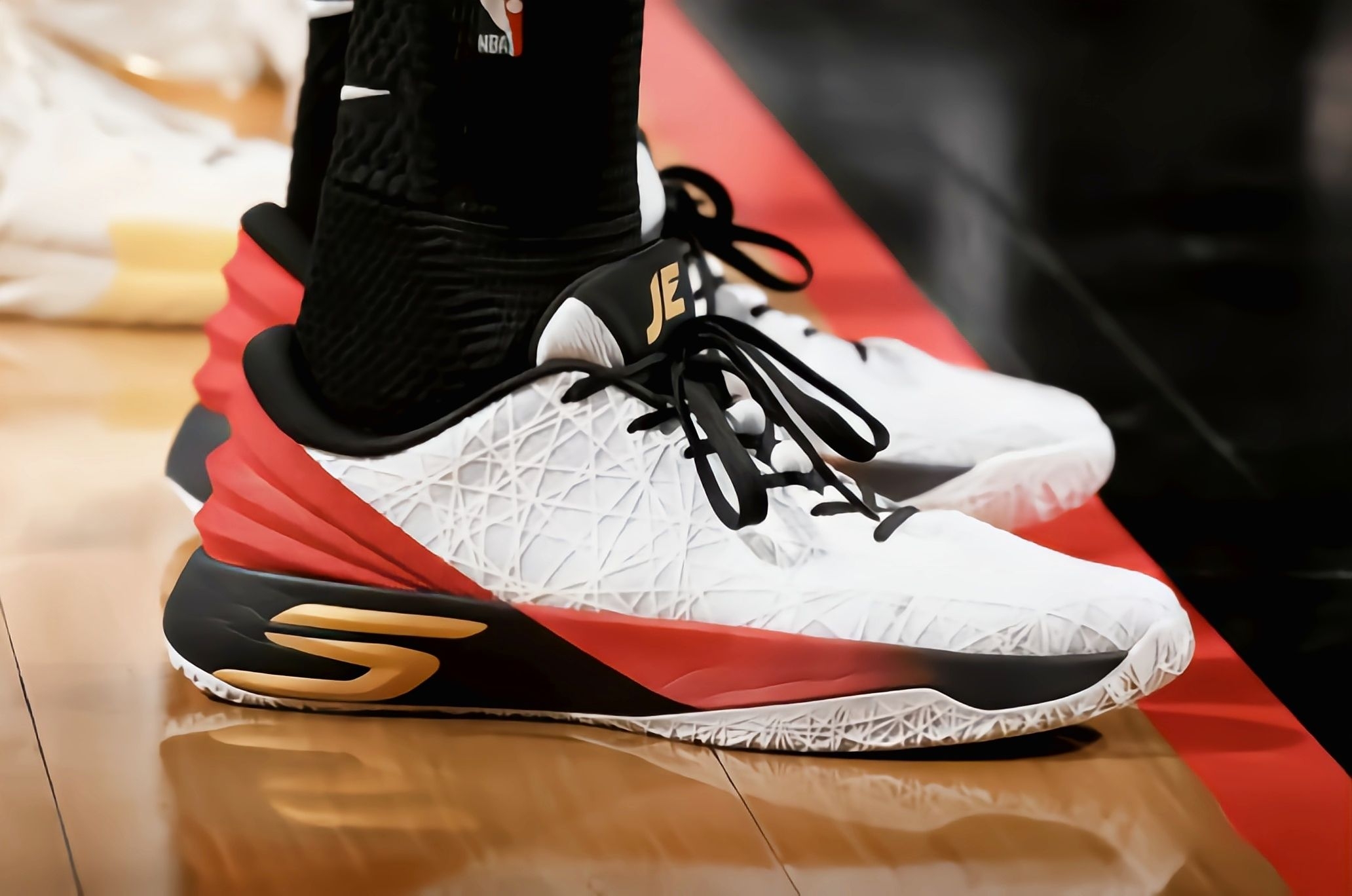 看完76人108-112输湖人的球,恩比德30分钟21中4拿16分是真有点铁,但他脚上这双Skechers SKX JE1是真抢镜——现场镜头给鞋特写时我都愣了:斯凯奇的篮球鞋居然能这么对内线的路子? 先聊外观,白红黑+金色Logo的配色,跟76人黑球衣搭一起贼协调,鞋身那“蛛网”纹理看着很有质感,后跟的褶皱设计还带点复古味儿,场上卡位时这鞋的辨识度直接拉满,放野球场不得被问爆链接? 实战...
