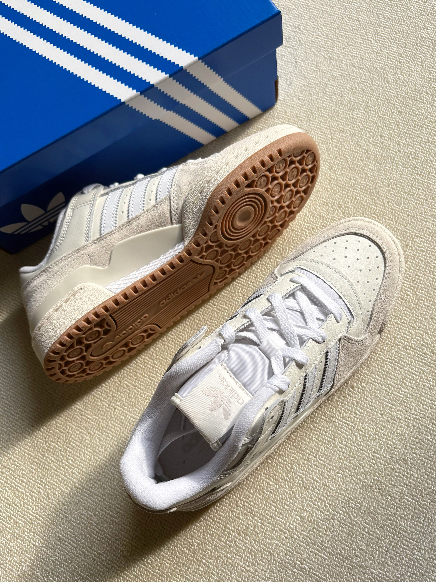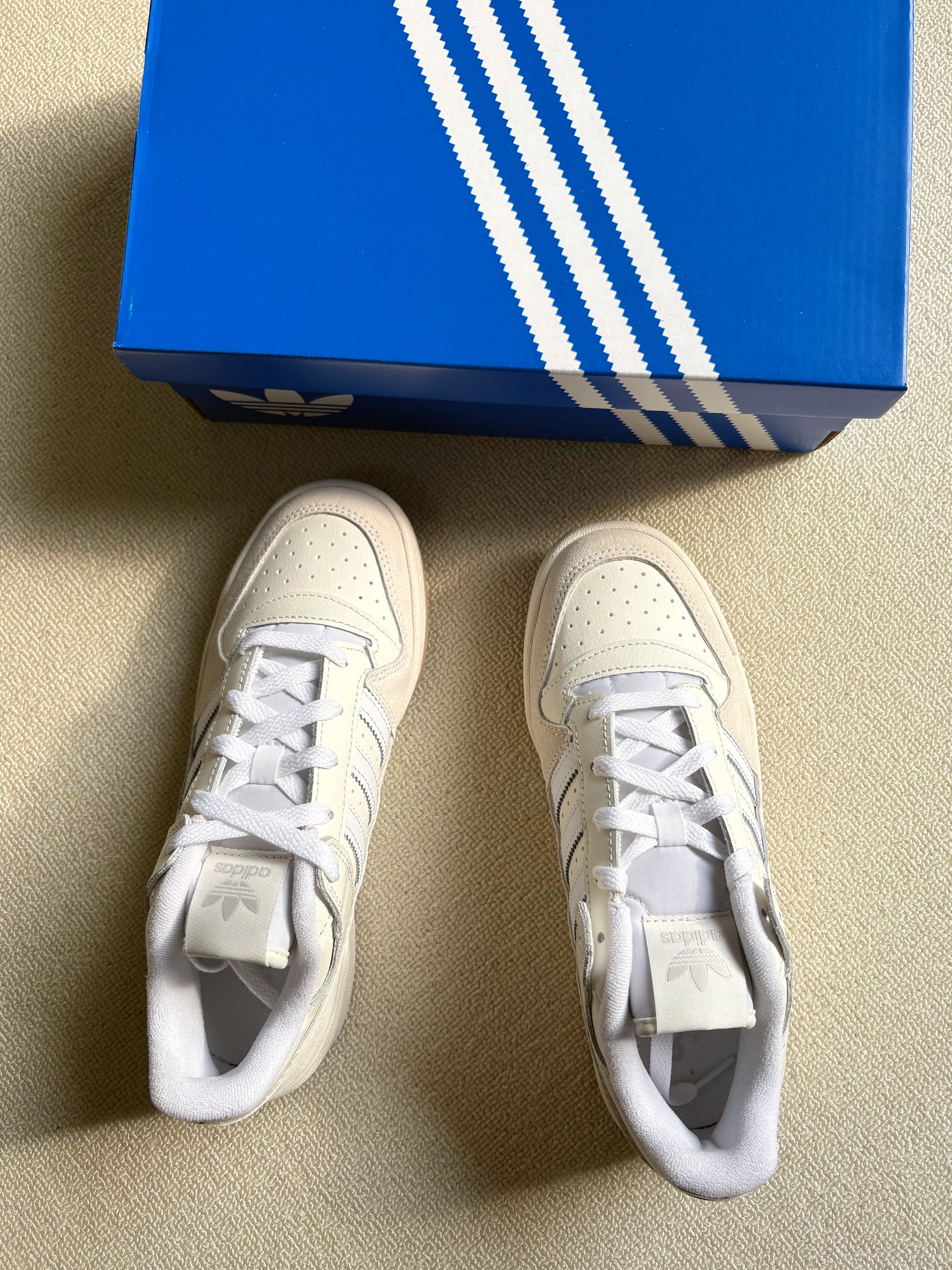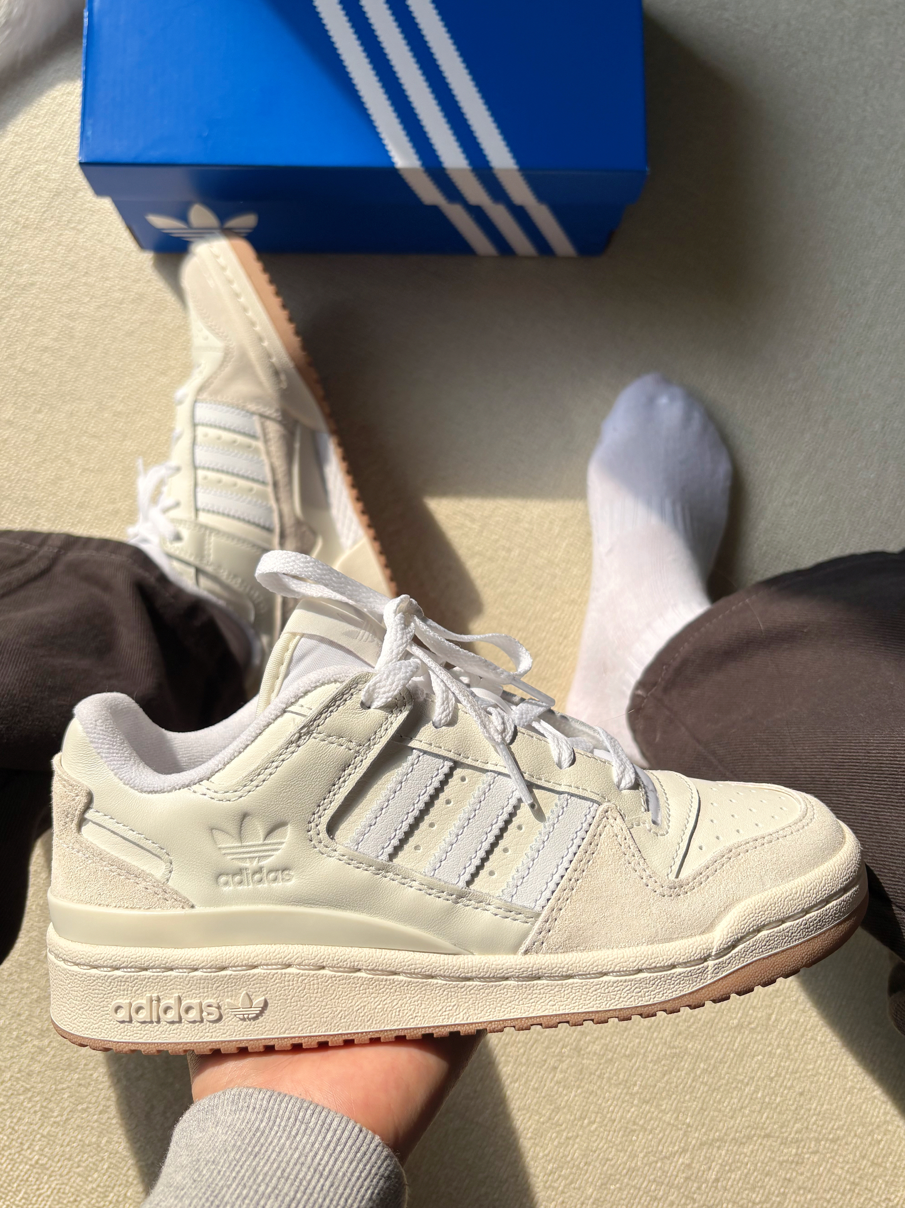 本篇笔记关联了adidas Originals Forum 板鞋 轻便复古防滑时尚魔术贴篮球风 白色/米色/生胶底等商品,为用户提供真实的使用体验和购买参考。