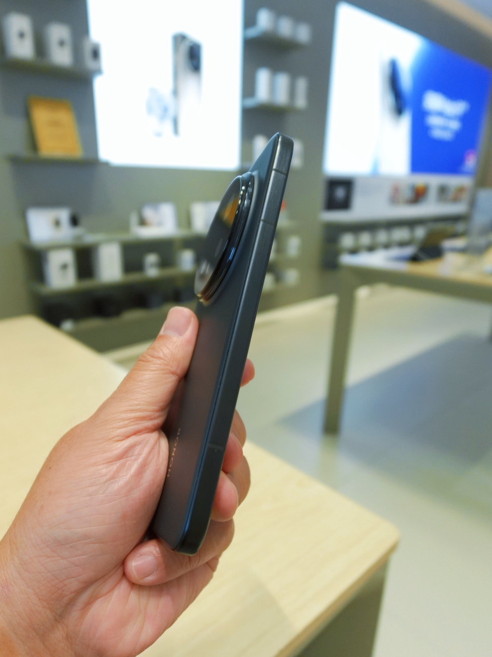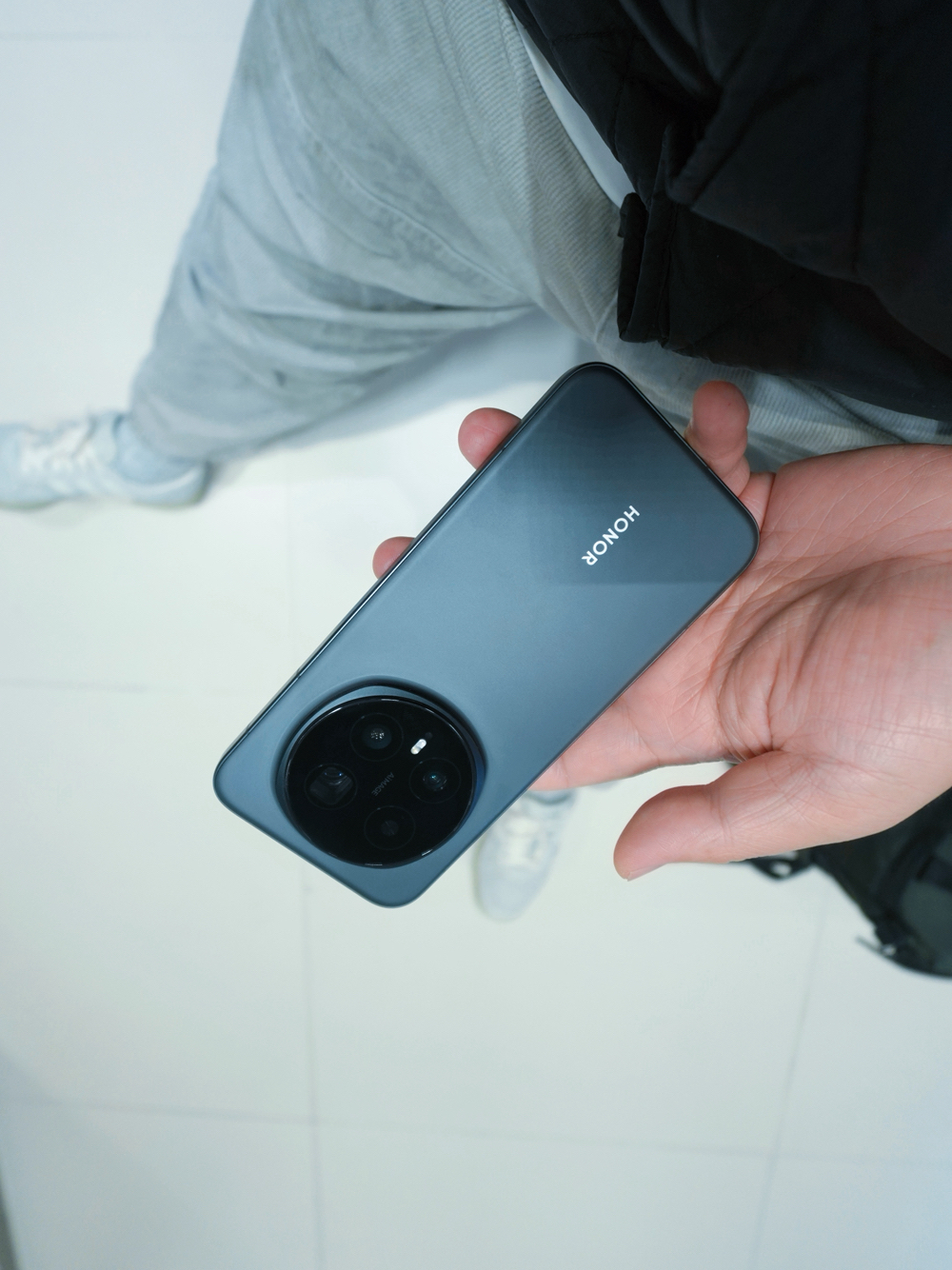 Pro版6.7英寸屏看着是真爽,典型的超大杯尺寸,但塞裤兜里也是真鼓得慌,体感不舒服。当主力机用完全没问题,要是当备用机,不光觉得奢侈,带着也麻烦。 好在拿手里比看着轻,握久了也不坠手。后摄凸起收敛了不少,比之前几代的突兀感协调很多(但凸起依然还是很明显的),头重脚轻的毛病也明显缓解了。配置、影像都很顶,系统丝滑,长焦拉到底拍出来效果还可以,虚影毛刺感都在能接受的范围。 就是荣耀这主题颜色要...