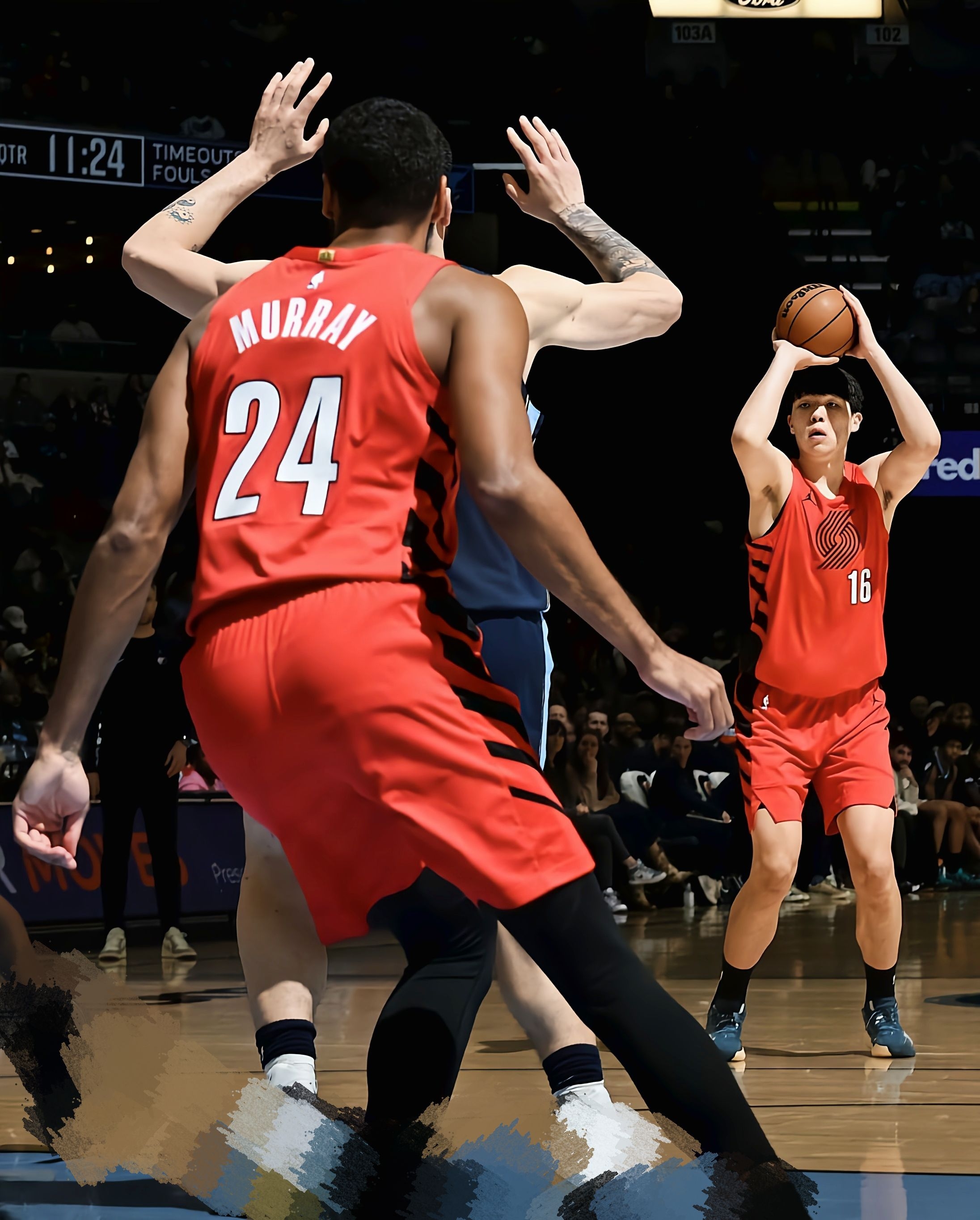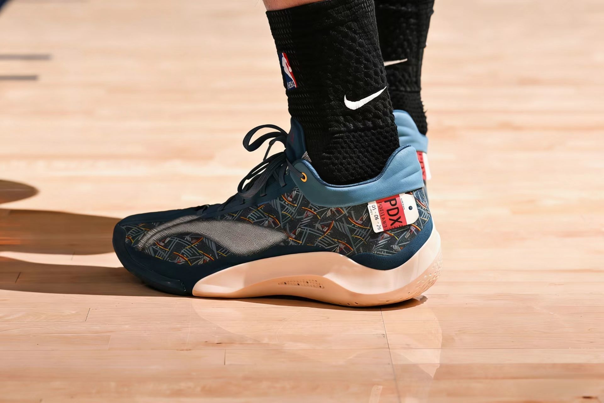 今早蹲开拓者打灰熊,虽然96-119输得有点惨,但杨瀚森生涯首次首发的4分5板2助够提气——尤其是他脚上这双驭帅20 PE,镜头扫到的时候直接让我暂停了直播。 外观真的戳中我:蓝灰底色+PDX城市标签的细节,和开拓者红球衣搭起来居然不违和,鞋身的几何纹理看着就很有设计感,不是那种“国产鞋只有堆料”的老样子。 实战性能从他场上动作能看出来:第四节转身暴扣那下,落地的时候中底反馈看着很韧,没软...