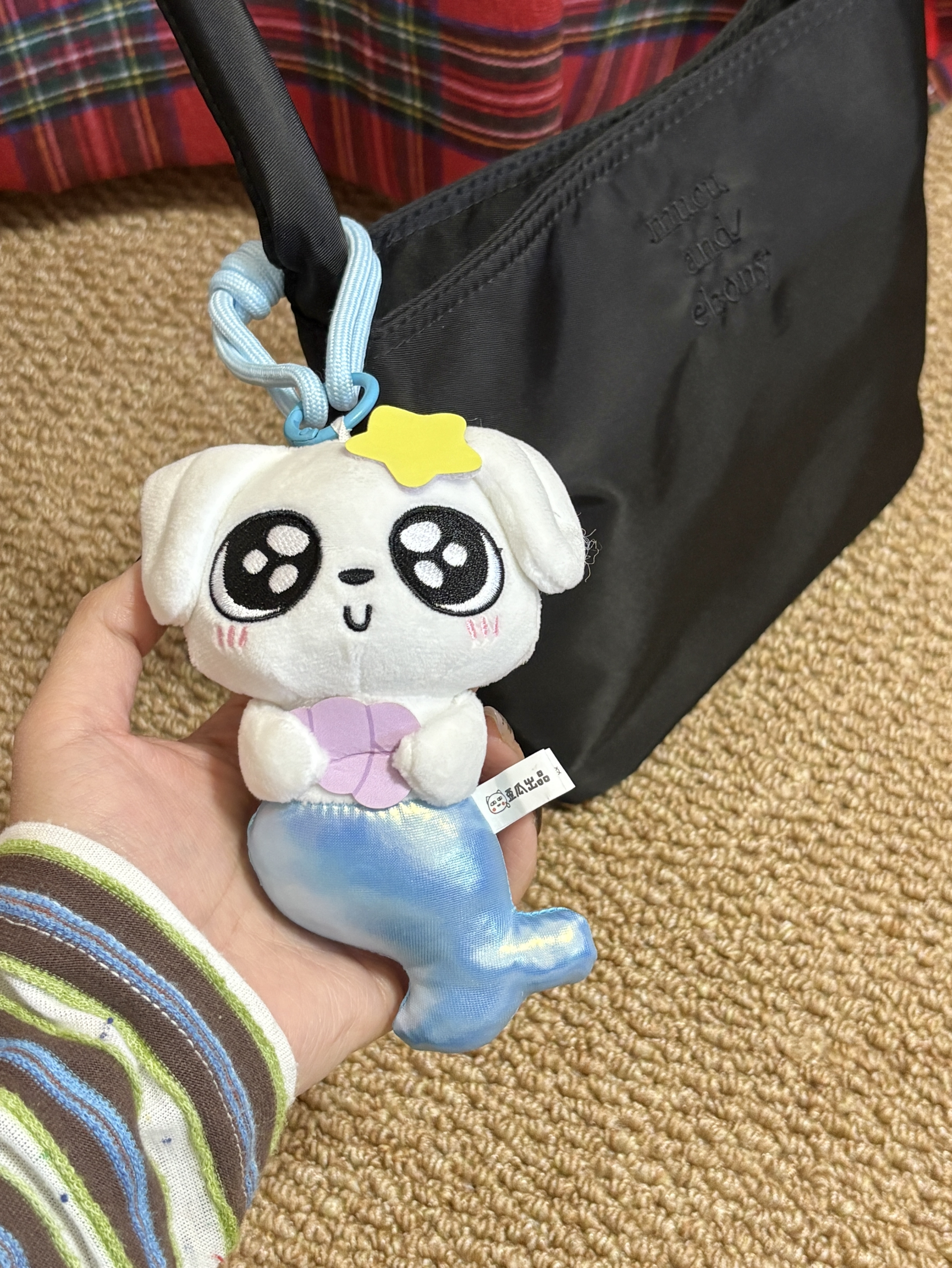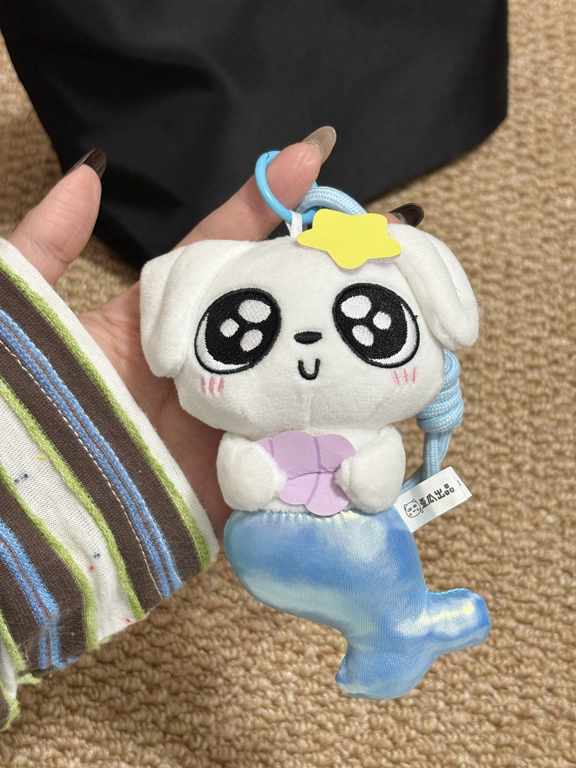是炒鸡可爱的这狗🧜♀️人鱼耶 毛绒绒的好好rua 细节什么都蛮不错的 搭配我的小黑包好亮眼 我太喜欢咯