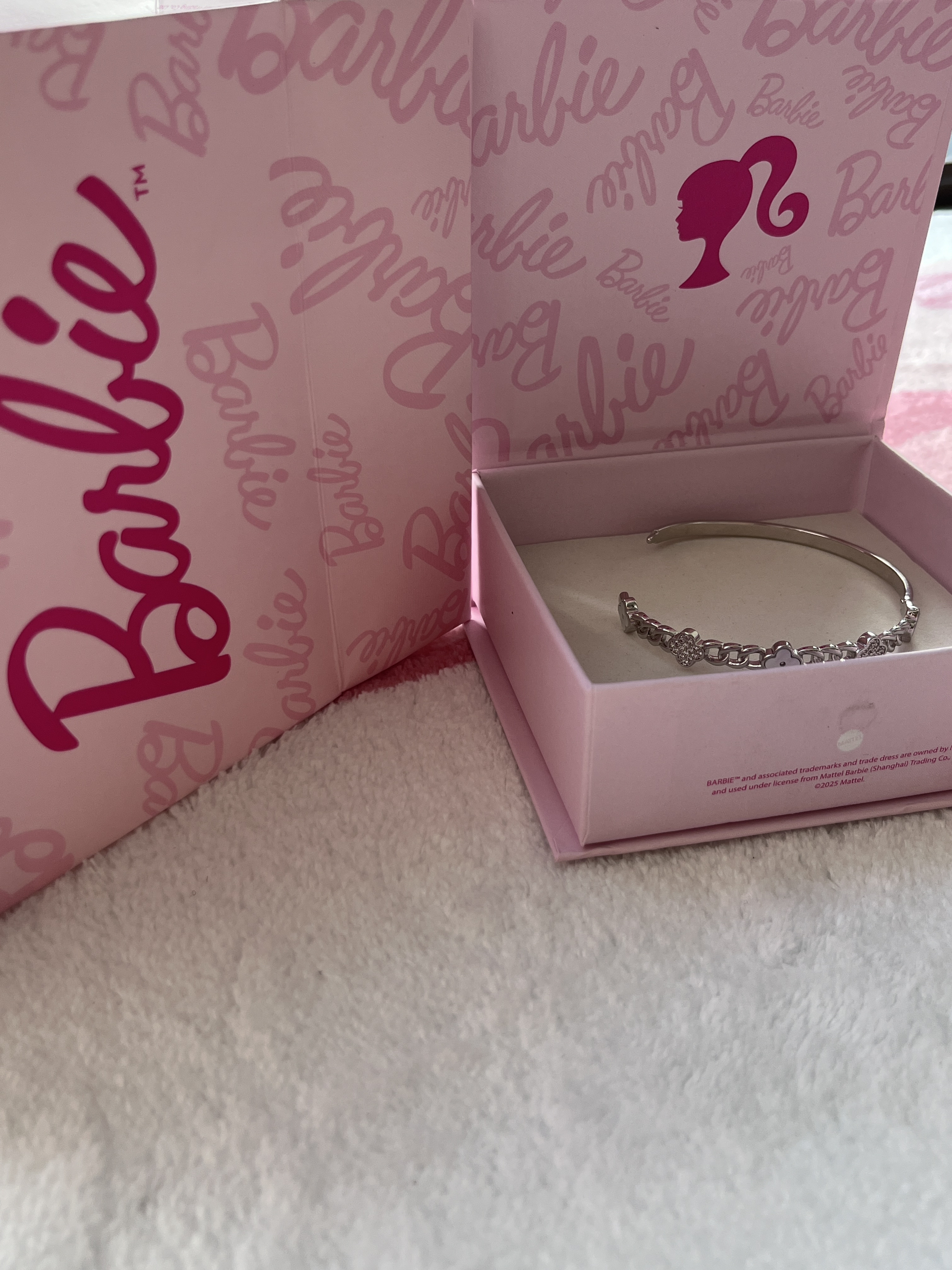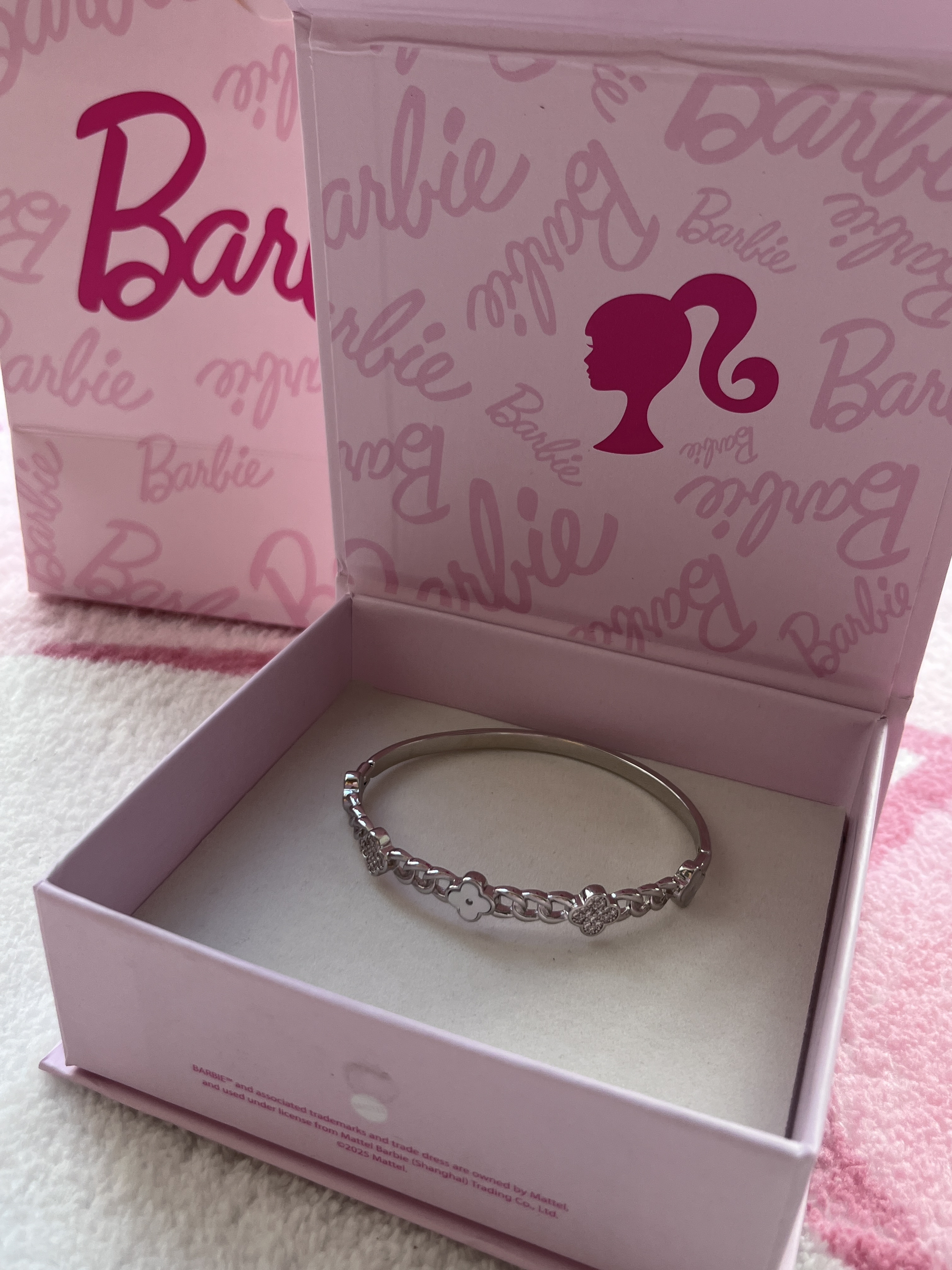 这款Barbie联名手镯绝了!银链串联满钻小花,光泽流转超闪 eye,搭配粉色礼盒仪式感拉满,甜妹必备!送闺蜜或犒赏自己,戴上秒变公主,心动就现在,冲鸭!