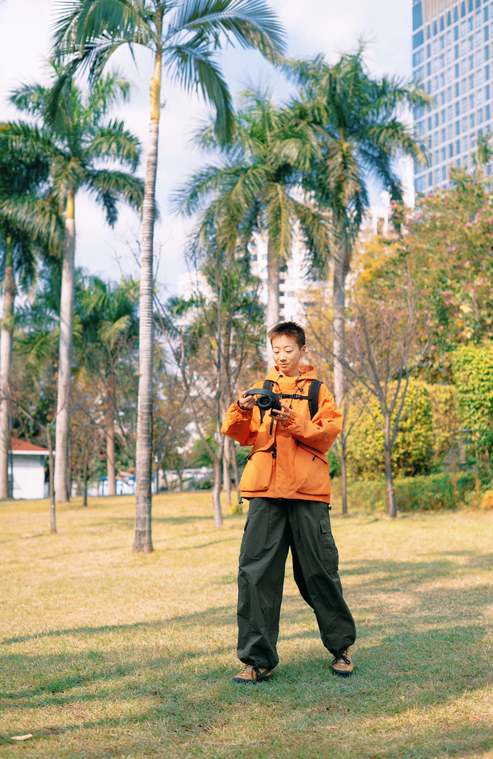 172CM|55KG 👔:m👖:m|👟:39码 想在秋冬户外穿搭中寻找一抹亮色?看俺今日份上身哒WILLIAMS FOX&SONS的橘色冲锋衣或许是不错的选择 标志性的“小狐狸”和三防面料 兼顾机能感和轻便属性耶✌️ 明亮的橘色能轻松打破沉闷 搭配军绿色工装裤 背起背包 gogogo出街咯