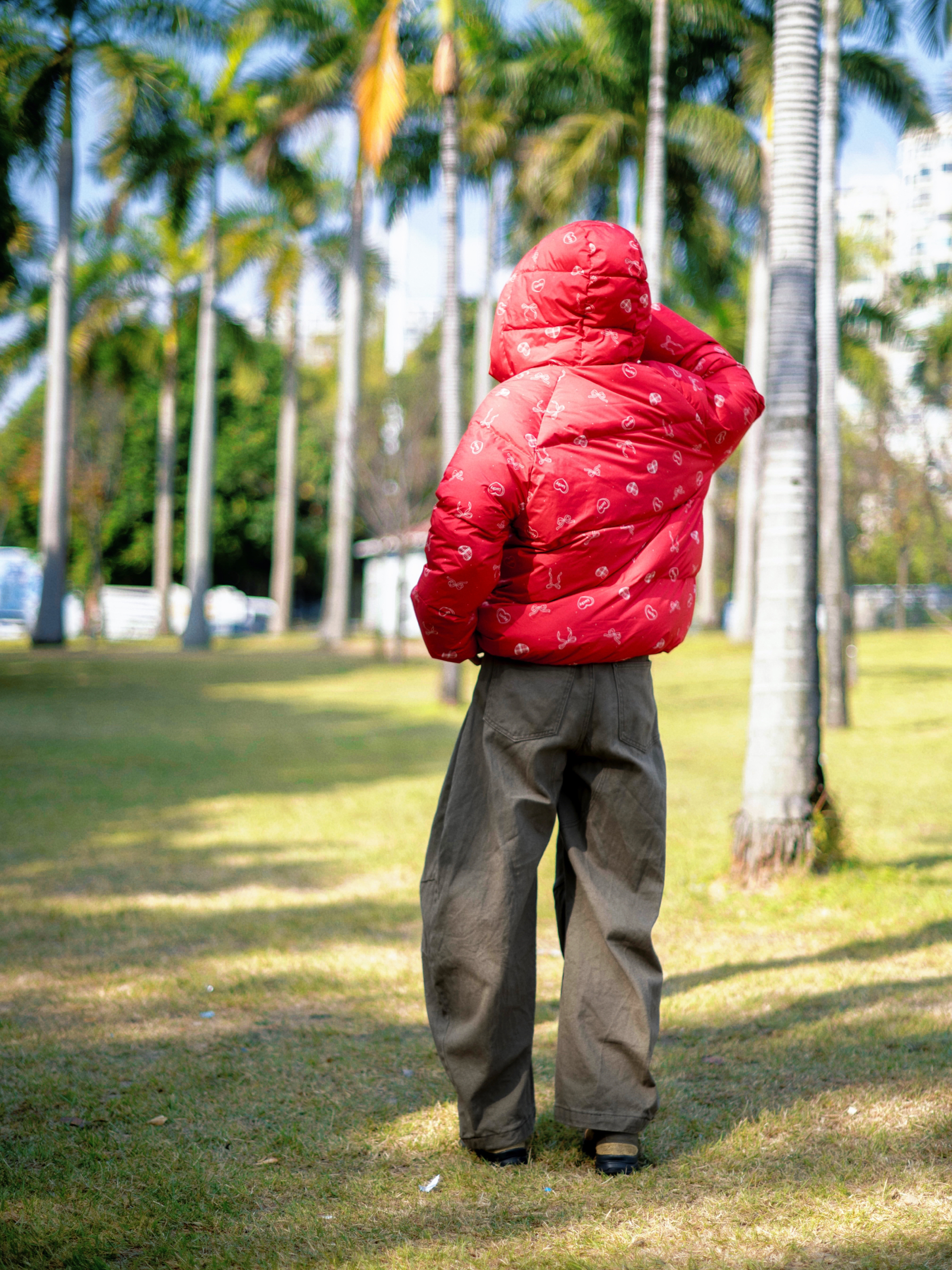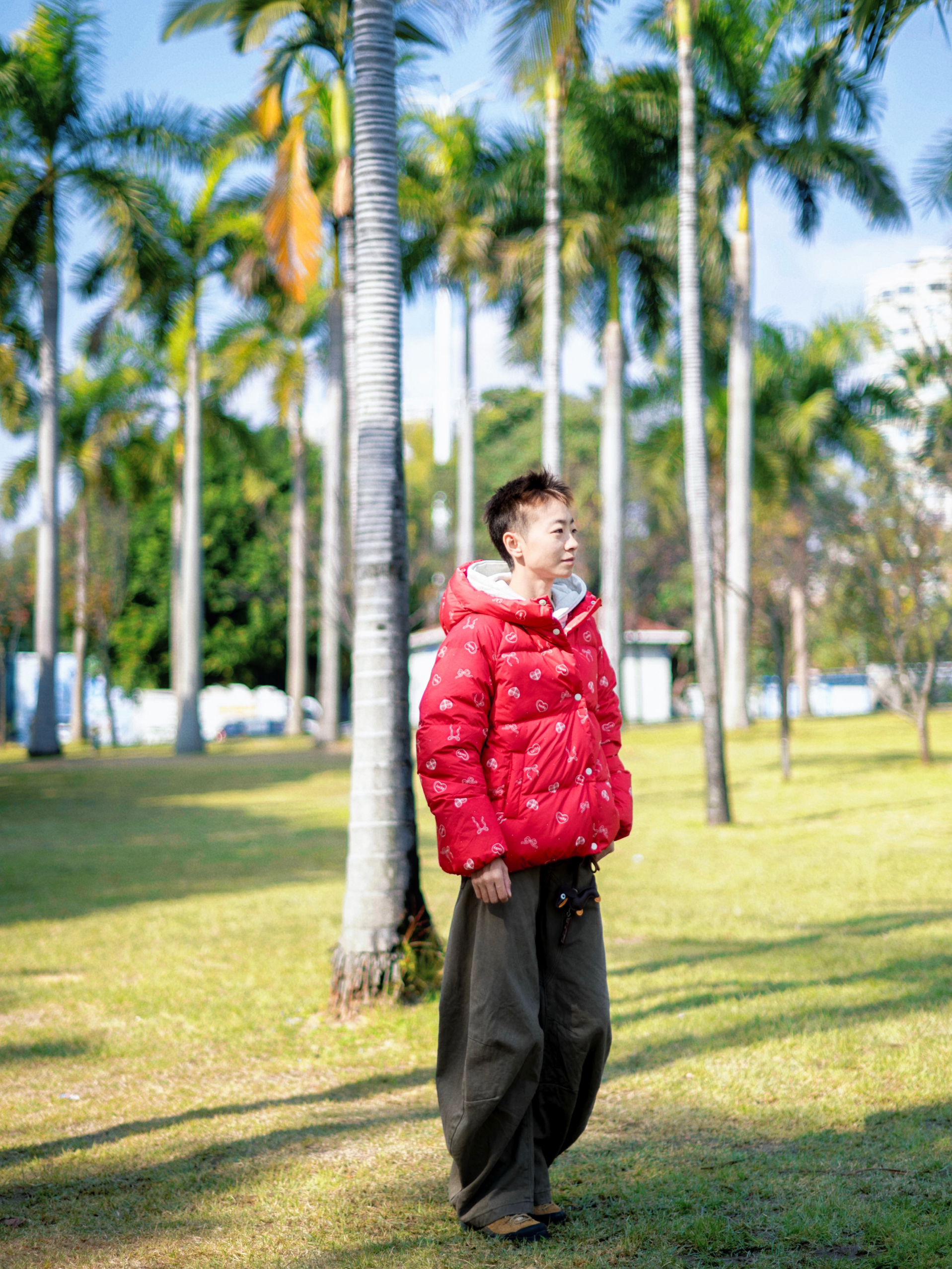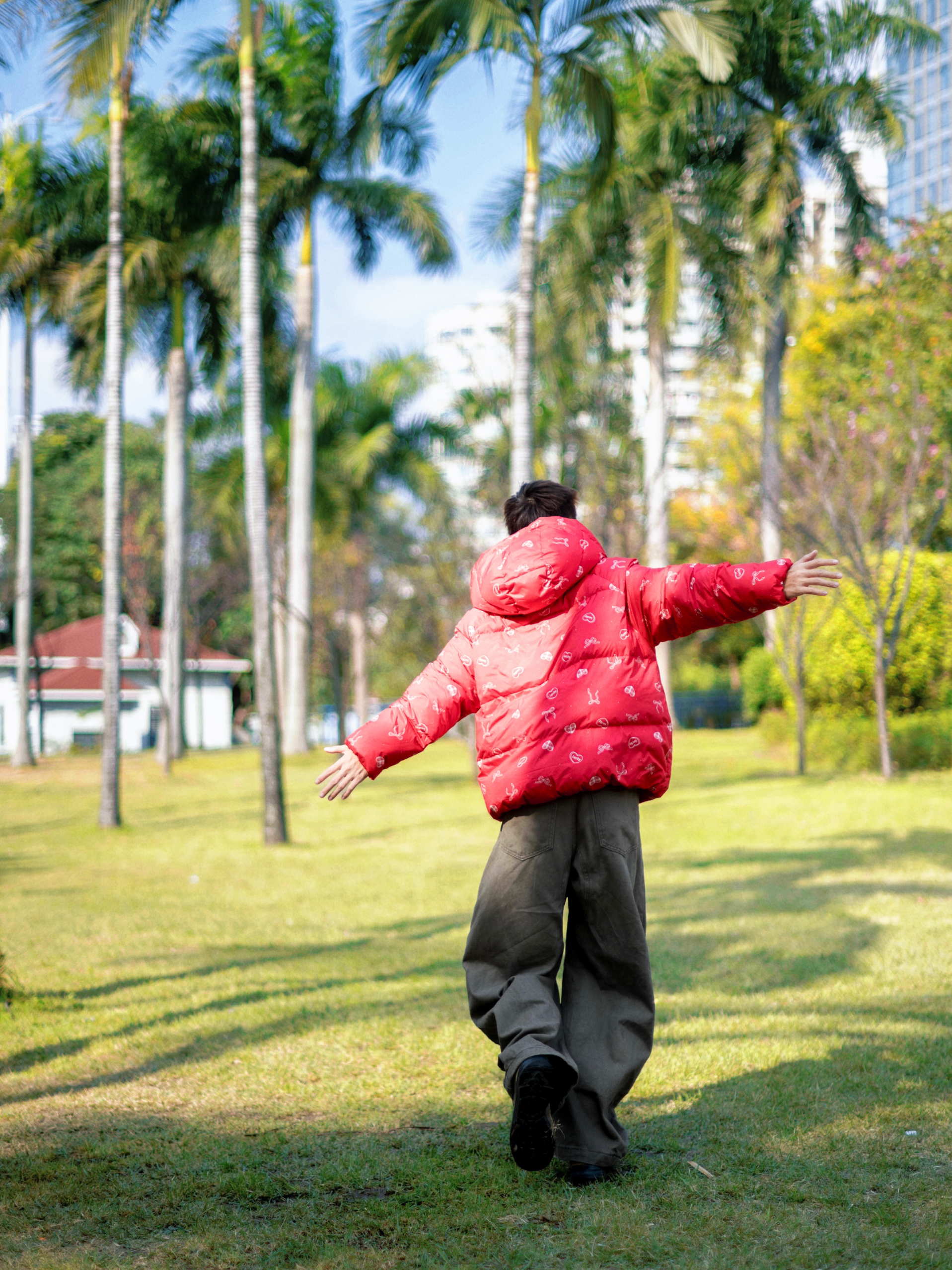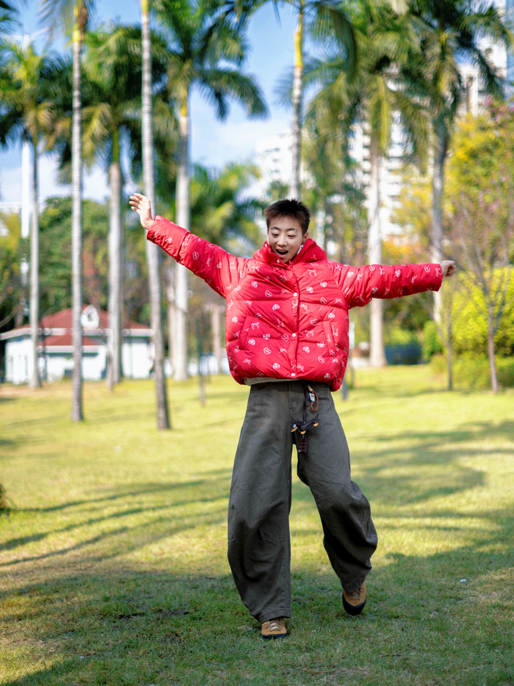 172CM|55KG 👔:m👖:m|👟:39码 秋冬的街头,需要一抹亮色点燃氛围。 今日份上身红色羽绒服 宽松版型与连帽设计 带来自在温暖的穿着体验耶✌️ 经典国风印花点缀其间,透出淡淡年味与潮流巧思。 搭配一条阔腿长裤,就能轻松勾勒出松弛又有型的户外街头风格。 Gogogo 出街咯~