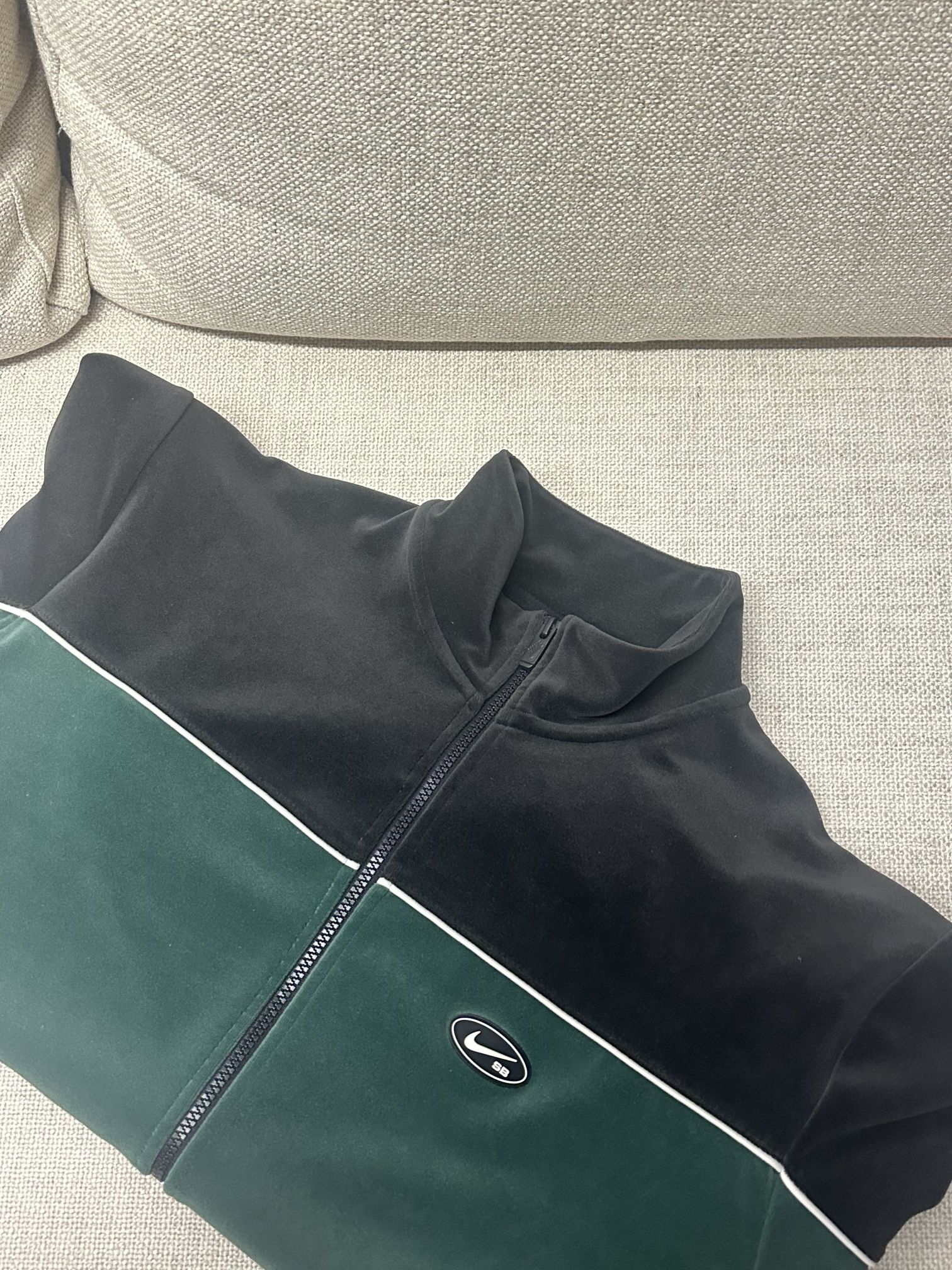 本篇笔记关联了Nike SB 丝绒滑板立领夹克 DD0574 绿等商品,为用户提供真实的使用体验和购买参考。