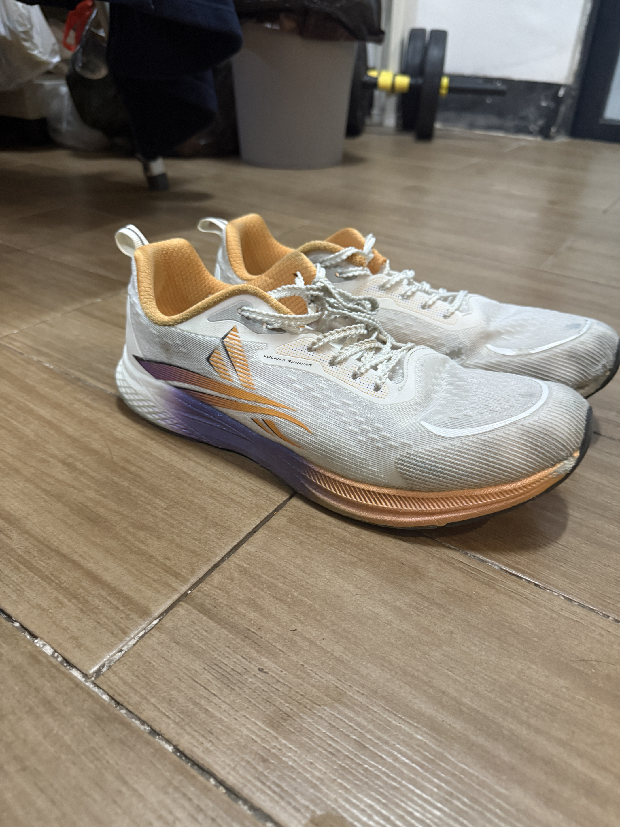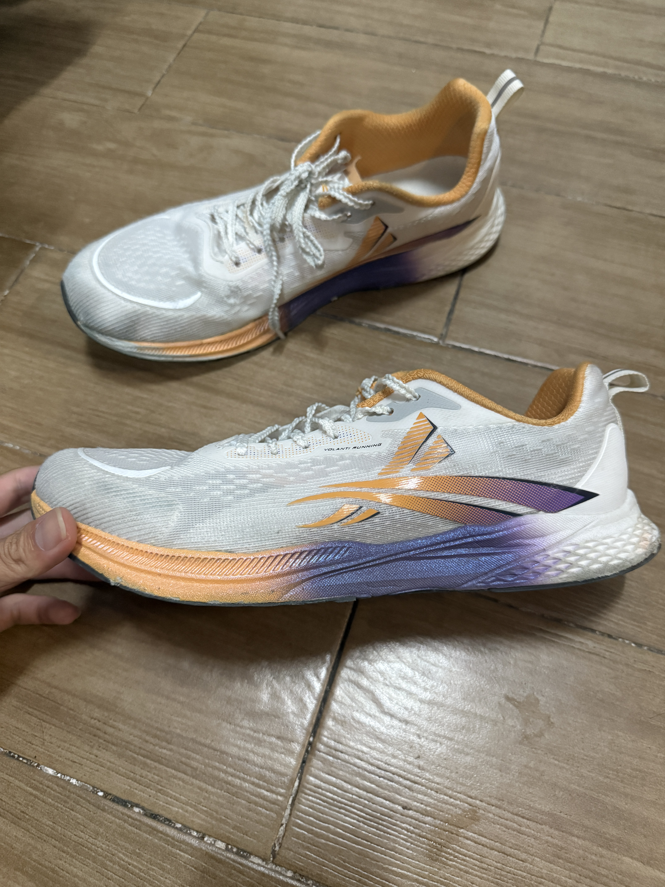 这双鞋上脚轻得像没穿,田径场跑起来脚感弹,落地稳,橙紫配色够吸睛,速度感直接拉满,训练或比赛都能打,运动靓眼