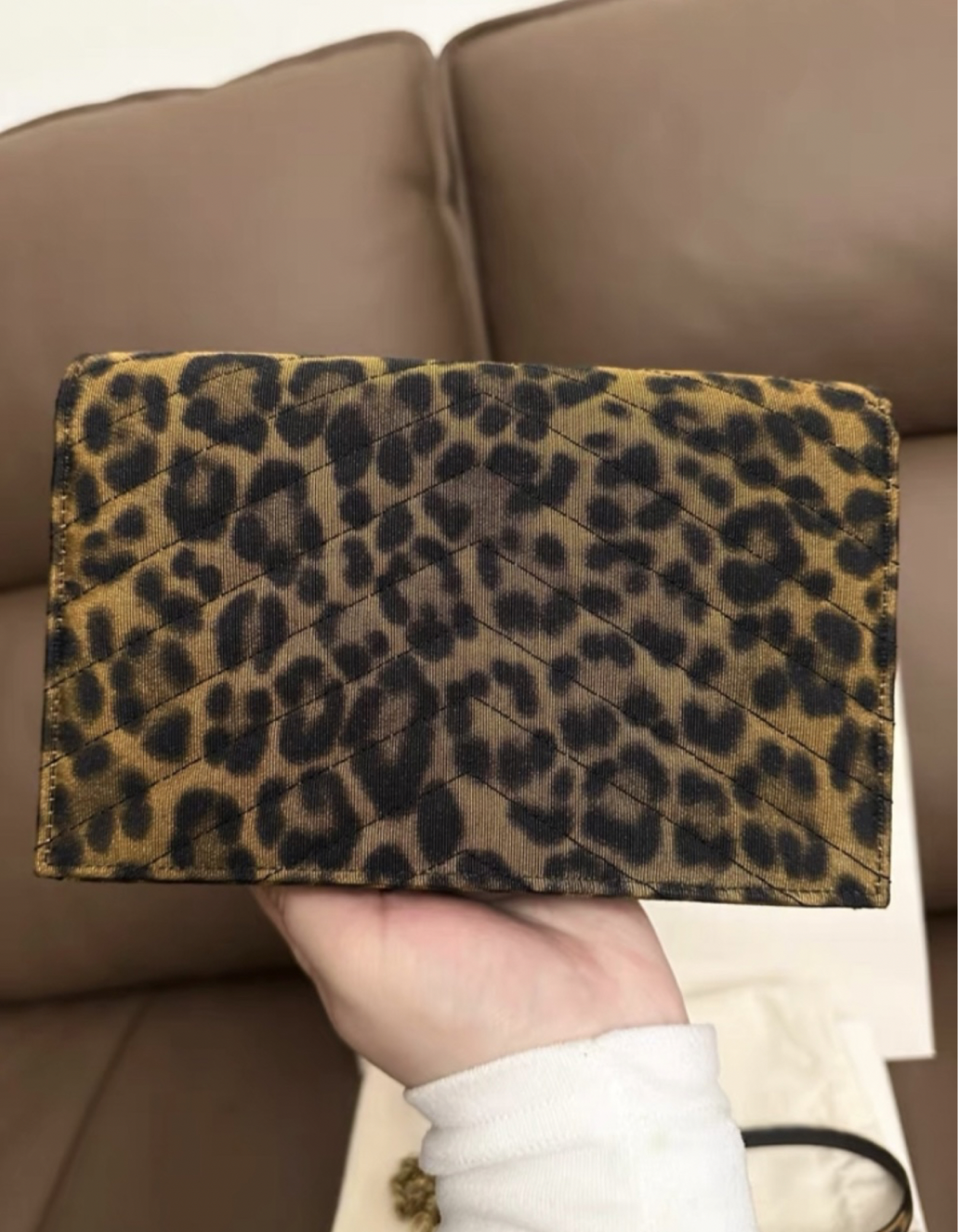 野性美学💛 YSL豹纹信封包真的美到失语!经典V纹绗缝撞上复古豹纹,做旧金扣+金属链条,甜酷感拉满,拎在手里自带气场,出街回头率直接封神~