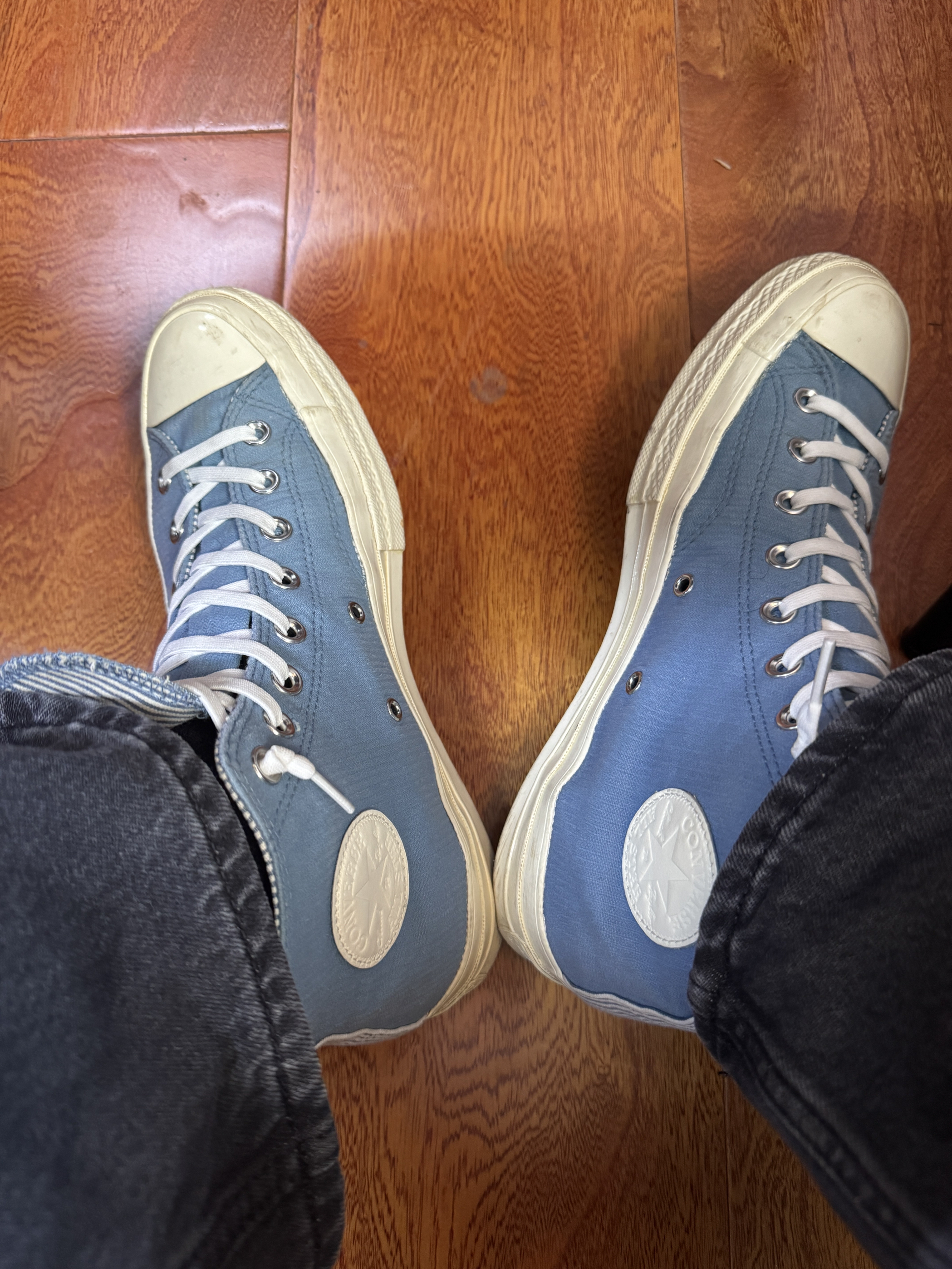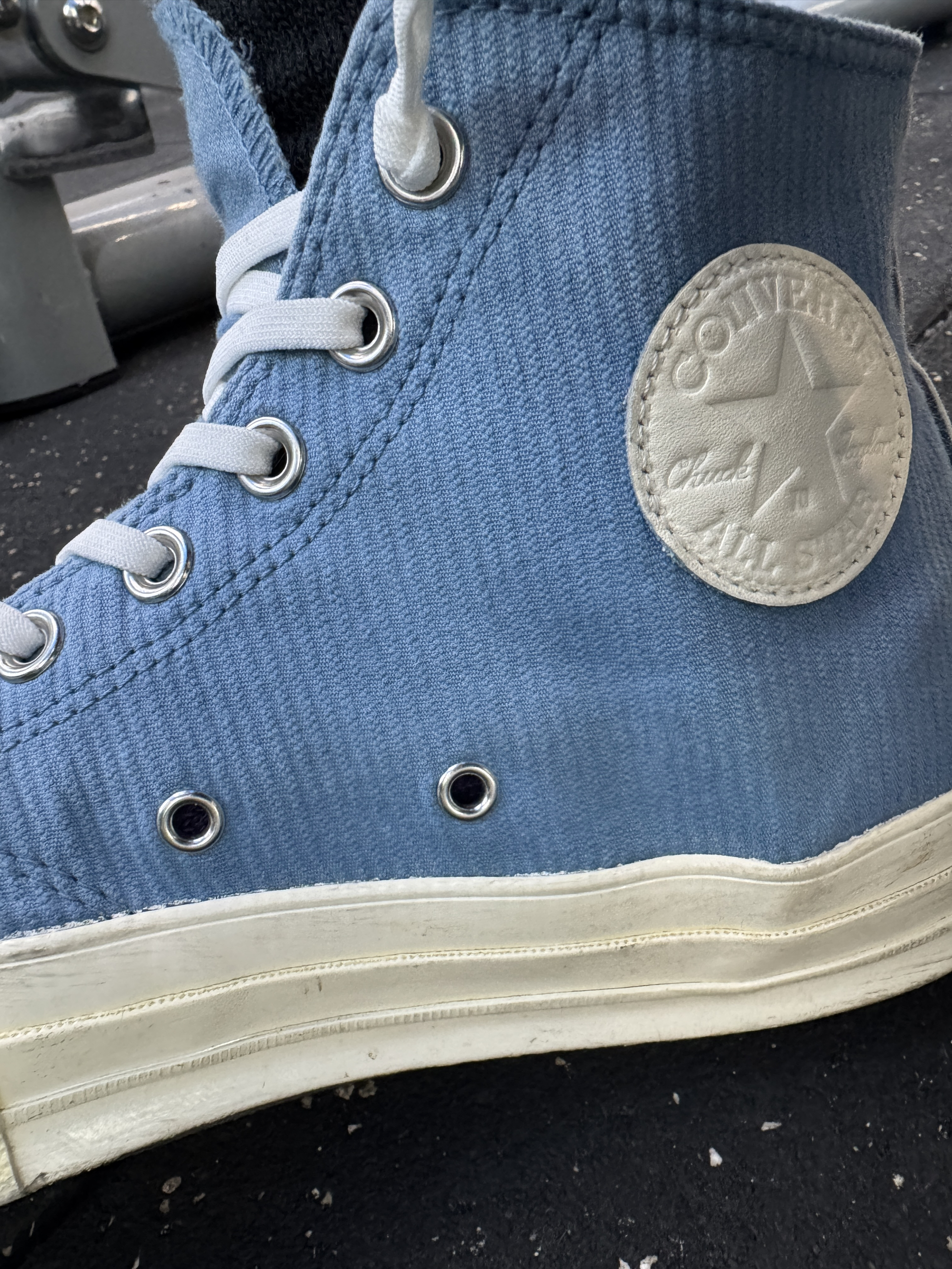入手7-8年!当年发售时第一时间售罄没抢到,点了补货没想到一个多月后补了!后来就再也没见过这双配色! 在当年这双配色可以说是非常不一样的存在,颜色清新低调!尤其是鞋内侧匡威logo纯白色的设计,太好看了! 鞋内衬是蓝白条纹,和外面季度统一! 你有这双吗!