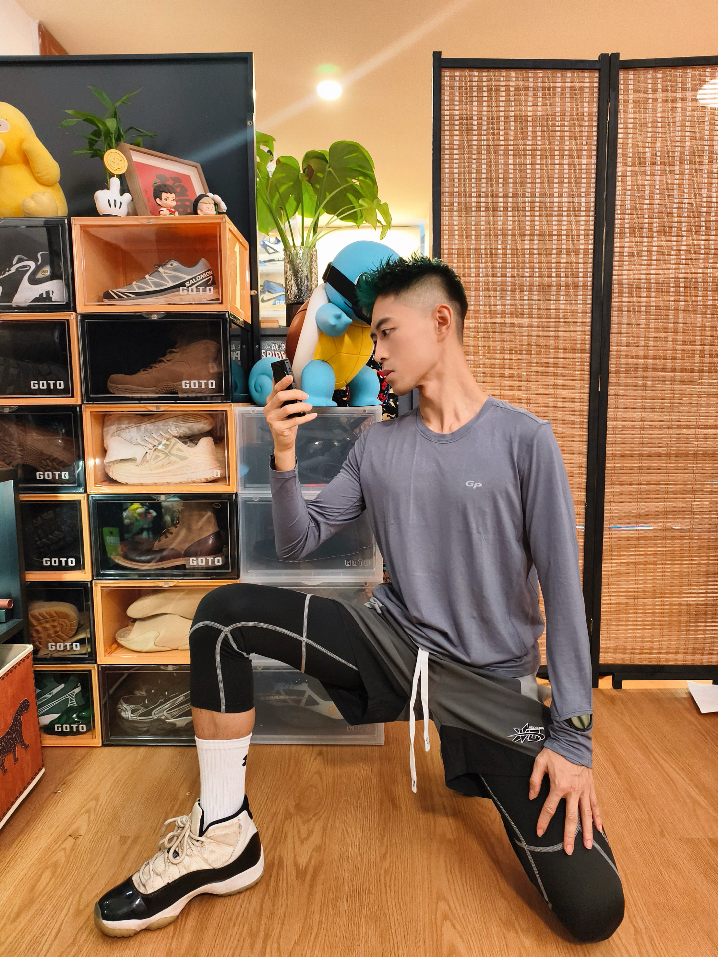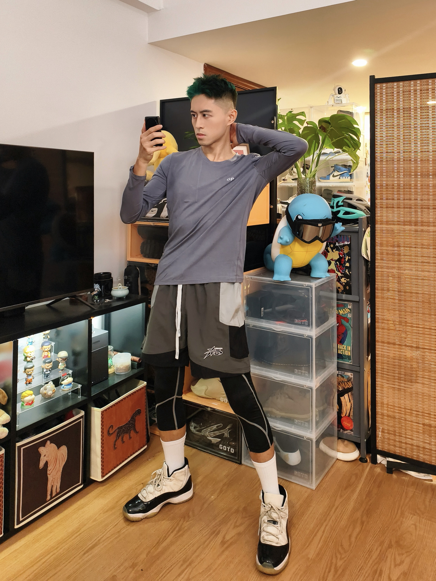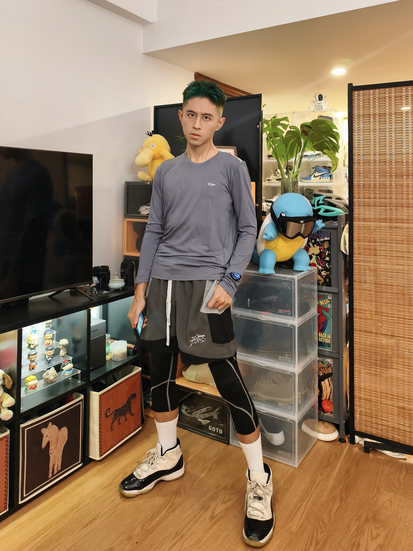 👕浅灰长袖版型贴身利落,速干面料贴肤不闷,侧边拼接+简约标识强化运动属性,训练、出街都适配,轻运动松弛感一下就到位了。 🩳灰黑拼色短裤细节利落,叠穿黑色七分高弹紧身裤是核心亮点:紧身裤兼顾运动防护与造型层次,和整套穿搭的机能属性高度契合,蹲坐活动都自在。 👟AJ11康扣是运动风的经典标配,鞋型和紧身裤的运动感呼应,踩上就走超省心,直接焊死机能氛围。 – #运动活力风 #分享你的体育生穿搭 #体...