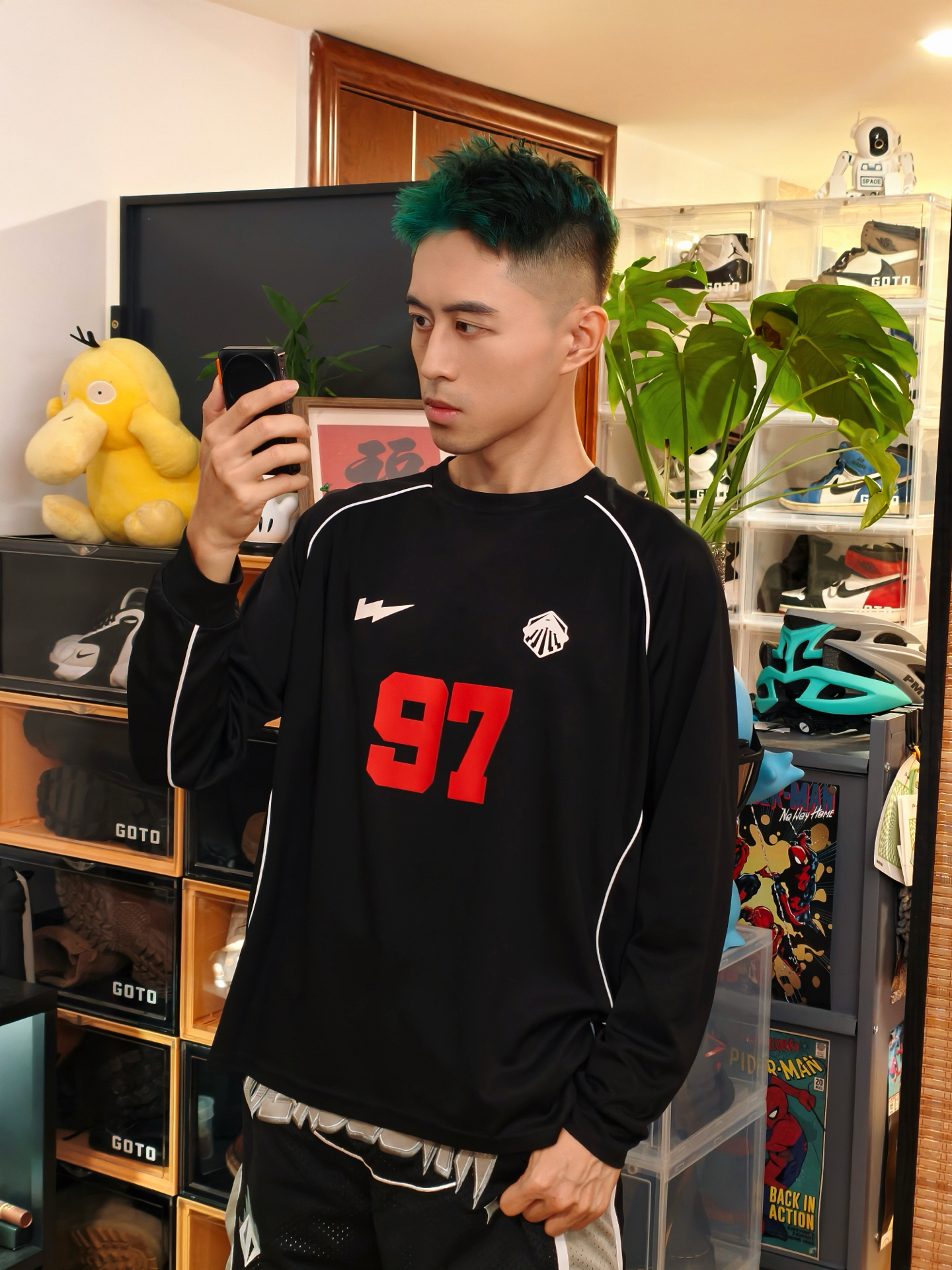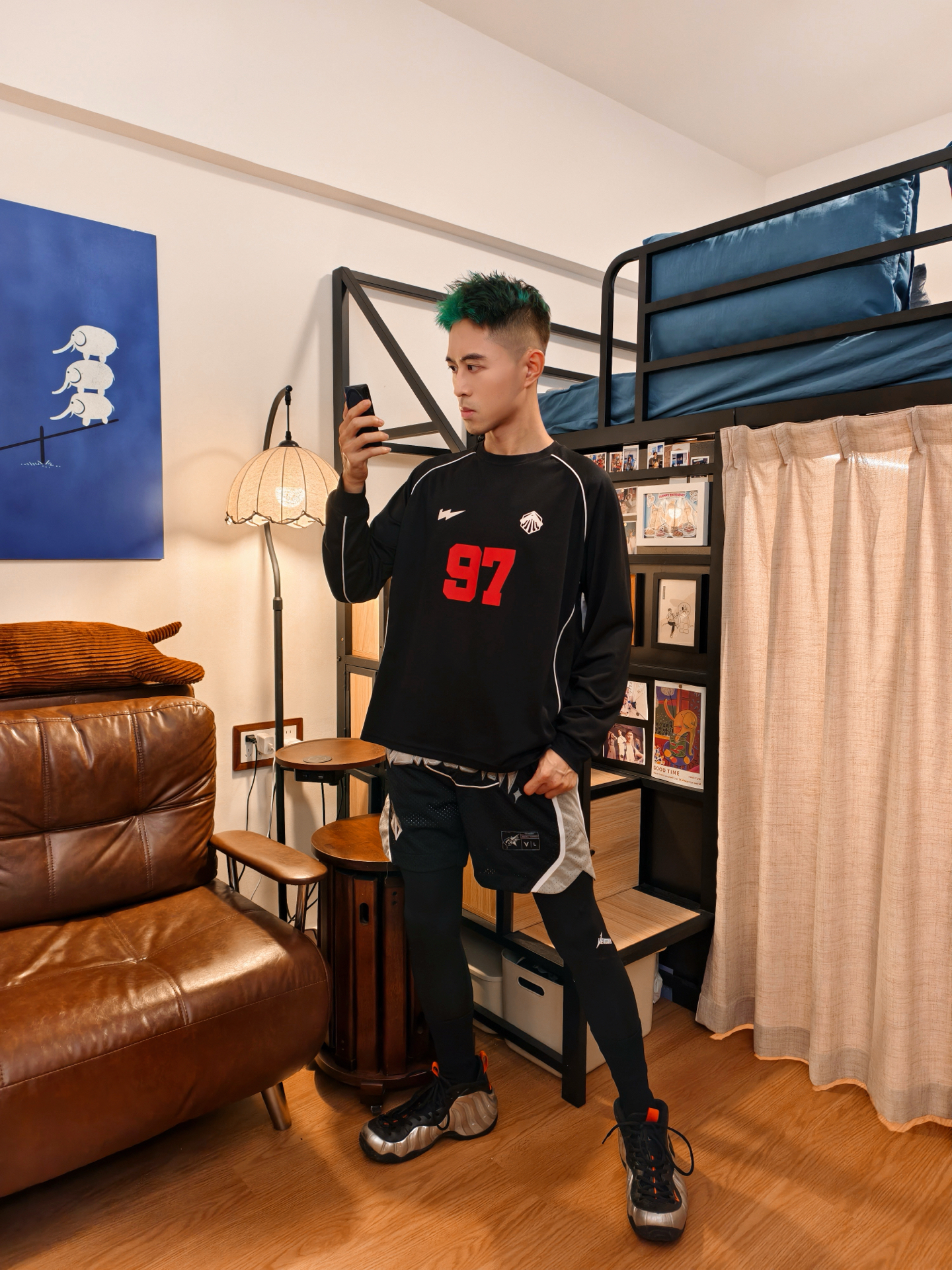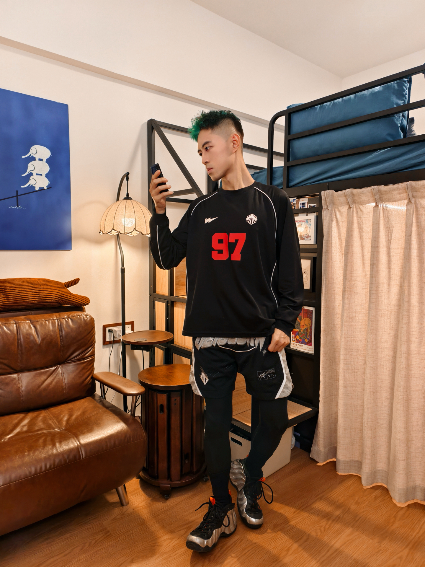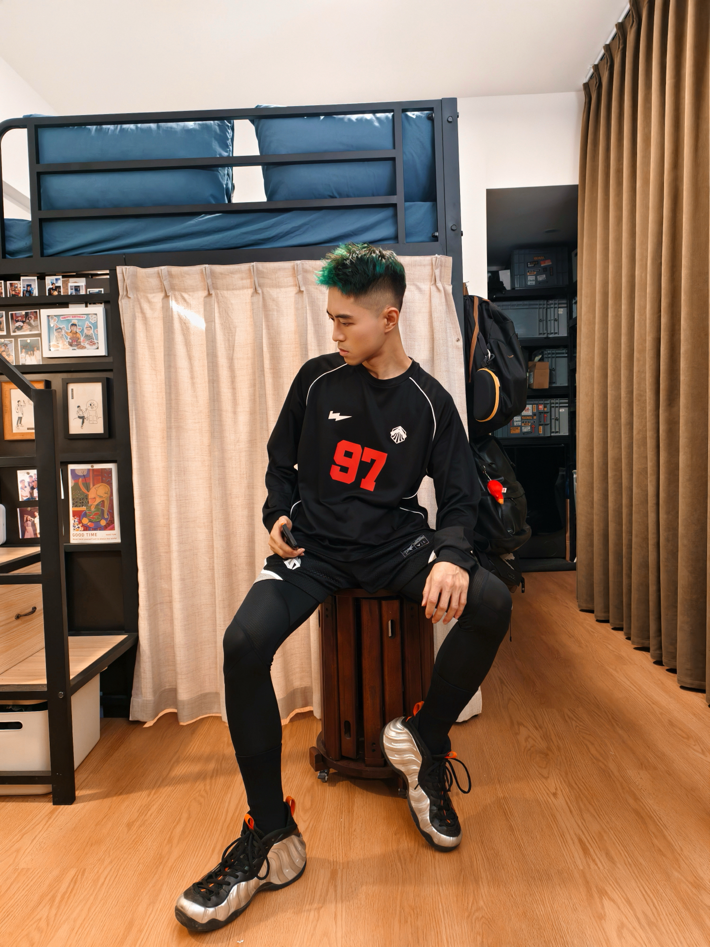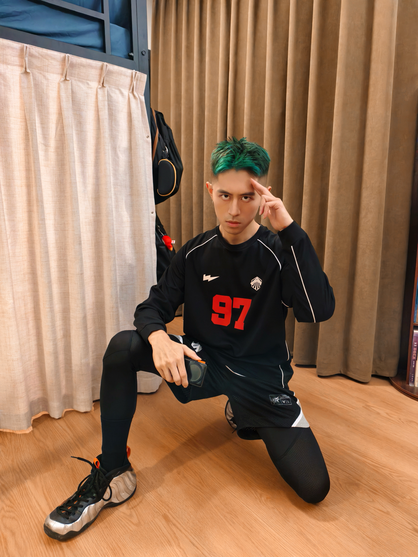👕黑长T版型松快不勒,面料贴身穿贼舒服,红“97”号+白边儿一搭,赛场那股劲儿直接出来了。 🩳黑灰短裤细节够利落,叠穿黑色高弹紧身裤是真点睛——不光能护腿,这层次一出来,球员那味儿就稳了,动起来也没束缚。 👟银黑色万圣节喷跟这套是绝配,鞋型和紧身裤一呼应,脚一蹬直接出门,暗黑赛场那氛围直接焊死。 – #高弹紧身裤 #维动VEIDOORN #篮球男孩穿搭ootd #维动篮球穿搭 #打球就要这样穿...