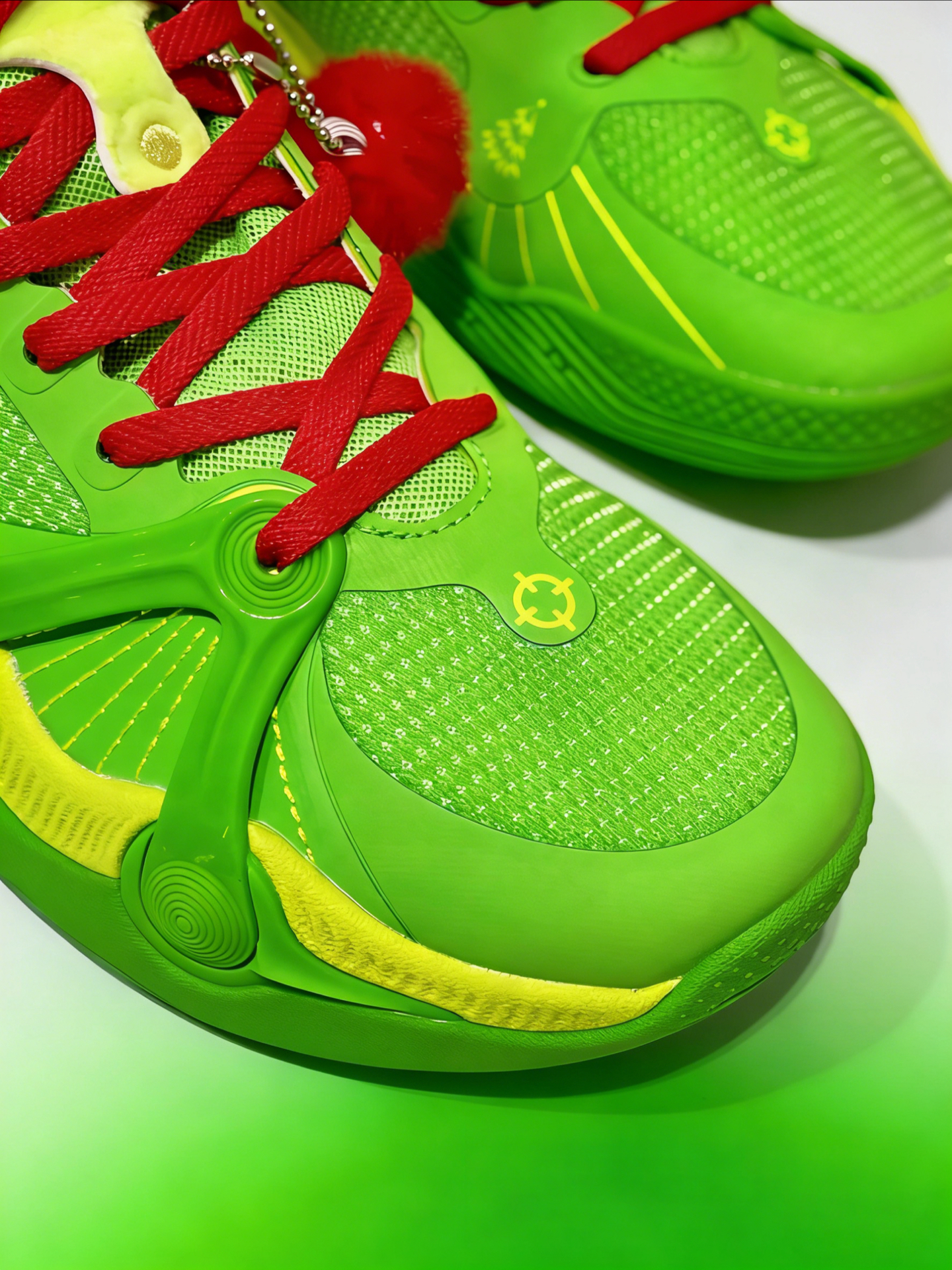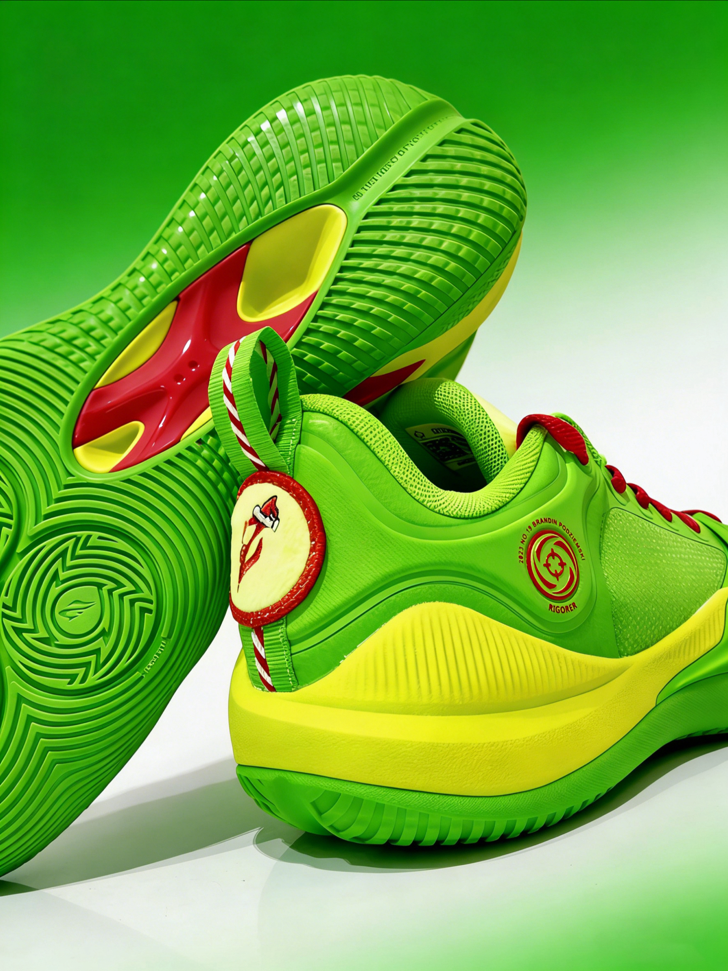 这双 #准者 RIGORER 波杰一代的圣诞怪杰配色,真的太懂节日氛围了!设计灵感来自电影《圣诞怪杰》里的 Grinch,鞋舌和后跟用了软fufu的短毛绒材质,一下子就还原了角色的毛绒感;不过我觉得最有趣的还是右脚附赠的小毛绒红球,活脱脱就是 Grinch 手里的圣诞树彩球,细节感拉满,也很好的呼应了圣诞主题 🎁。 我简单上脚感受了一下,包裹性挺不错的,贴合脚型,走路和简单运动都觉得舒服。日常...