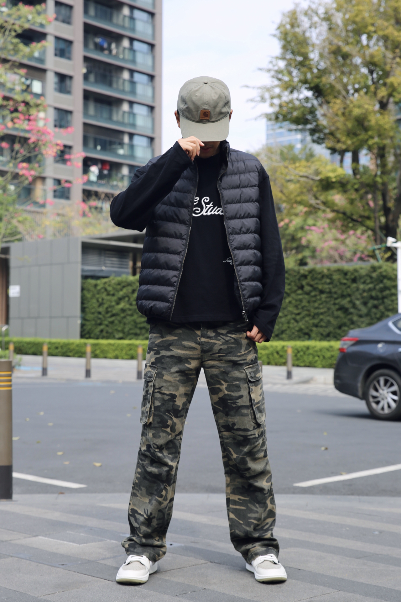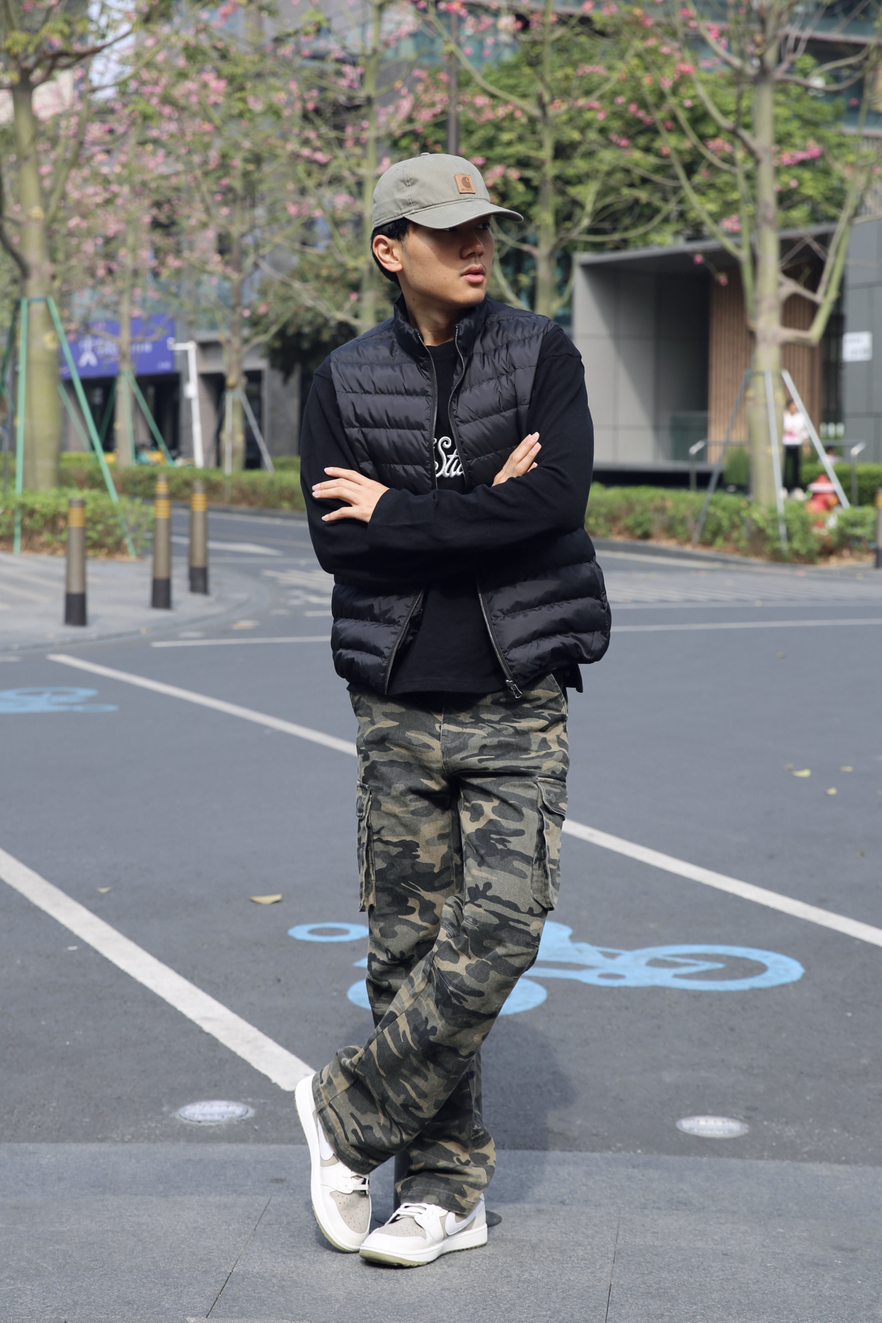 秋冬想要帅帅出街 迷彩裤不可或缺! 今天一身黑绿 上身长袖搭配马甲 冬日暖阳下完全不冷~ 下身深绿色宽松迷彩裤 我还蛮喜欢这样的大口袋 街头潮流感一下就上来了 搭配上一双倒钩7.0 上学出游都可以这样酷酷的~ #一件开启潮冬 #早八高效出门穿搭 #冬日穿搭速成攻略 #告别冬日路人感 #预热一下我的秋冬季穿搭