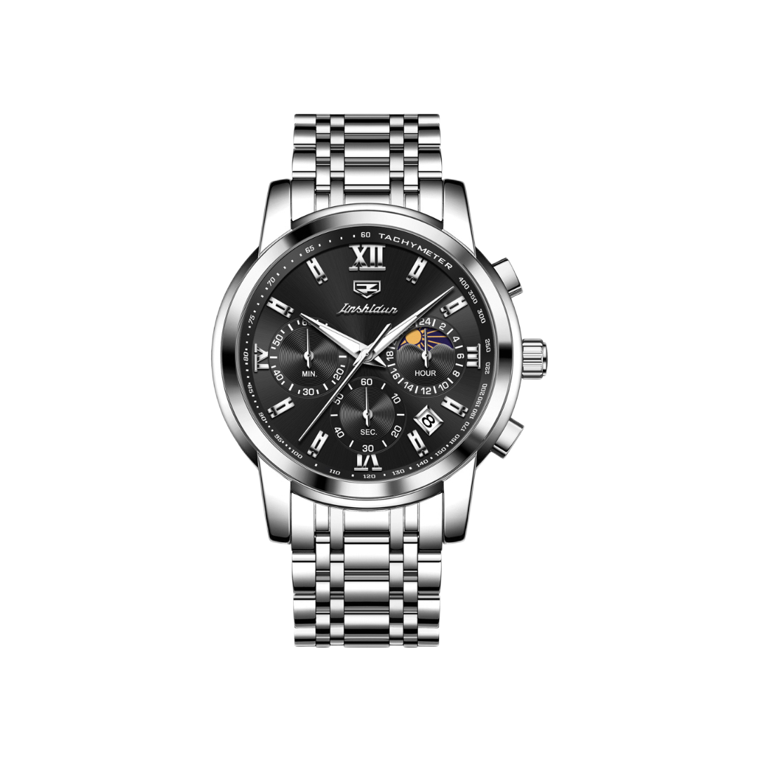 本篇笔记关联了JSDUN/金仕盾 41.5mm精钢表带多功能时尚商务通勤夜光30米生活防水石英男士手表 本黑等商品,为用户提供真实的使用体验和购买参考。