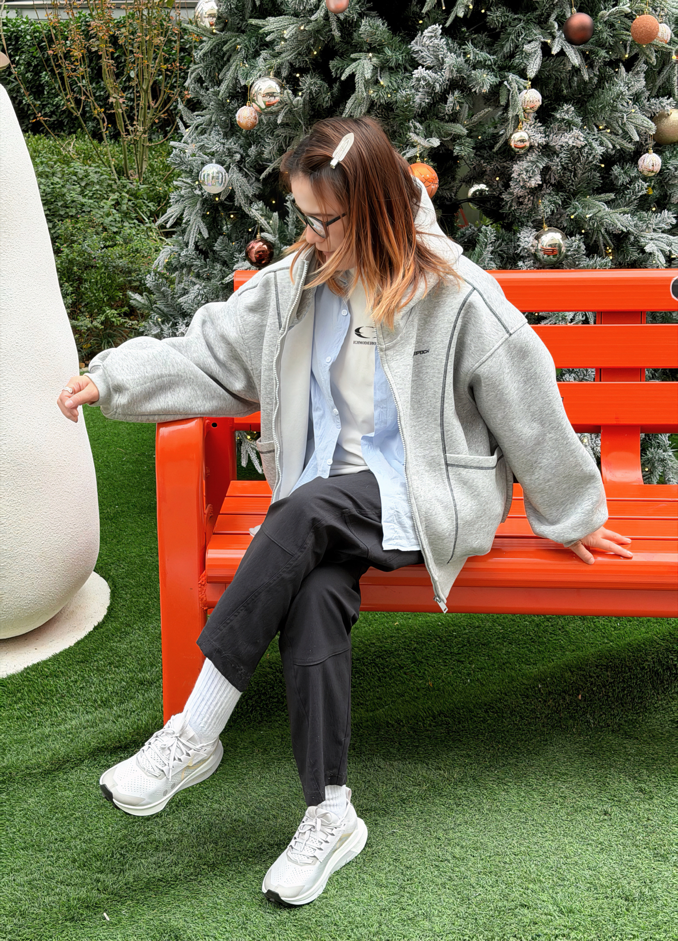 秋冬日常出街总想穿得舒服又不费力 🤔🤔🤔 这件APEA复古休闲拉链外套真的太适合了☑️ 宽松版型不挑身材 上身松弛感十足~🫧 廓形空气层面料软糯又透气 拉链款穿脱特别方便😆 搭配黑色牛仔裤就很出片 内搭叠穿白T增加层次感 整套look休闲又有质感 在街边的圣诞装置前拍照超出片📸 节日氛围直接拉满🎄约会这样穿也超适合~😝 @APEA穿搭 #双旦仪式感跟我学 #双旦送点实在的 #秋冬日...