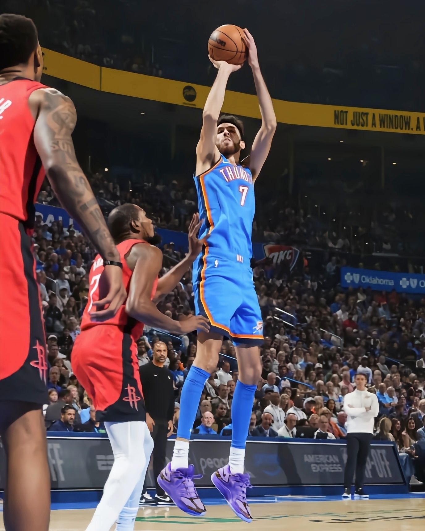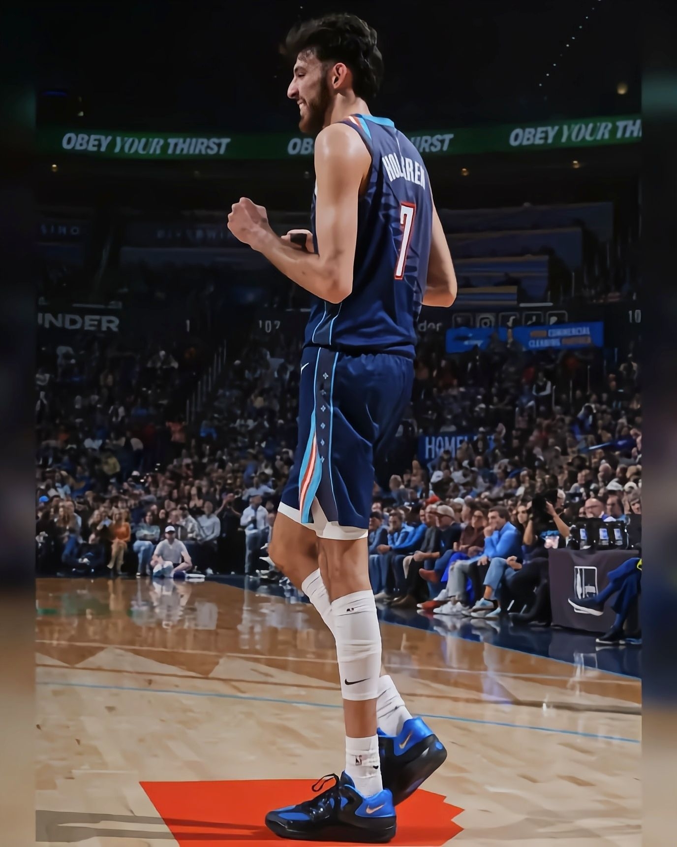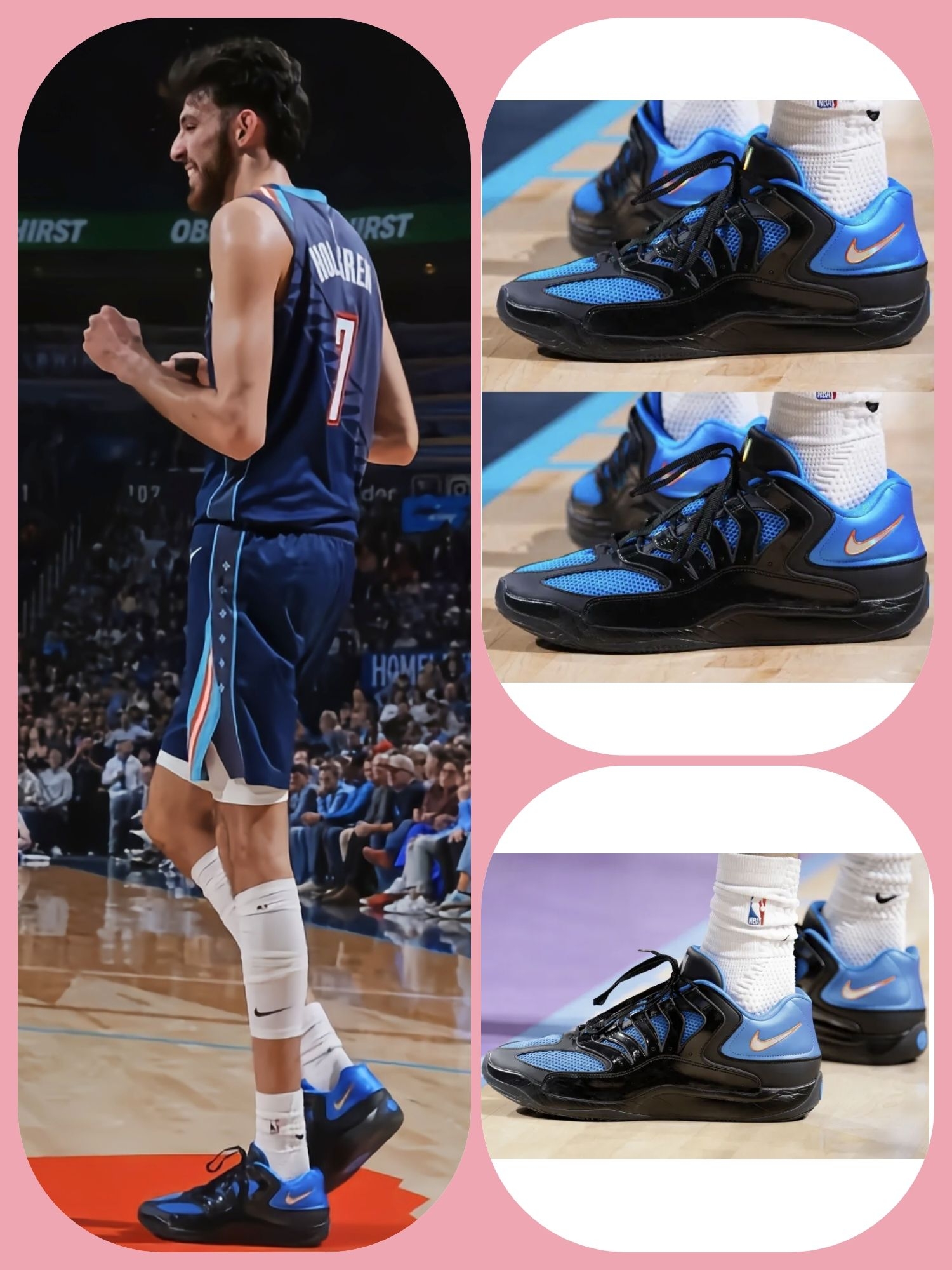 最近看比赛,注意到切特-霍姆格伦上脚的三款个人专属KD18 PE——落叶迷彩、黑蓝OKC、紫色豹纹,每一双的视觉识别度都极高。抛开PE本身的故事属性,单纯从实战鞋的角度看,这双KD18的架构确实为他在场上的表现提供了扎实的基底。 外观与设计语言:三款配色分别传达了不同的个性。落叶迷彩款以白棕色调为主,融合橙色线条,户外机能感很强;黑蓝OKC配色则简洁利落,黑色鞋身搭配雷霆队标志性的蓝色细节,侧向...