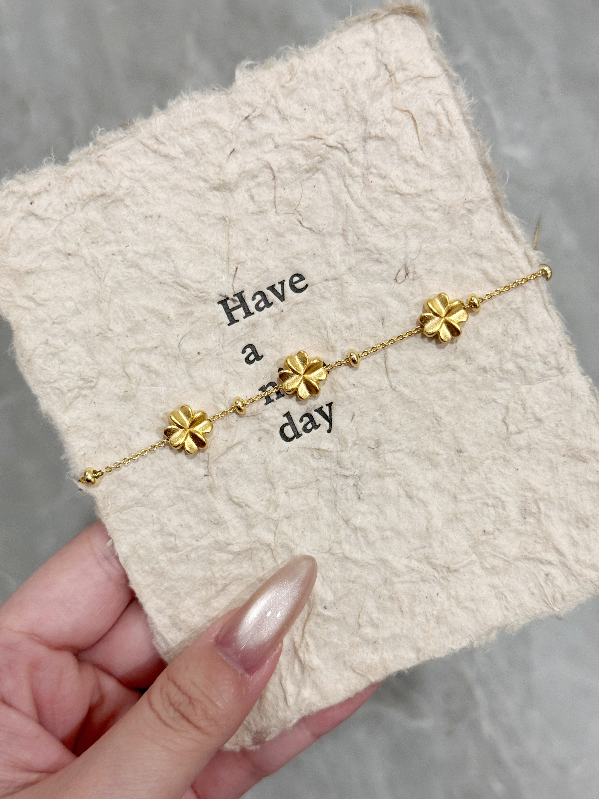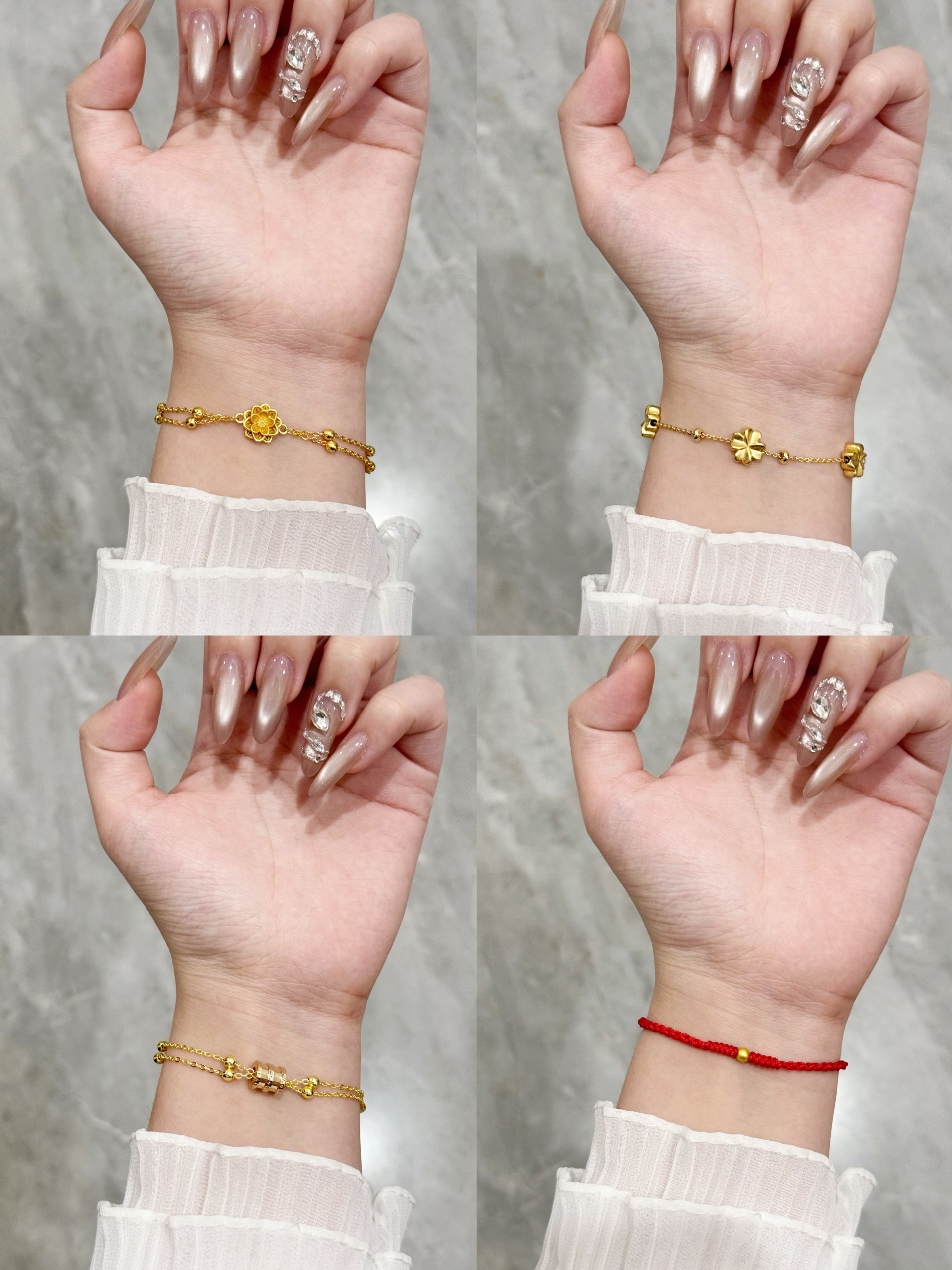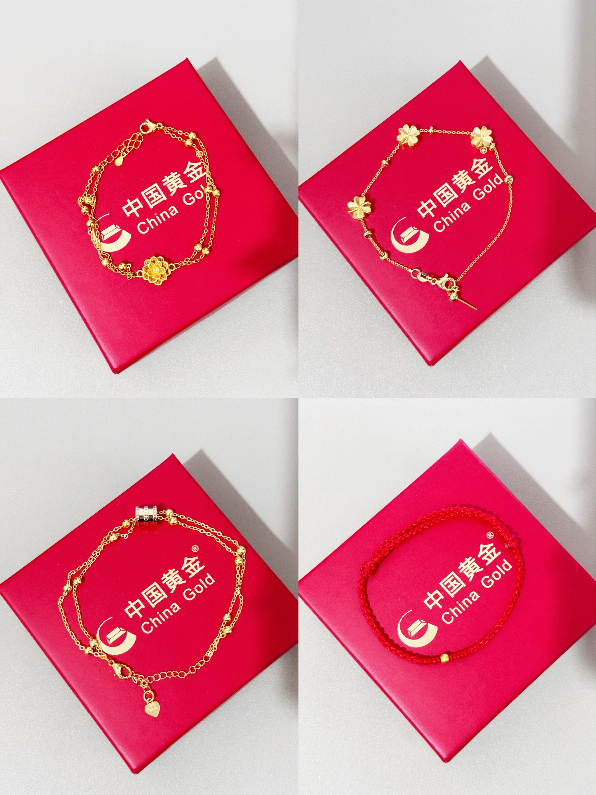 谁懂啊!最近挖到的这波黄金手链,温柔又精致,秋冬搭毛衣/衬衫都巨加分~ • 🌼梅花款:立体雕花自带柔美感,细链+小金珠点缀,戴上就是温柔大小姐本人 • 🍀三叶草款:叠链设计+三颗小花,灵动又显白,日常通勤/约会都能戴 • 📿小方糖款:简约金属桶+双层链,低调又有质感,职场女孩的精致小心机 • 🎀红绳款:新年氛围拉满!细红绳+小金珠,显白还自带好运buff~ 每款都是轻克重但质感在线,温柔不张扬,秋...