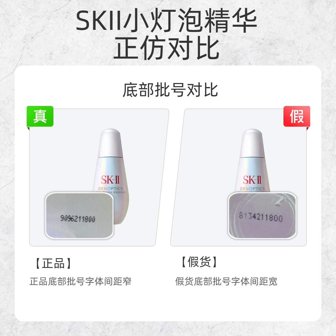 今天扒 SK-II 小灯泡的 3 处致命假点,看完直接和假货说拜拜👇 1️⃣ 底部批号 ✅ 正品:批号字体间距紧凑,数字排列规整不松散 ❌ 假货:数字间距拉得很开,排版显得杂乱 2️⃣ 瓶盖顶部 ✅ 正品:瓶盖顶部是光滑圆弧,没有多余凸起 ❌ 假货:顶部有明显的分层凸起,质感廉价 3️⃣ 质地区别 ✅ 正品:是细腻的乳液状,自带通透光泽感 ❌ 假货:质地里气泡、杂质多,光泽感很弱 小灯泡的...