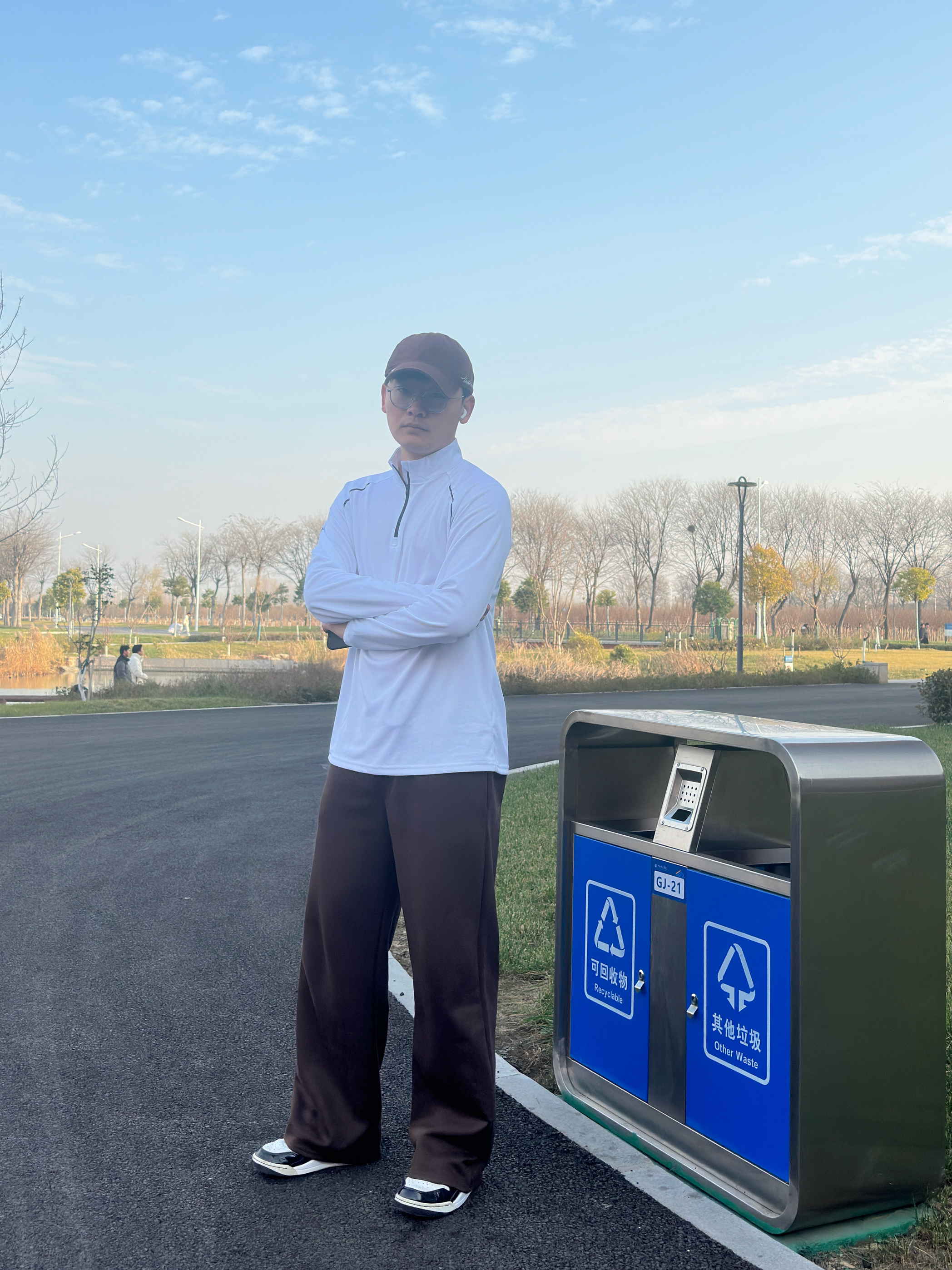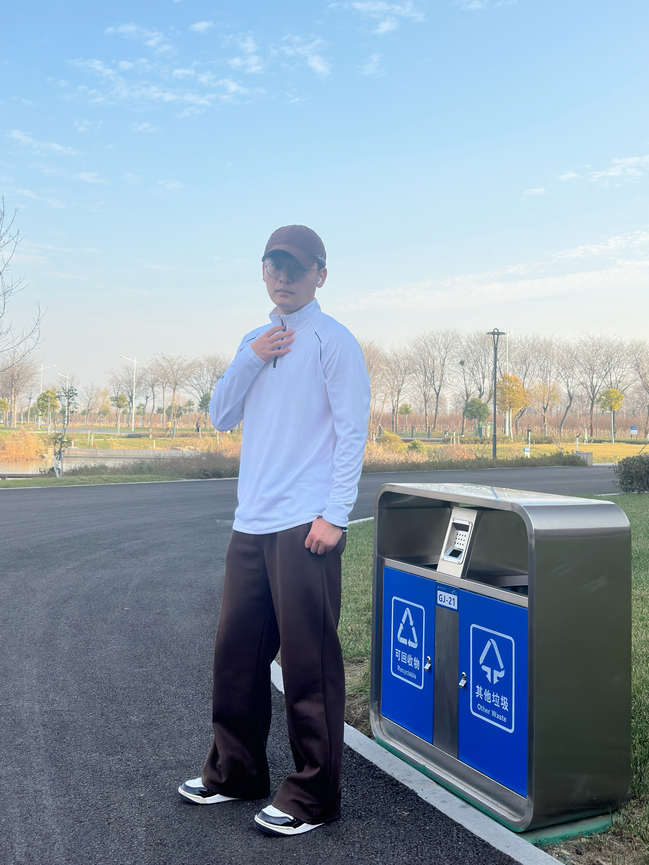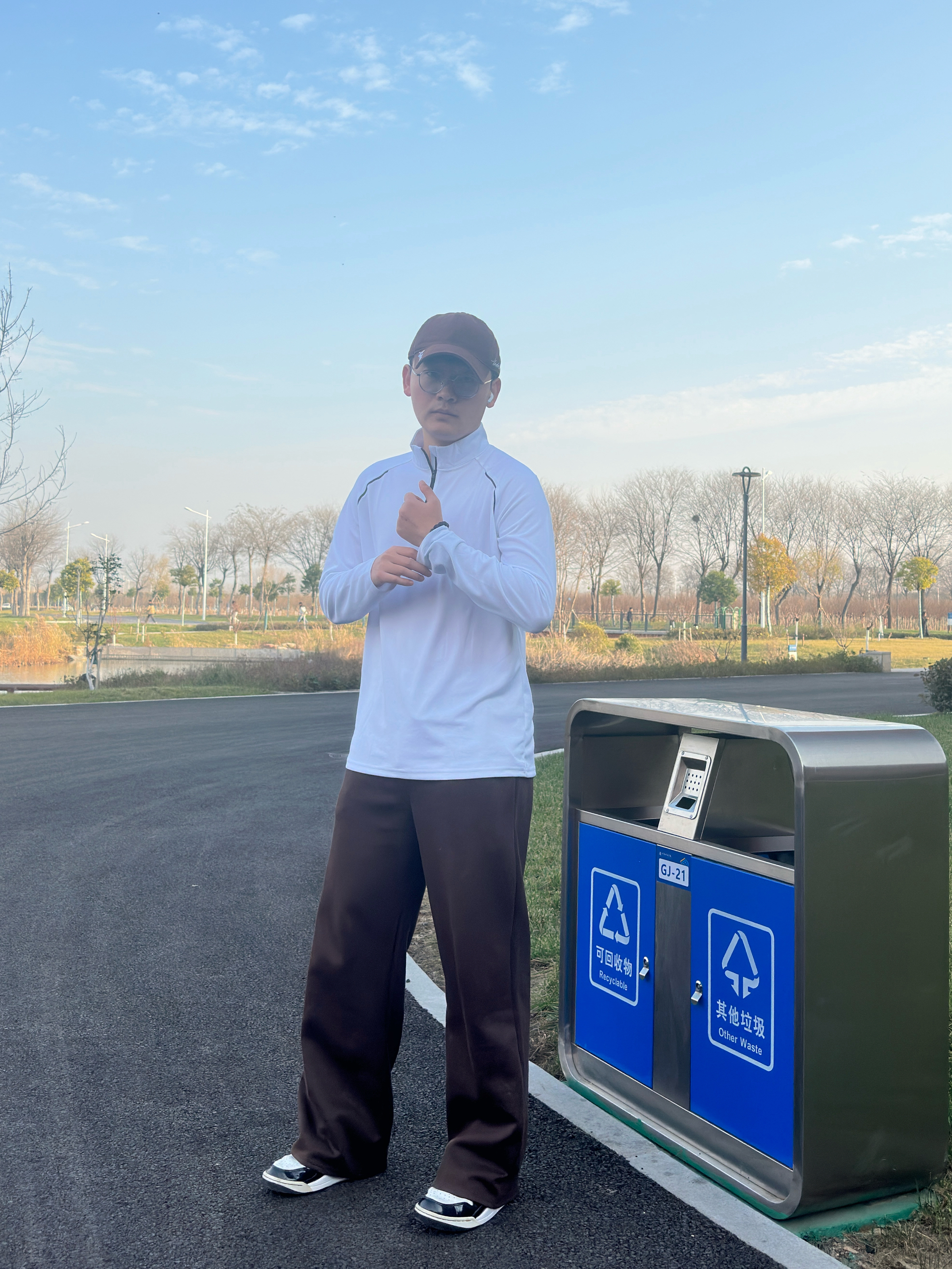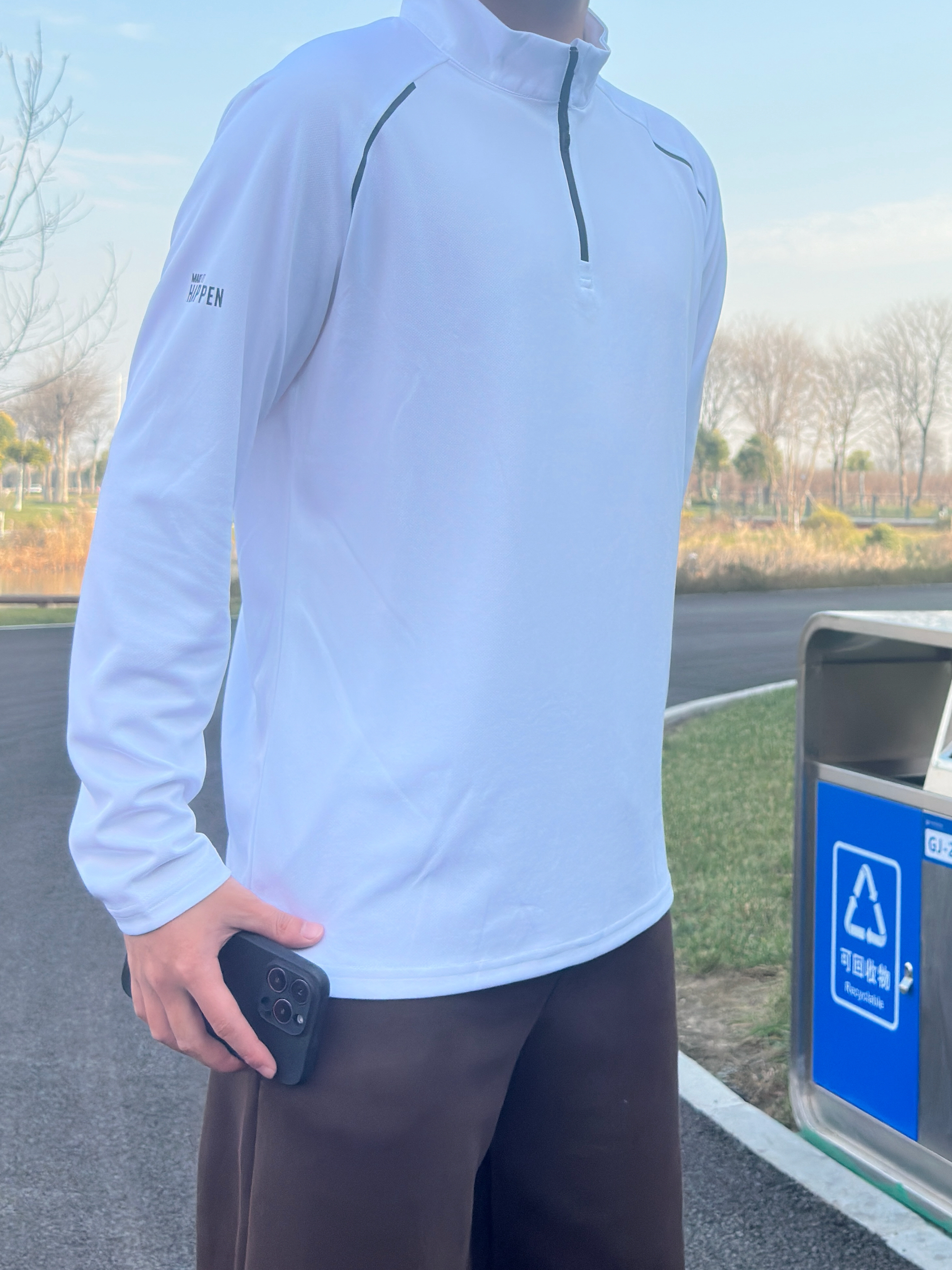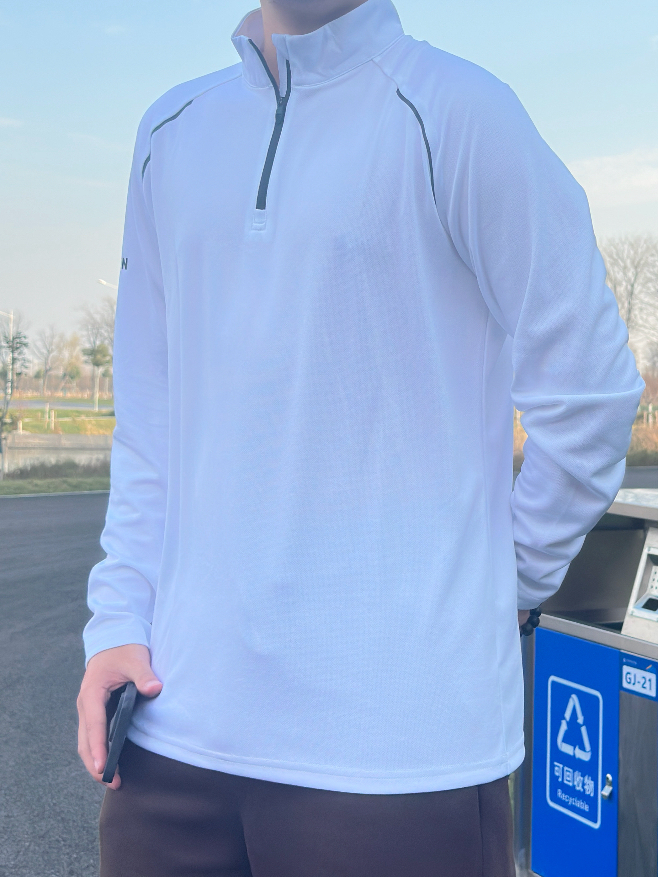 来看一下今天我的秋日散步选配吧: 半拉链白长袖自带透气buff 侧边暗纹偷偷藏了点运动感小心机 棕阔腿裤是显瘦作弊器,垂坠感直溜溜的 我喜欢这件的拉链立领加上白色款式刚好可以做一件打底衫 技巧嘛,同色系下装+浅色系上衣是“不费力好看”的万能公式,宽松款叠穿别超过两层,利落才是精髓。风一吹,连垃圾桶都成了我的ootd氛围组~