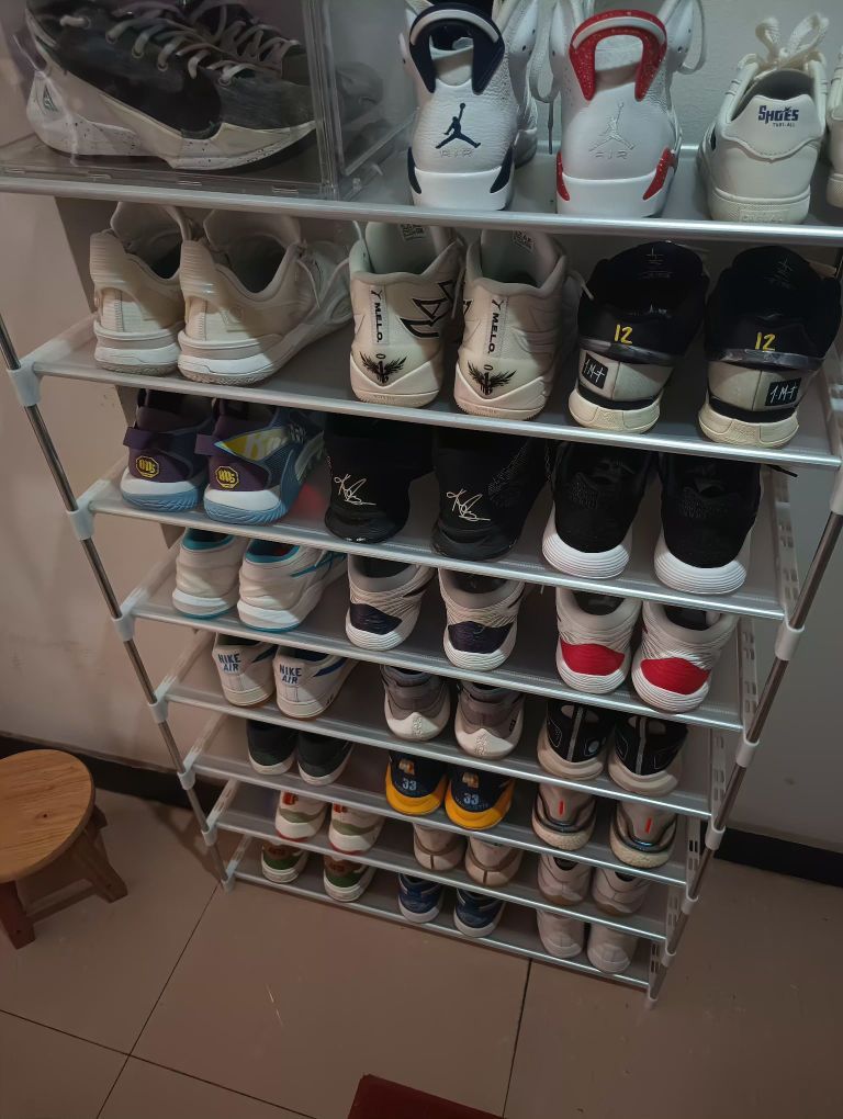 推荐同款风格的好物: 🔍 现有装备亮点 1. 球鞋收藏: 能看到安踏、李宁、阿迪等品牌的实战鞋,款式涵盖了不同配色既有颜值款也有实战款; 收纳很整齐,能看出来是资深鞋迷啦~ 2. 篮球周边: - 图2的广东宏远球衣(徐杰、崔永熙),是CBA球迷没错了; - 图3的篮球、哑铃、运动补剂,是既爱打球又爱健身的全能型选手~ 🎁 同风格推荐 实战球鞋: - 如果你喜欢图...