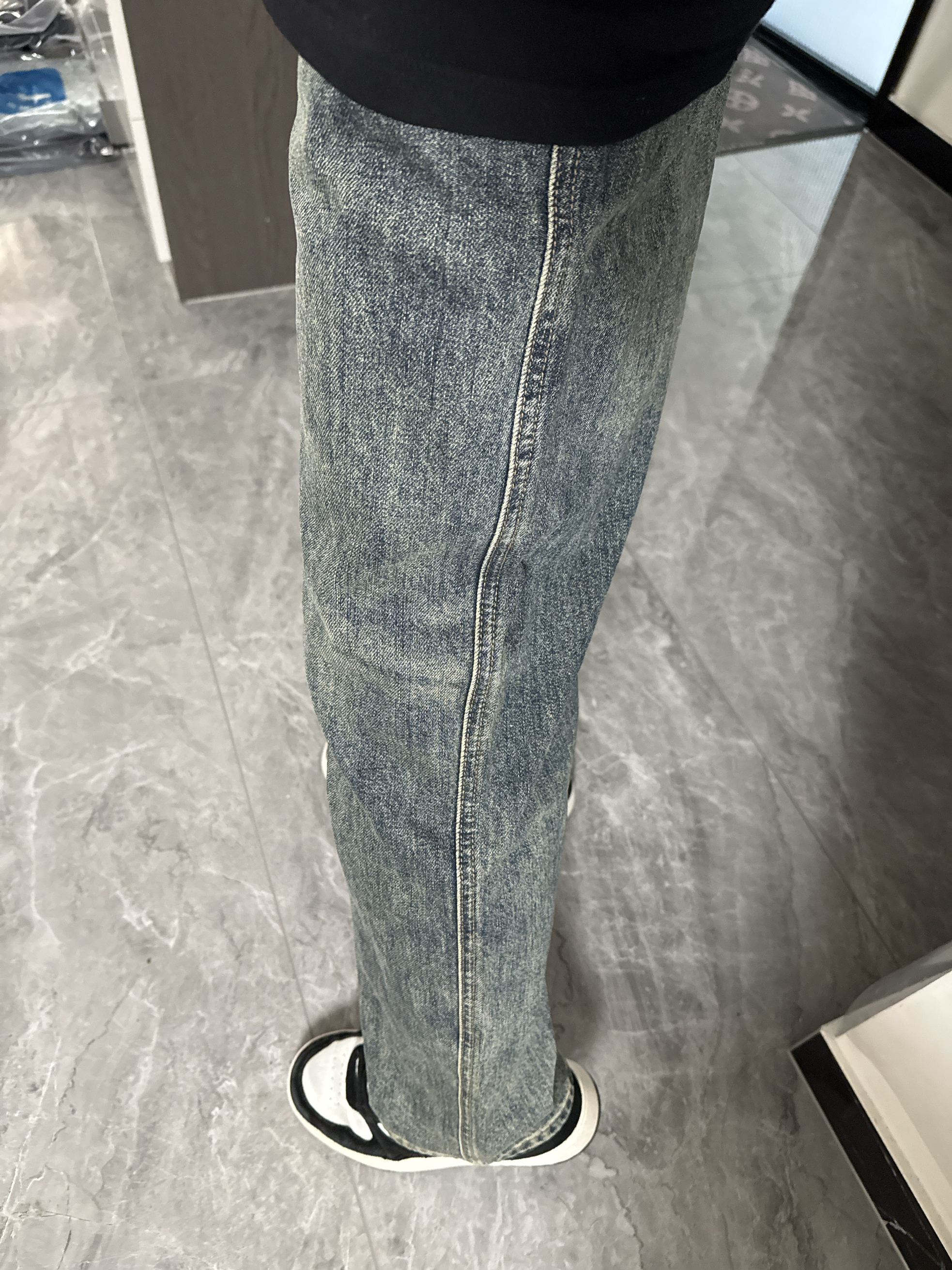 真的对这种简约风格的牛仔没有抵抗力!版型设计也很顶 直筒版型利落板正 穿上去很舒服也不紧勒 宽松直筒休闲还显瘦哈哈 常规蓝色适配各种场合 搭双黑白板鞋直接简单又帅气!