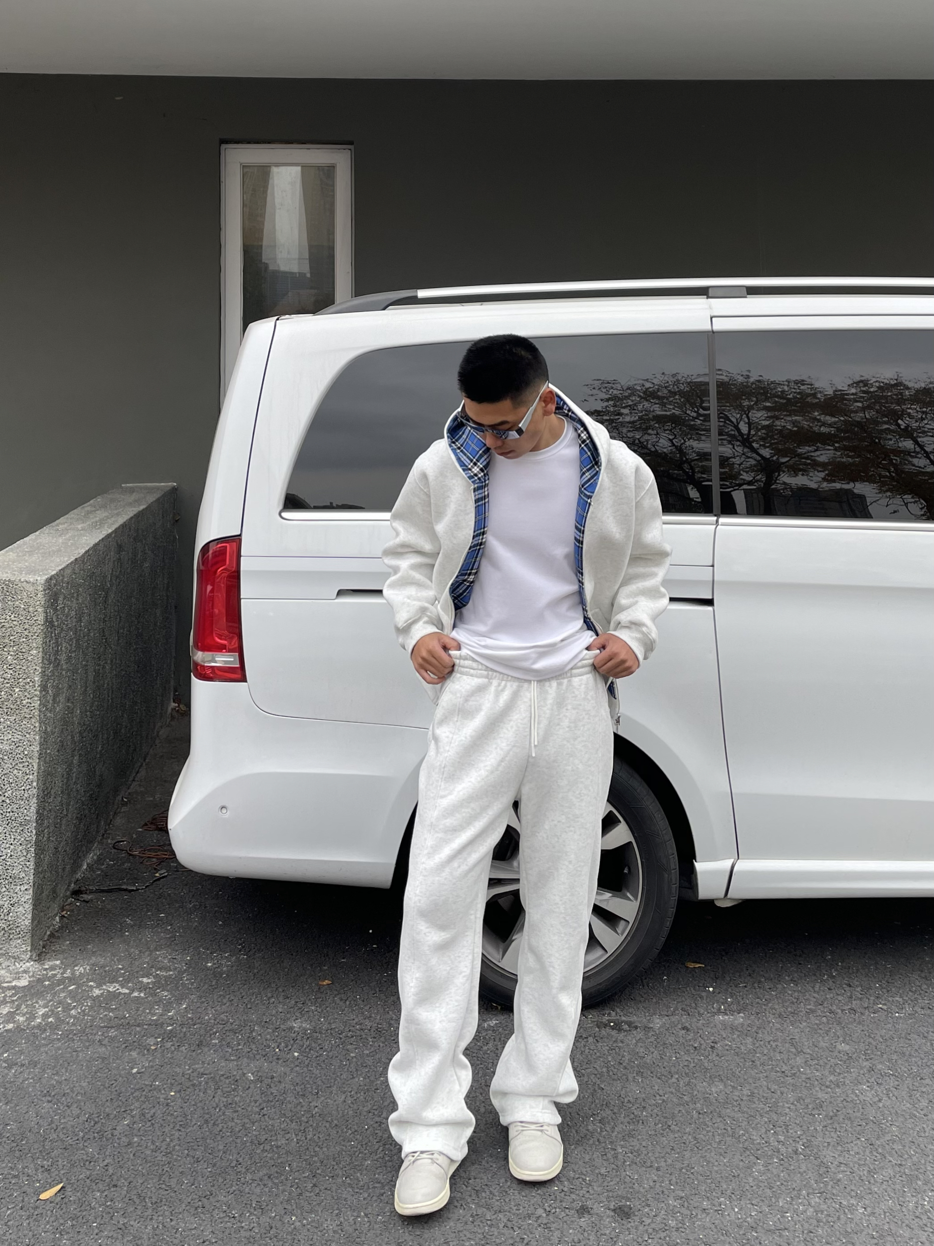 周末和朋友一起约个下午茶☕️ 搭配小板鞋 这一套就很松弛🤩 我还挺喜欢🤍🩶白花灰颜色的卫裤,比较显年轻哈哈哈🤣 👖卫裤面料太厚实了!而且是加绒的❗️南方的冬天❄️单穿这一条不会冷的✌️ 北方的兄弟们里面穿条秋裤就足够了🔥 腰部是抽绳的,不用担心自己的小肚子😝 我是身高是181cm 体重75kg 👖➡️穿的是XL码 宽松效果~