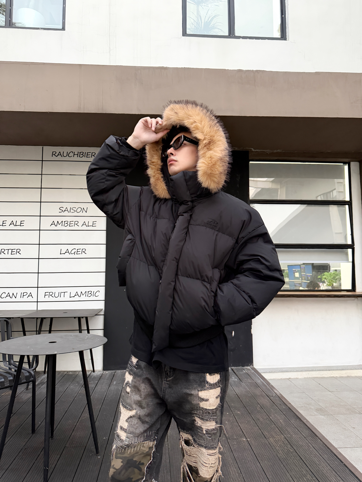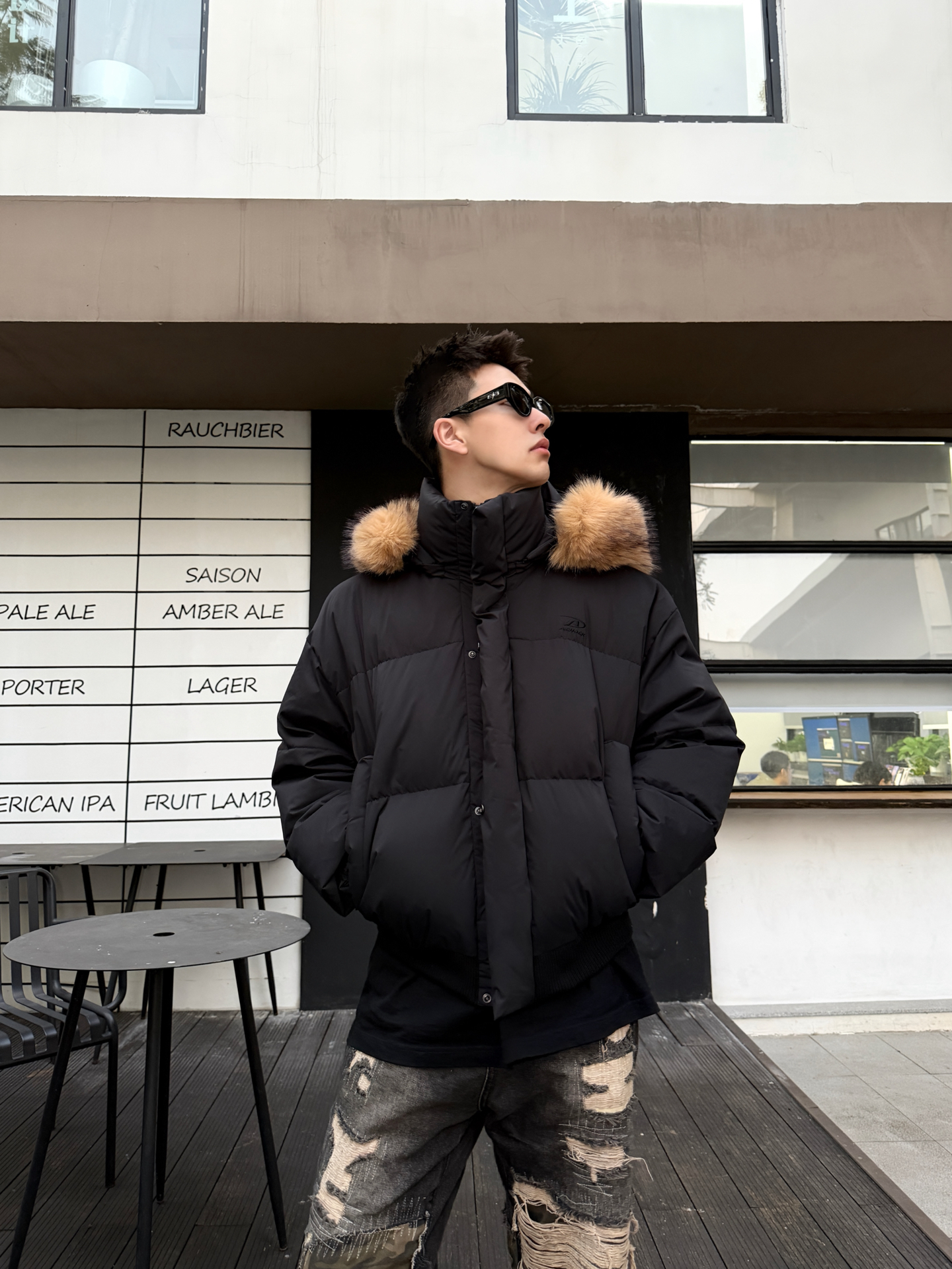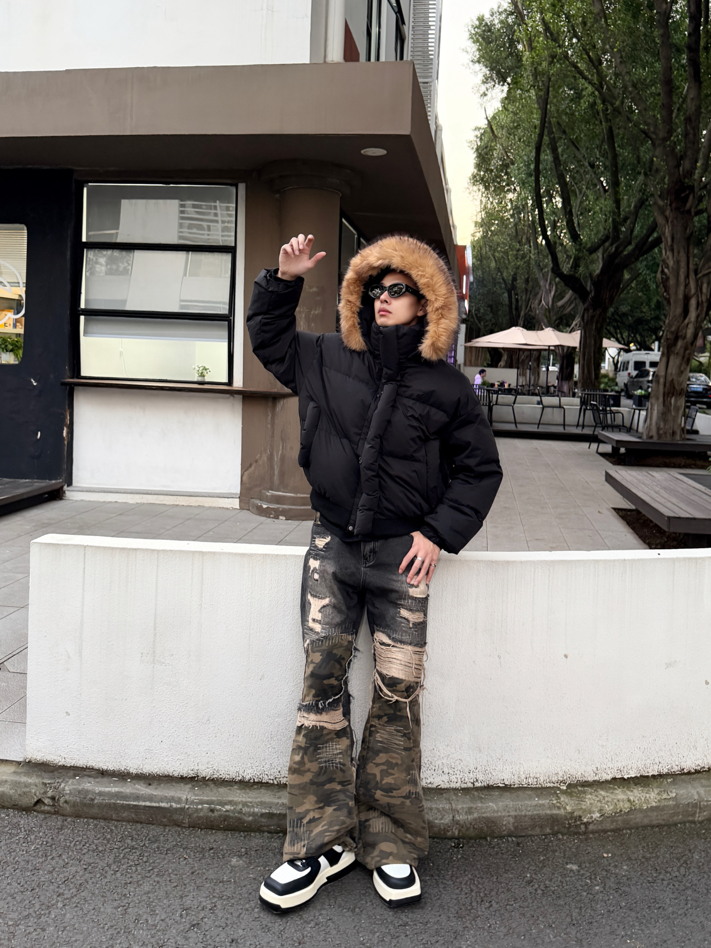 黑羽绒服+迷彩裤,这“美式街头感”直接炸场了 谁能拒绝 #A chock 这件黑羽绒服的反差感啊—— 90白鸭绒超级保暖,毛领一戴直接把街头痞帅感拉满;搭一条做旧迷彩裤,破洞细节戳中复古潮点,踩双 #CHOCO CONCERT 黑白厚底鞋,往城市街角一站,随性又自带“生人勿近”的酷感。 秋冬想穿得暖还能炸街,这波直接把公式焊死! #一起穿ACHOCK #过冬保命服 #穿ACHOCK过冬天...