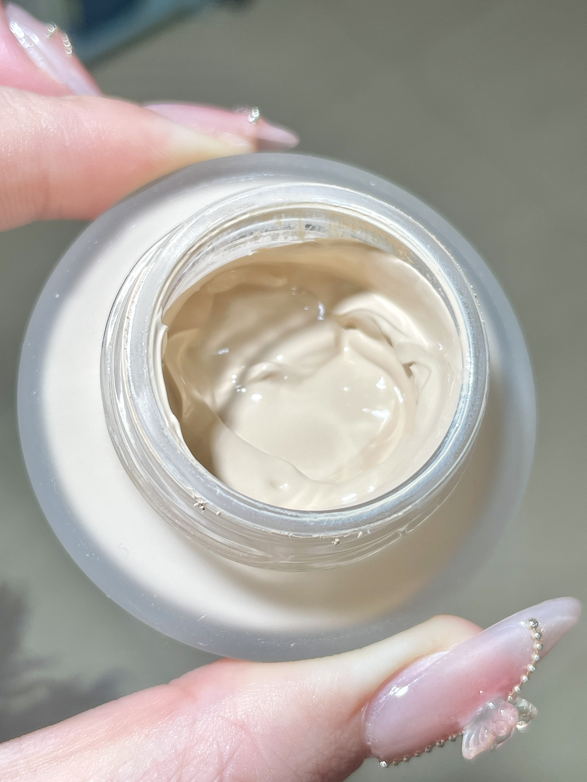这个粉霜是属于滋润型的 我还在手上试了下 真的就像面霜一样好推开 而且徒手搓出来都很均匀 我差点以为这是素颜霜了 而且对于我这种干敏皮来说 真的不要太适合了 用起来不干而且粉质细腻还持妆