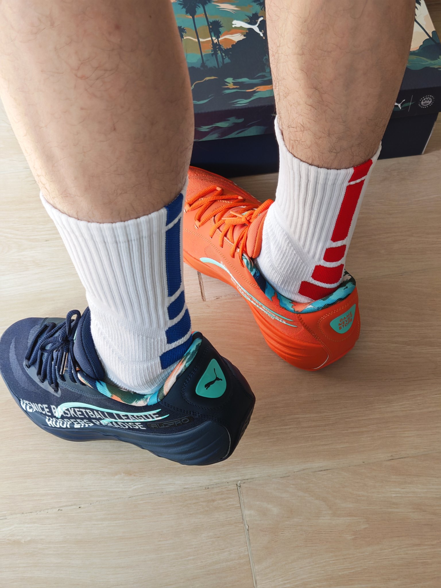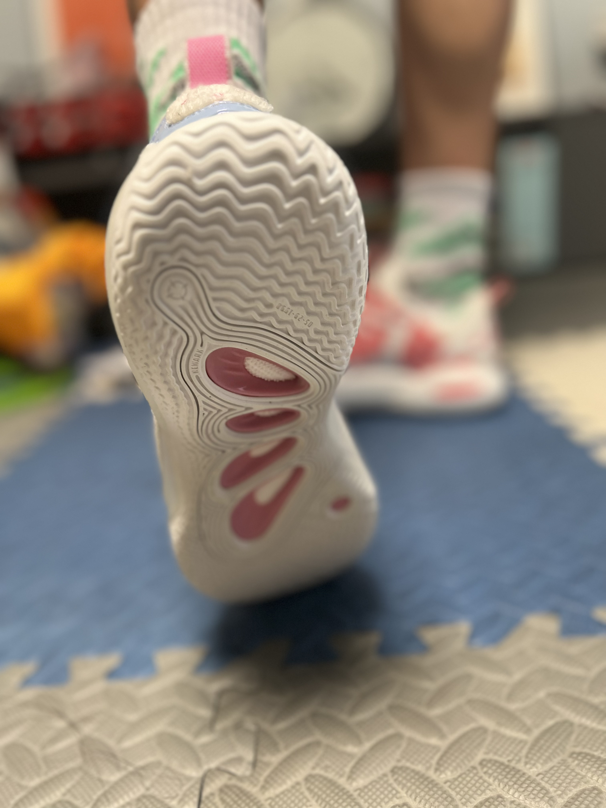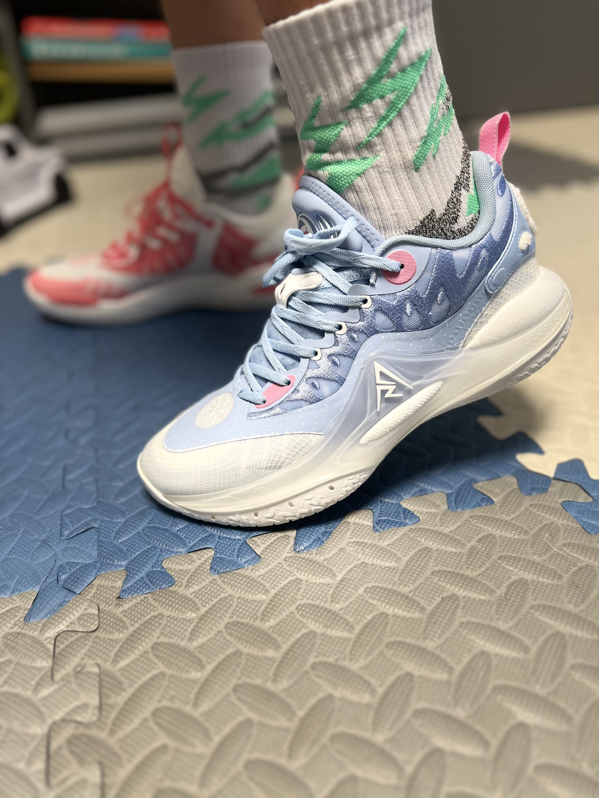 今天上脚这双里弗斯二代的鸳鸯配色 这双鞋给我的感觉所有性能都OK 缓震极限够 防滑够 血条够厚 包裹 中断后跟锁定都非常好 但是 穿上以后 就感觉重心很高 容易崴脚。对于我这种总打高强度实战的人来说 说不出哪里有问题 就是不放心 目前一个2开的价位就能入手 如果是学生党 还对自己脚踝力量自信的同学 可以入手