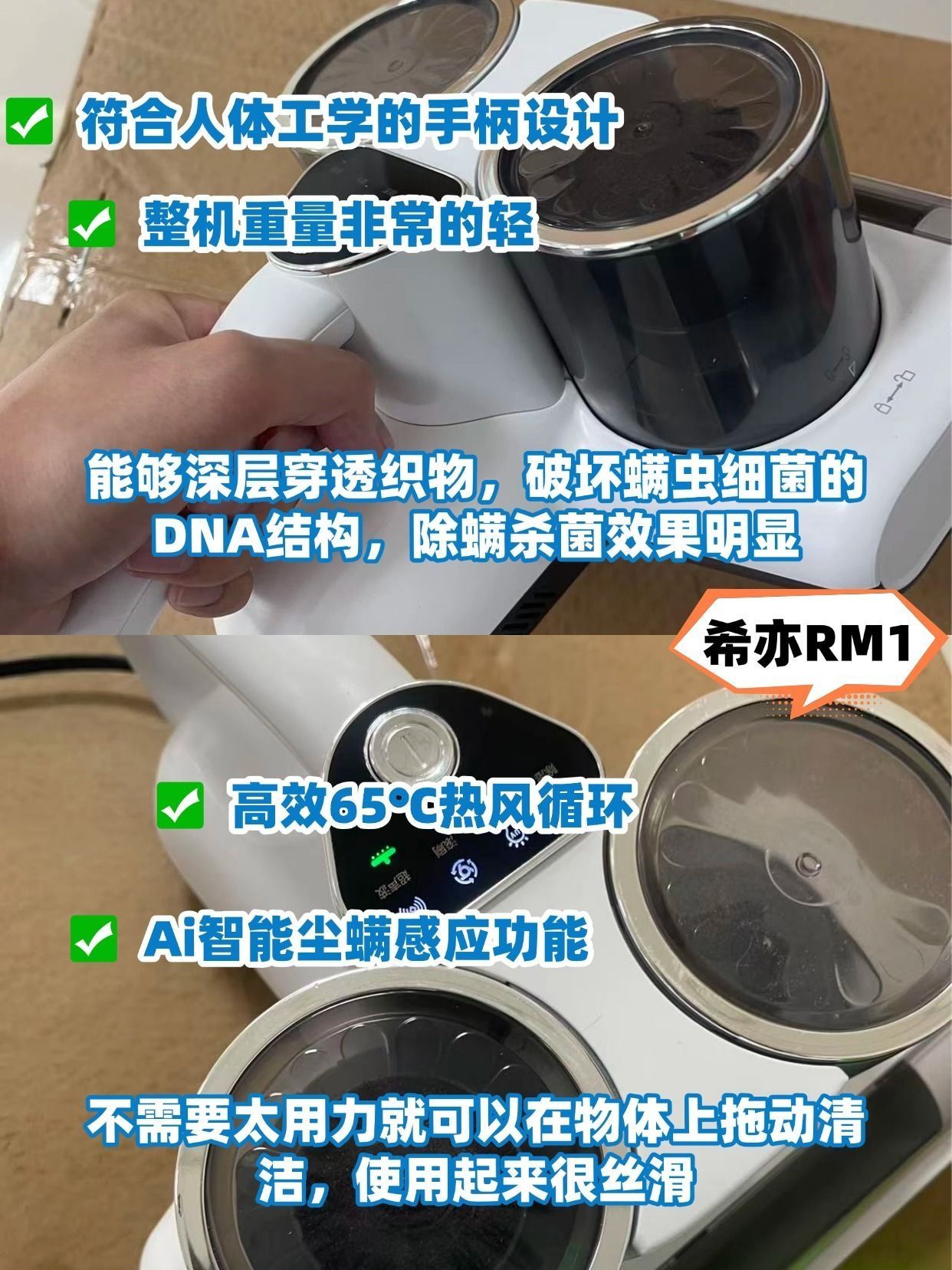不知道大家有没有这样的困扰,身上总是莫名地起一些小疙瘩,还以为是皮肤问题,结果是螨虫在作祟。为了消灭这些看不见的 “小麻烦”,我入手了希亦 RM1 除螨仪,效果真的让我惊艳到了! 这款除螨仪的使用感受也很好。它的设计很人性化,机身轻便,手柄的握感也很舒适,长时间使用也不会觉得累。操作简单易懂,家里的老人也能轻松上手。尘杯清理方便,一冲即净,避免了繁琐的清理过程。 而且除螨效果真的没话说。它的大...