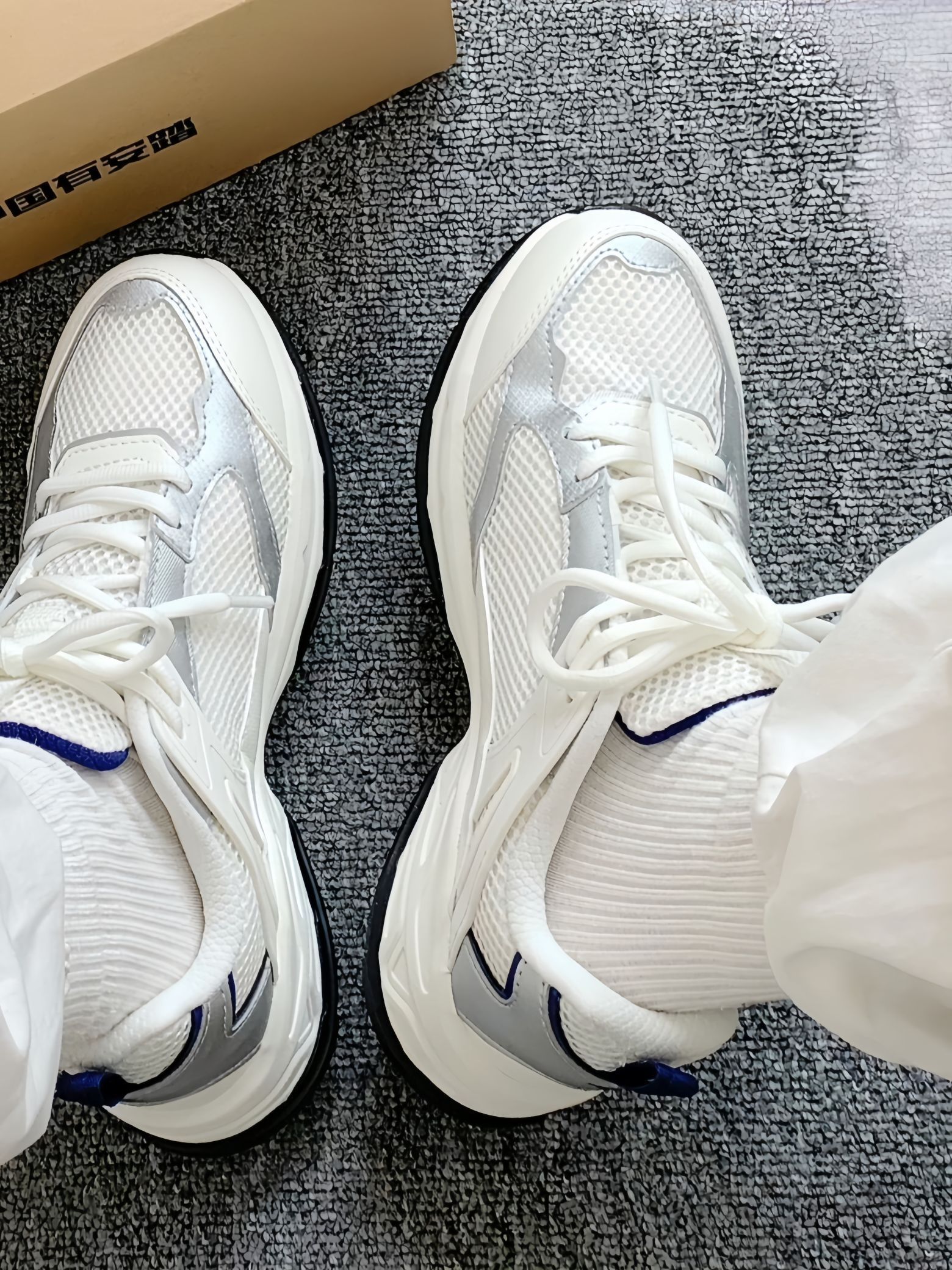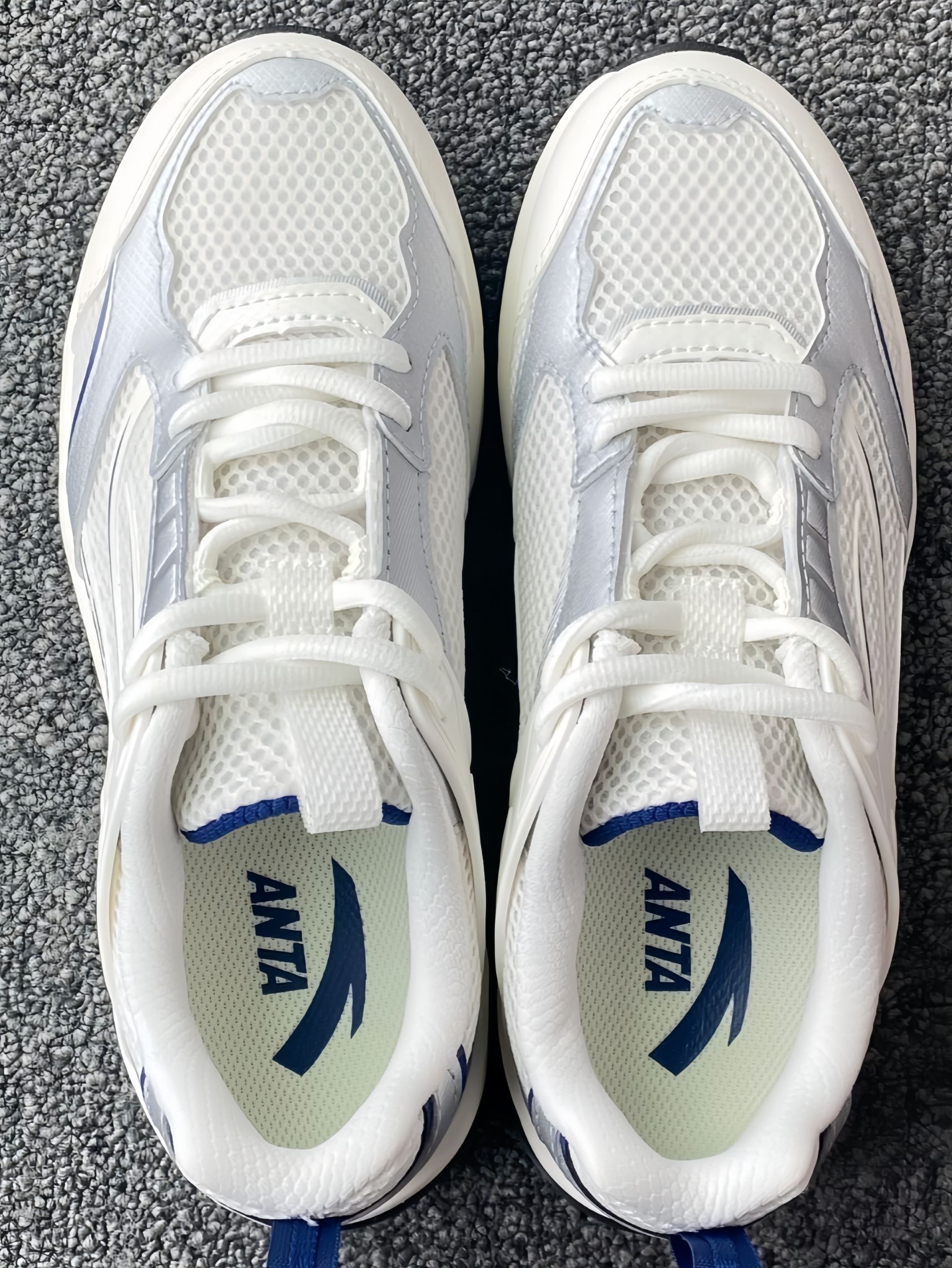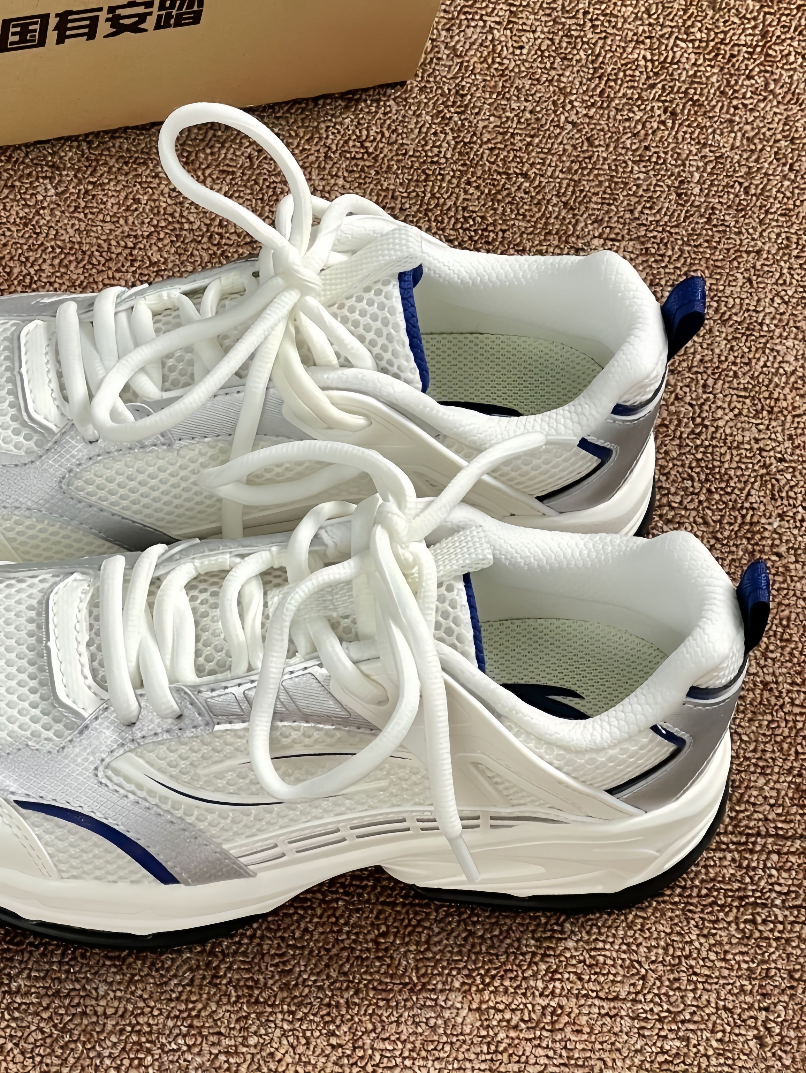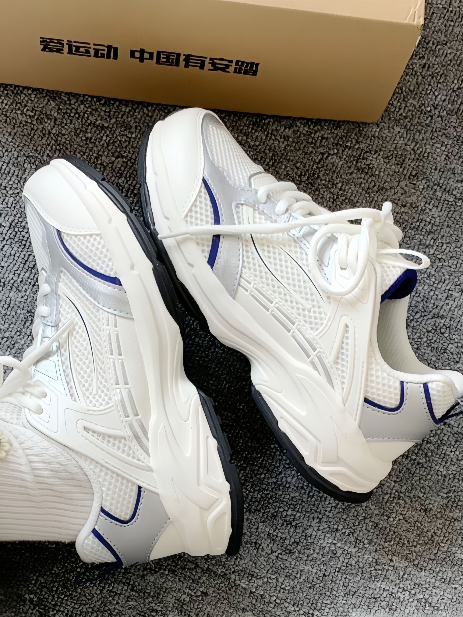 是今年很火的银色呀 安踏千禧冰河介款尊嘟有点好看👀 而且还蛮日常的 我上课出去玩啥的都穿😍 每天走路1万➕晚上脚也没啥感觉 鞋子hiao轻 上脚基本没负担🎉 搭配牛仔裤或者白色裤子都好看hhhh