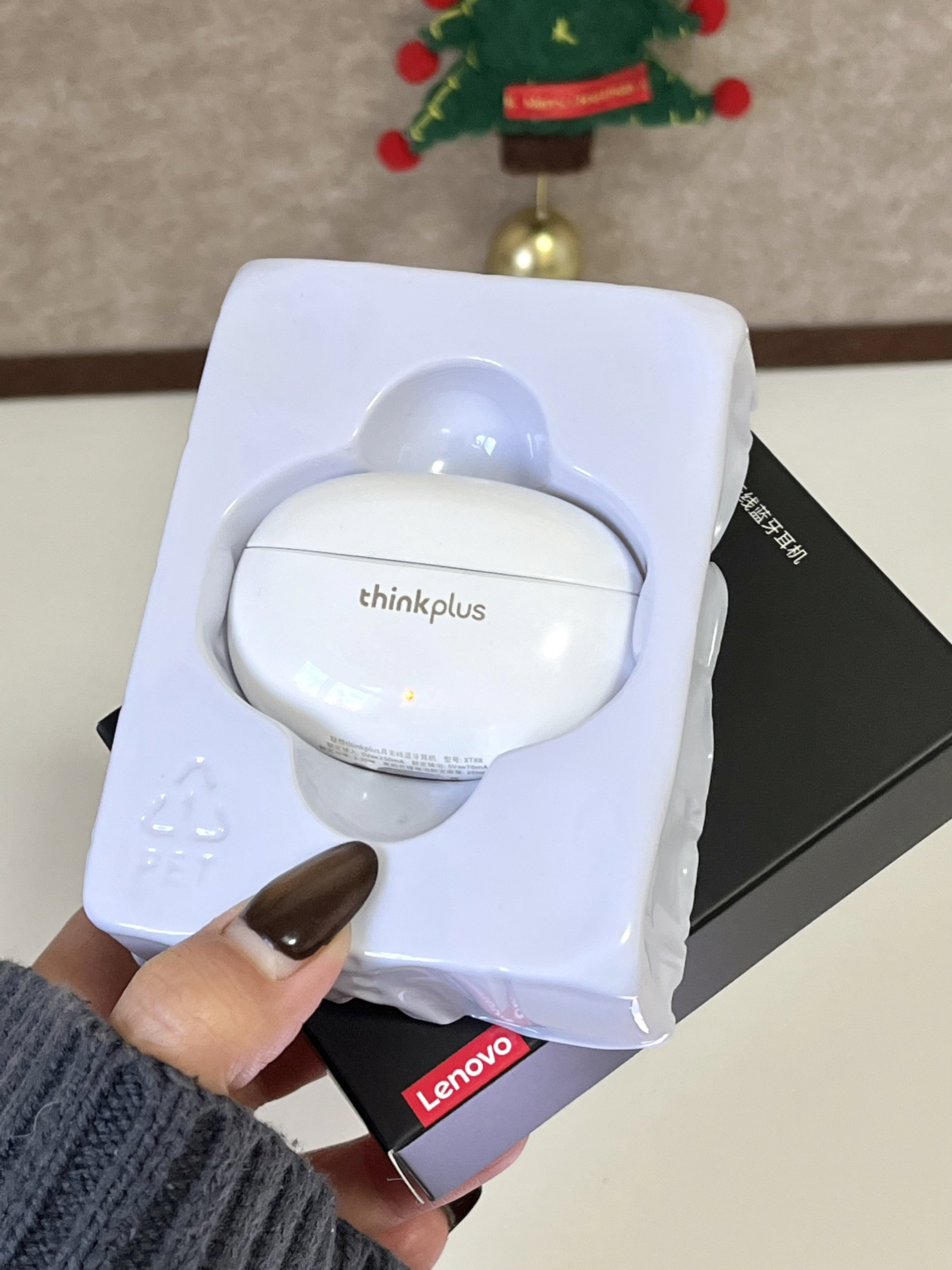 就是这个联想蓝牙耳机 没想到区区几十块还挺好用的 是那种奶呼呼的白色 平时用它来听歌,连接速度挺快的 而且很贴心的自带耳塞,久戴也不怕耳朵痛咯 我觉得不管自用还是作为圣诞礼物送人都蛮不错呀