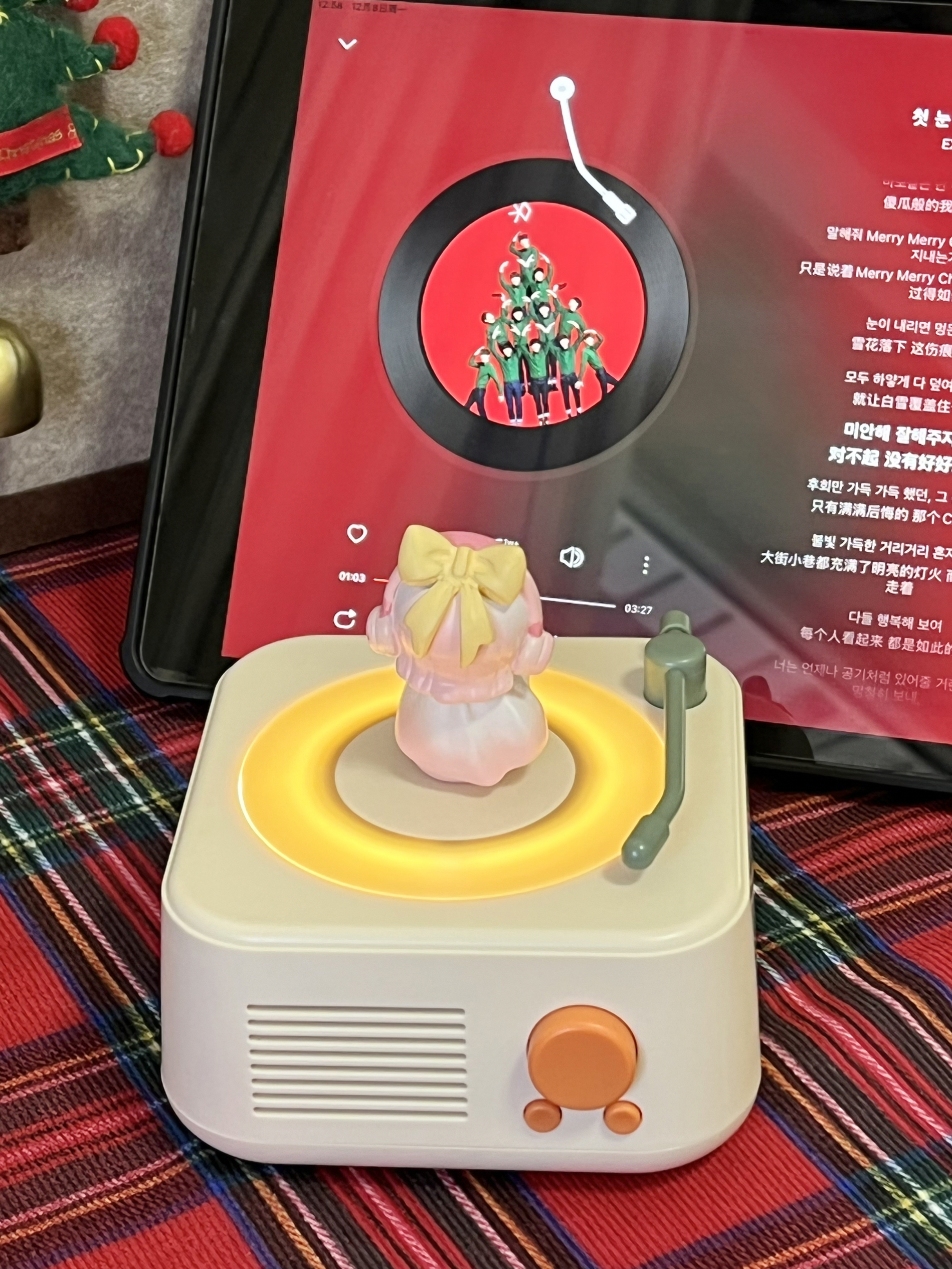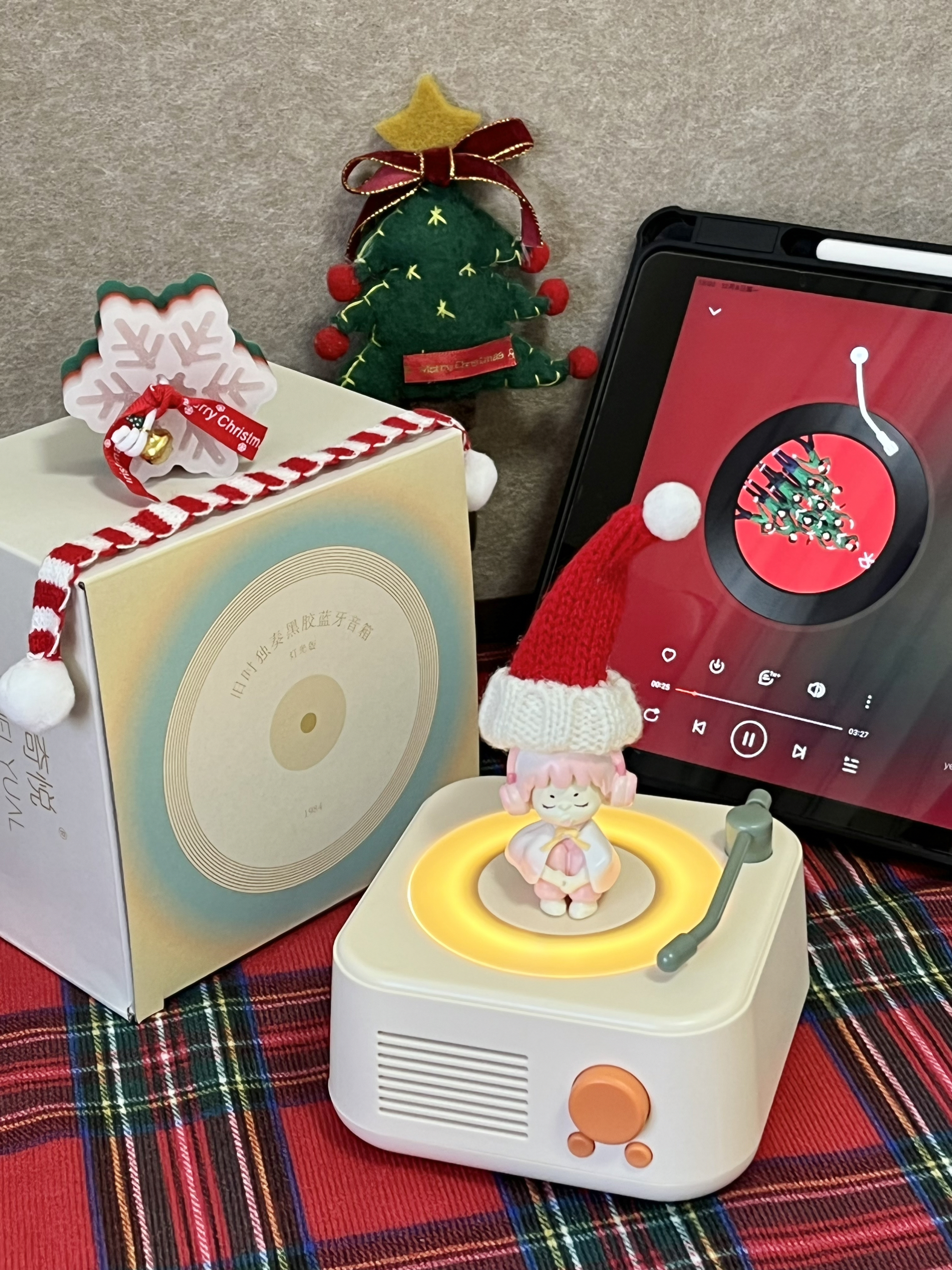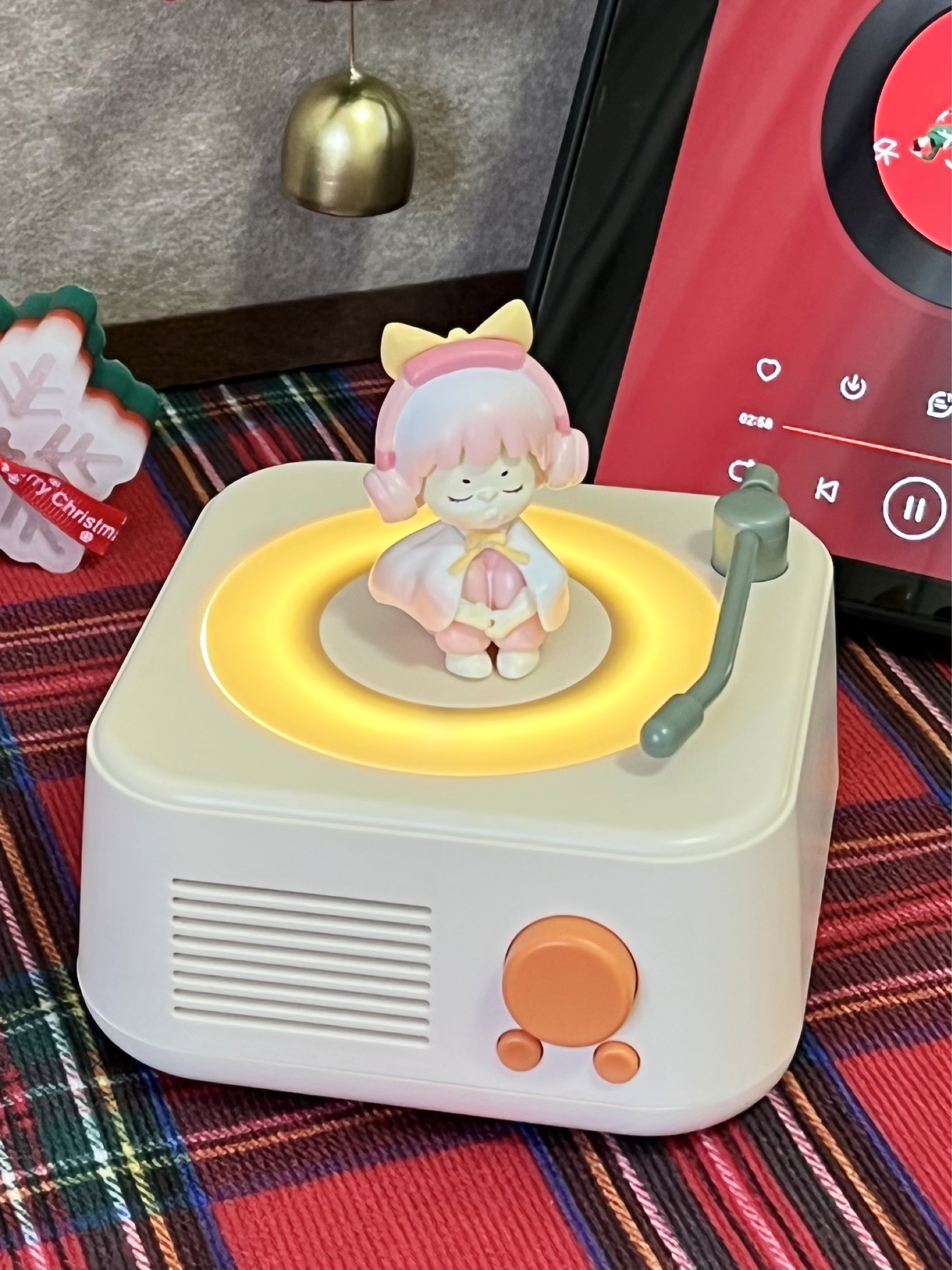 好喜欢这个黑胶音箱 自带小玩偶,好可爱哦 唱片会随着音乐转动,还挺梦幻 音质蛮不错,我用它来听歌都更沉浸啦 才几十块的价格,我觉得作为圣诞礼物自用或送人都蛮不错的