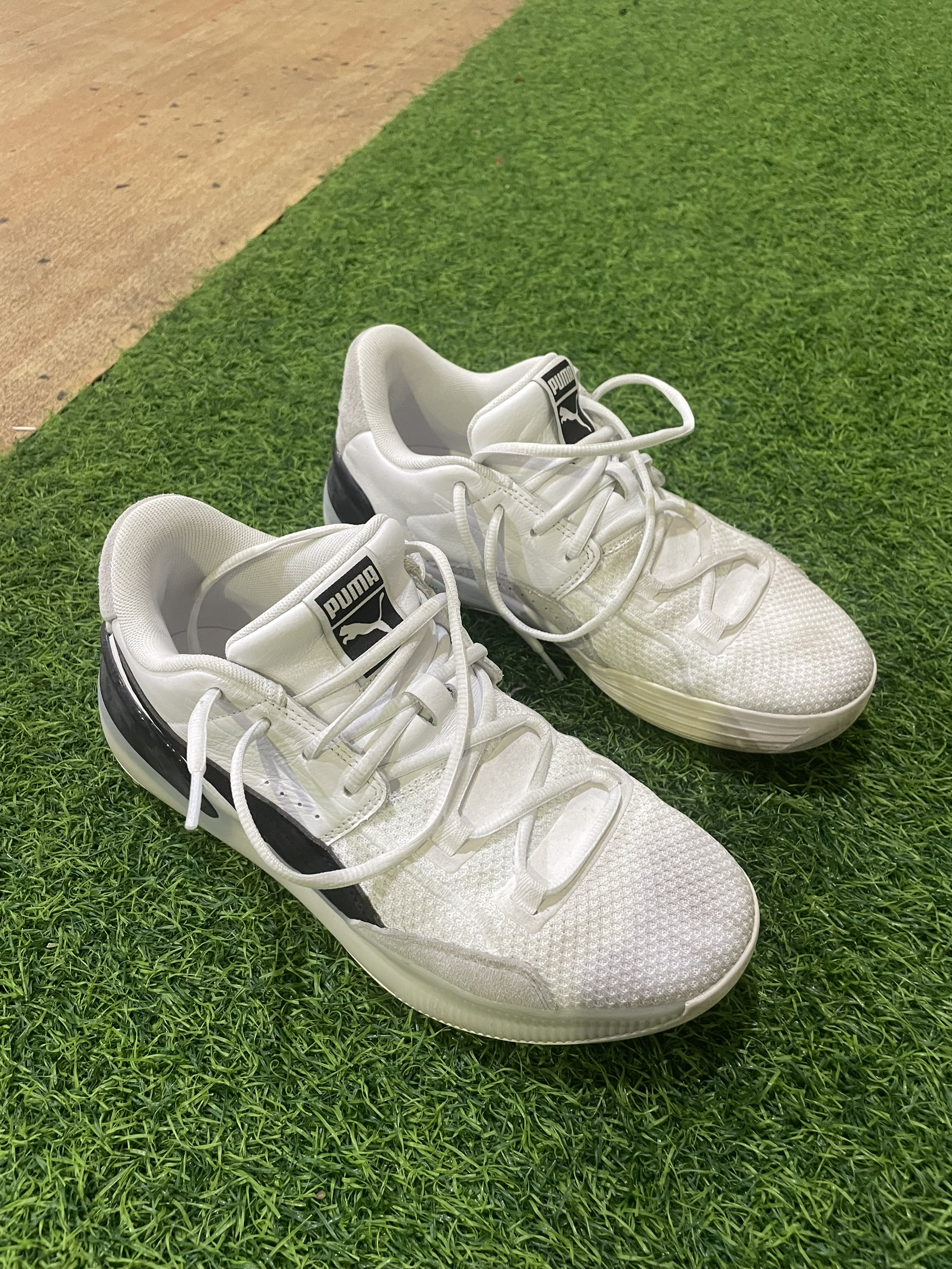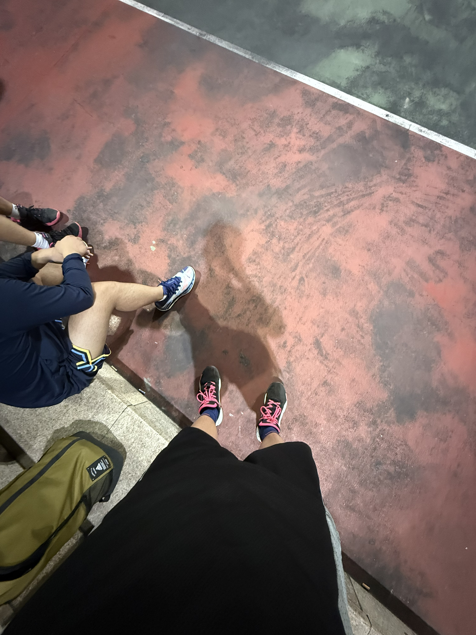 1️⃣抓地耐磨:外场党狂喜!用的是钩子家Hart橡胶外底,纹路又深又硬,室内场急停时“吱呀”响超安心,外场水泥地打了大半年,纹路基本没磨损。唯一要注意的是沾灰后抓地力会下降,擦一下就恢复正常。