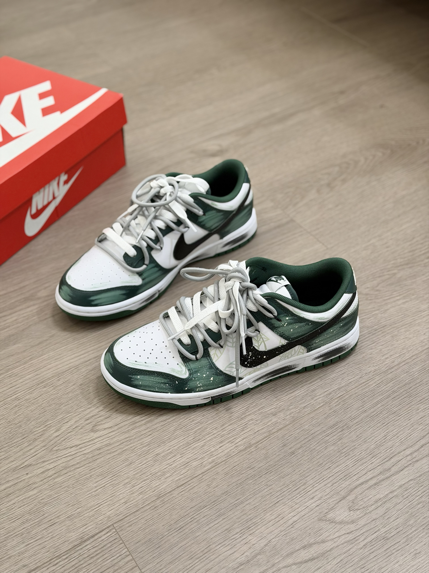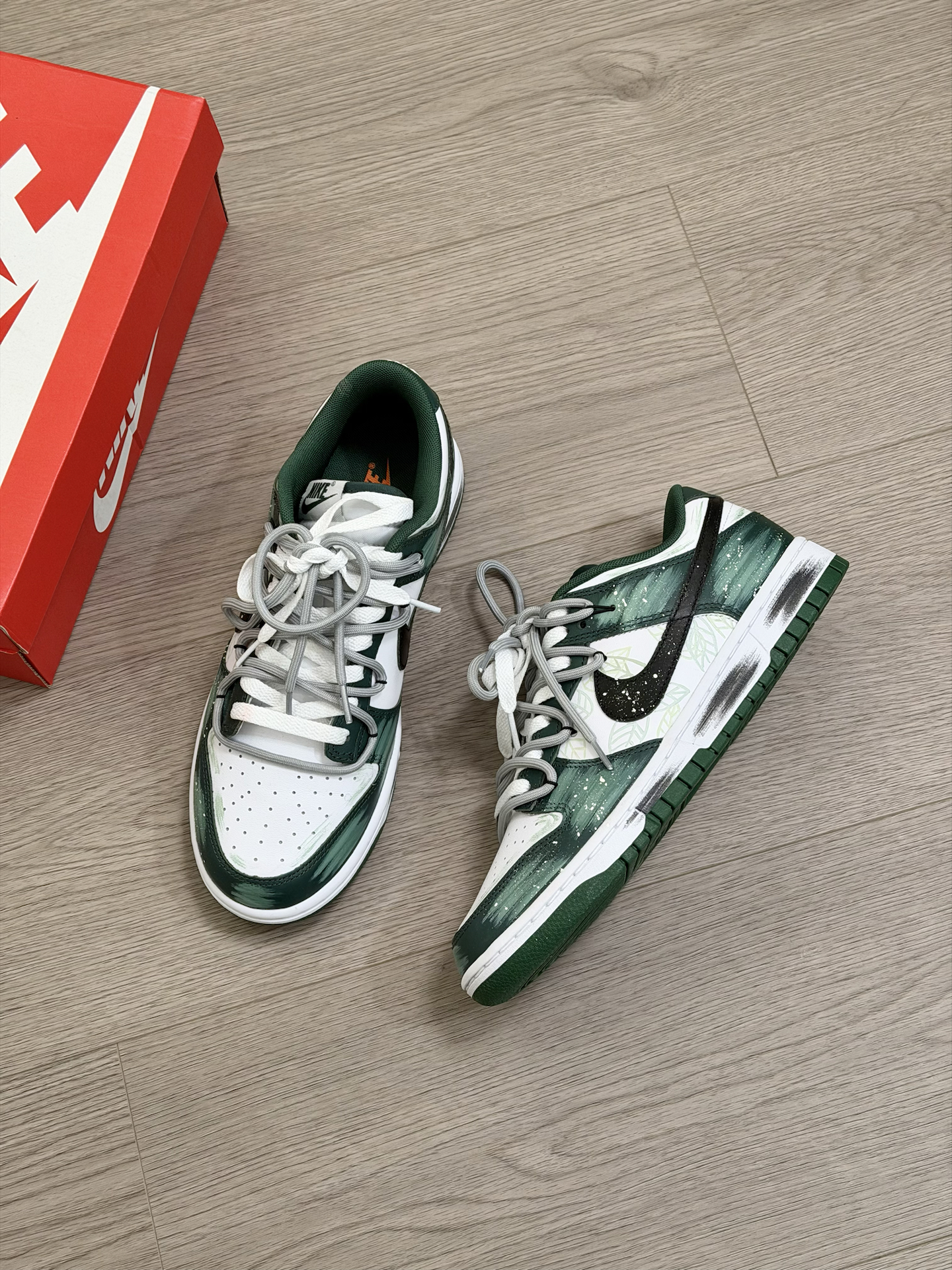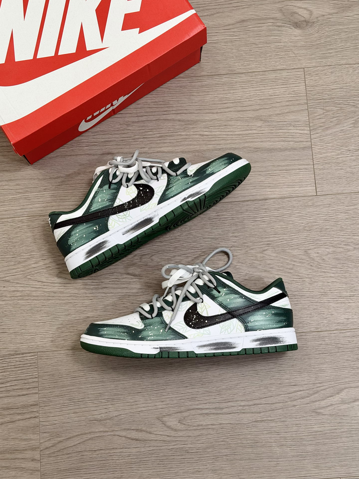 冬天还是得穿的亮一点 给你们分享一双 我最近蛮喜欢的小众nike板鞋~ 鞋面的绿色涂鸦 看起来就蛮像绿色仙踪的感觉 侧面还有手绘树叶和泼墨点缀 再加上双鞋带 真的超有设计感 而且上脚蛮好搭衣服的 就是板鞋的脚感 我觉得没有那么好 喜欢软一点的 换个厚实的鞋垫 能舒适不少 #被这双鞋帅到 #复古球鞋新主张 #双旦礼物节 #薄底鞋穿四季 #鞋帽选对赢一半