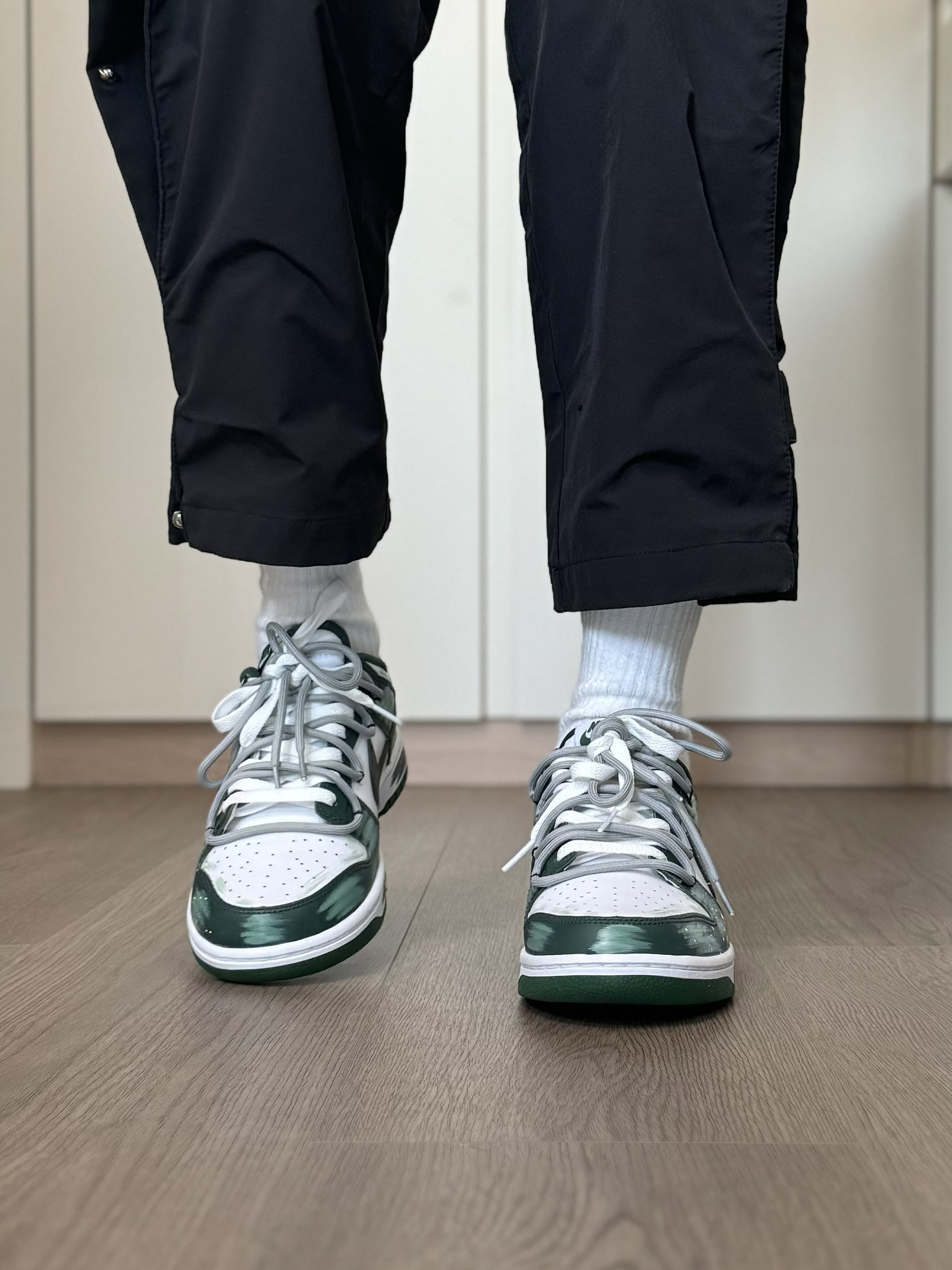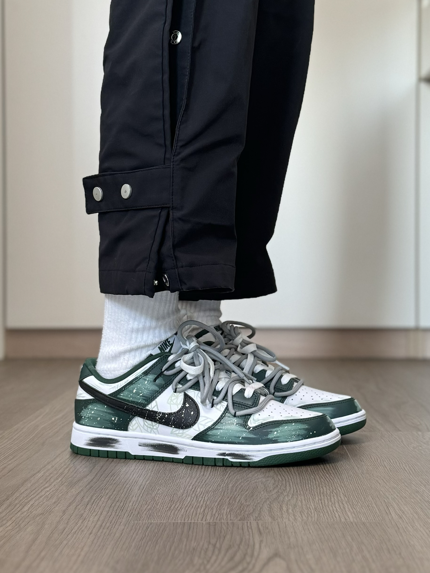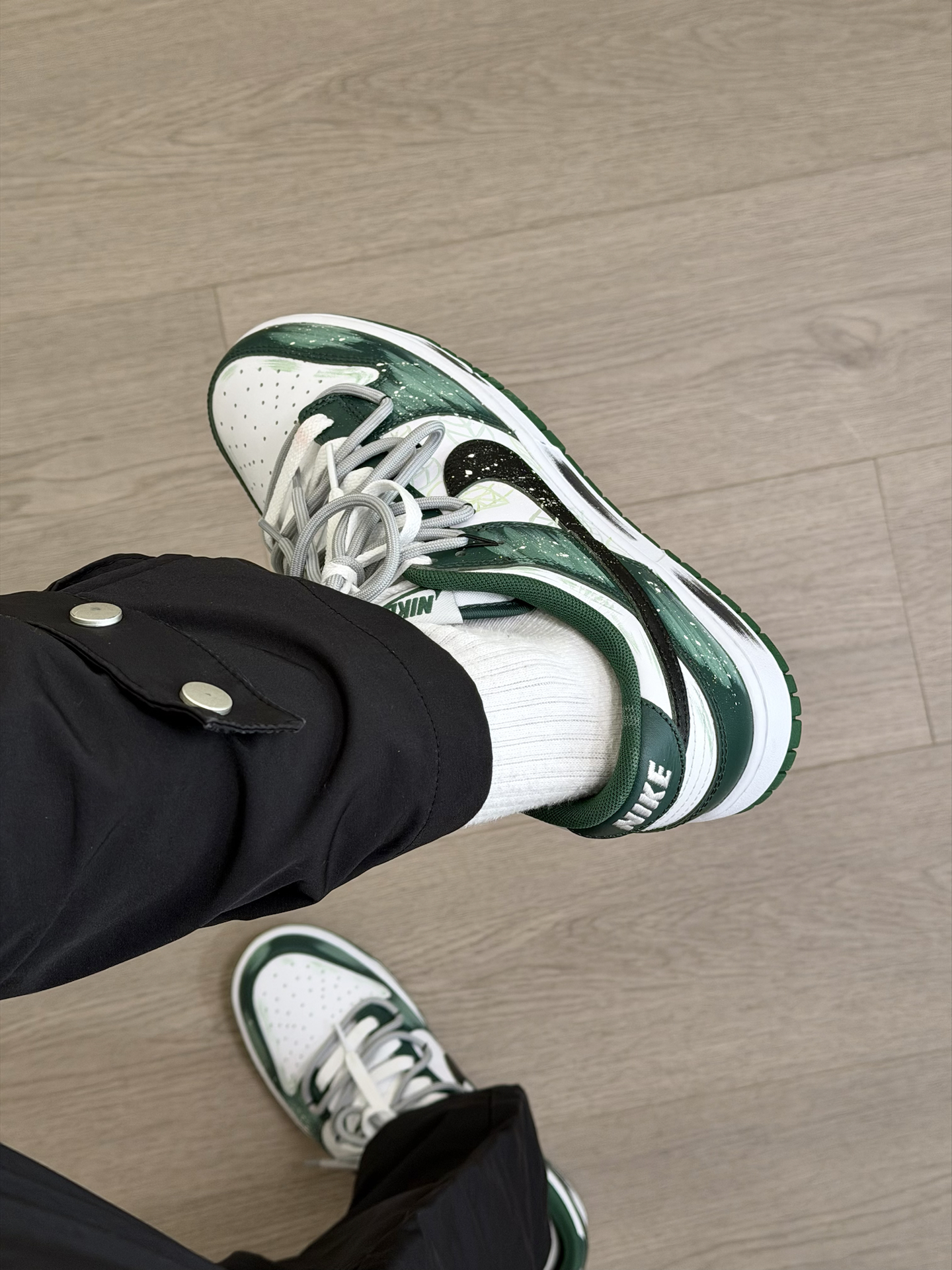 冬天还是得穿的亮一点 给你们分享一双 我最近蛮喜欢的小众nike板鞋~ 鞋面的绿色涂鸦 看起来就蛮像绿色仙踪的感觉 侧面还有手绘树叶和泼墨点缀 再加上双鞋带 真的超有设计感 而且上脚蛮好搭衣服的 就是板鞋的脚感 我觉得没有那么好 喜欢软一点的 换个厚实的鞋垫 能舒适不少 #被这双鞋帅到 #复古球鞋新主张 #双旦礼物节 #薄底鞋穿四季 #鞋帽选对赢一半