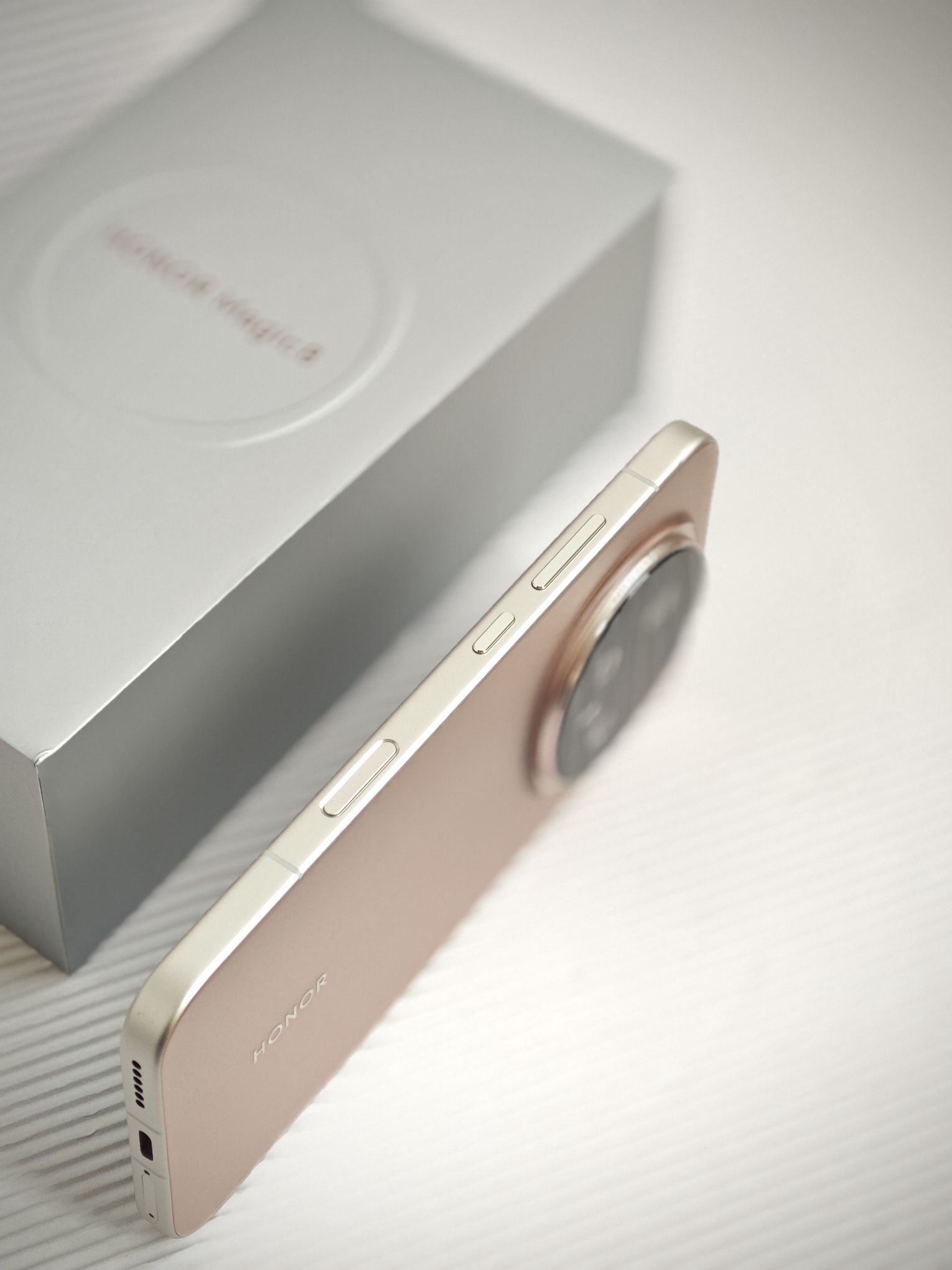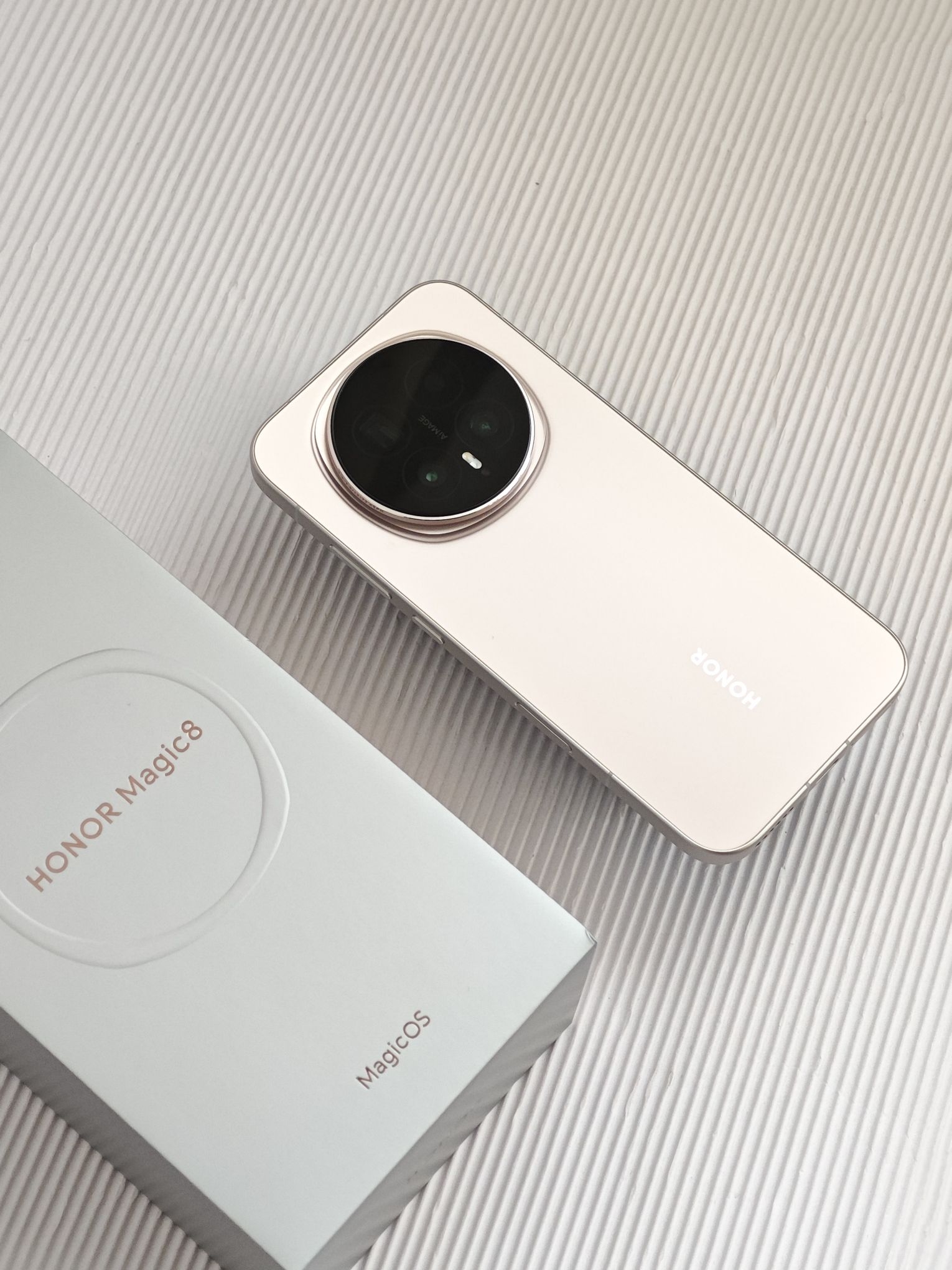荣耀Magic8 已经使用很多天了,这是刚到手时就拍的一组开箱图,但是忙于工作上的事儿一直没有时间发出。 简单聊聊它的外观设计,荣耀给手机做配色,有两种颜色做得很漂亮,一种淡雅的天青色,另一种便是我手中很喜欢的金色。荣耀Magic8 依旧延续上代的方圆设计,标准版后盖则升级一体式冷雕工艺,外观采用 AG 磨砂处理,标配航空级铝合金中框,你上手就能感受到它既有好质感又有好手感。正面是 6.58 英...