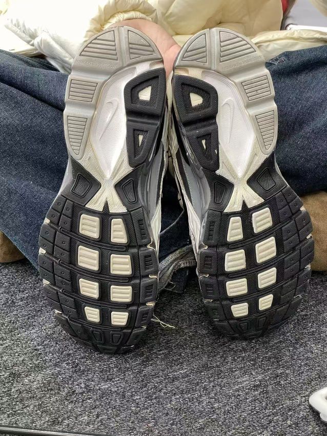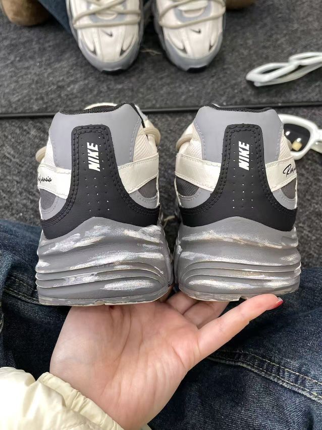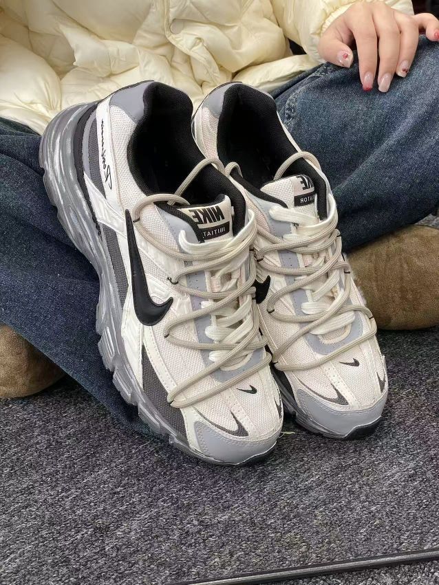 奶白+灰黑的配色太戳我!鞋面是网布+软皮拼接,看着复古又有质感,鞋侧手写体标还带点小个性~鞋底厚厚的但不笨重,踩上去软乎乎的,像踩云朵☁️ 日常穿牛仔裤、运动裤都能搭,通勤逛街走一天脚也不酸👍不过鞋头有点宽,脚窄的姐妹可能得选小