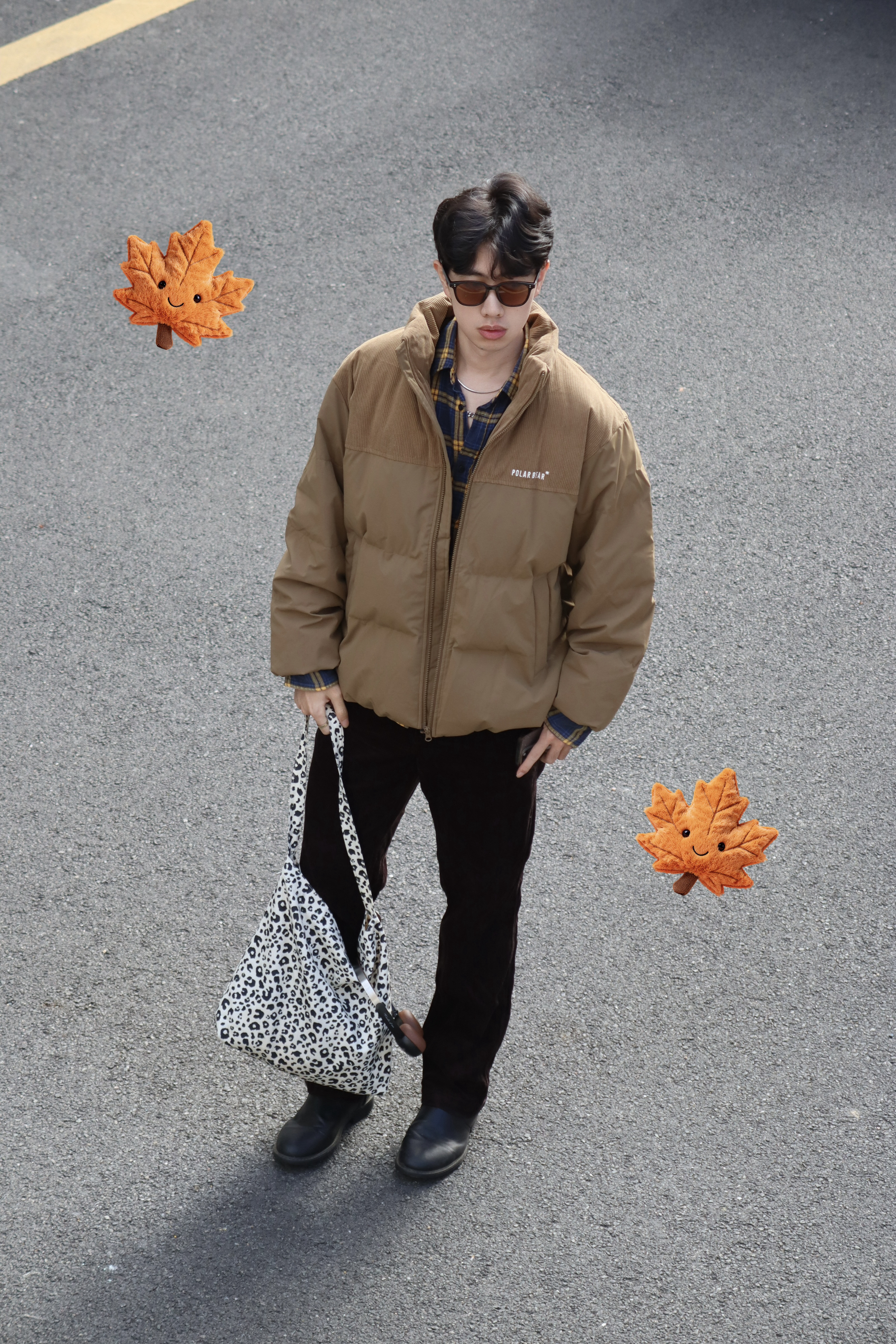🧍♂️cozy fit就得是这种“不靠建模靠穿搭”的街头vibe帅咖!🍂你们那都穿啥衣服啦❓ 🧥上衣:卡其色拼接羽绒+蓝黄格纹衬衫叠穿,棉服的复古质感和格纹的随性碰撞💥这个配色确实蛮适合秋天的haha就像把秋日氛围感穿上🍂松弛感🈶 👖下装:复古面料自带质感buff,通勤出行都🆗 👜配饰:野性豹纹出手,复古感up up💦还有茶色墨镜,戴上变氛围感帅哥🕶️