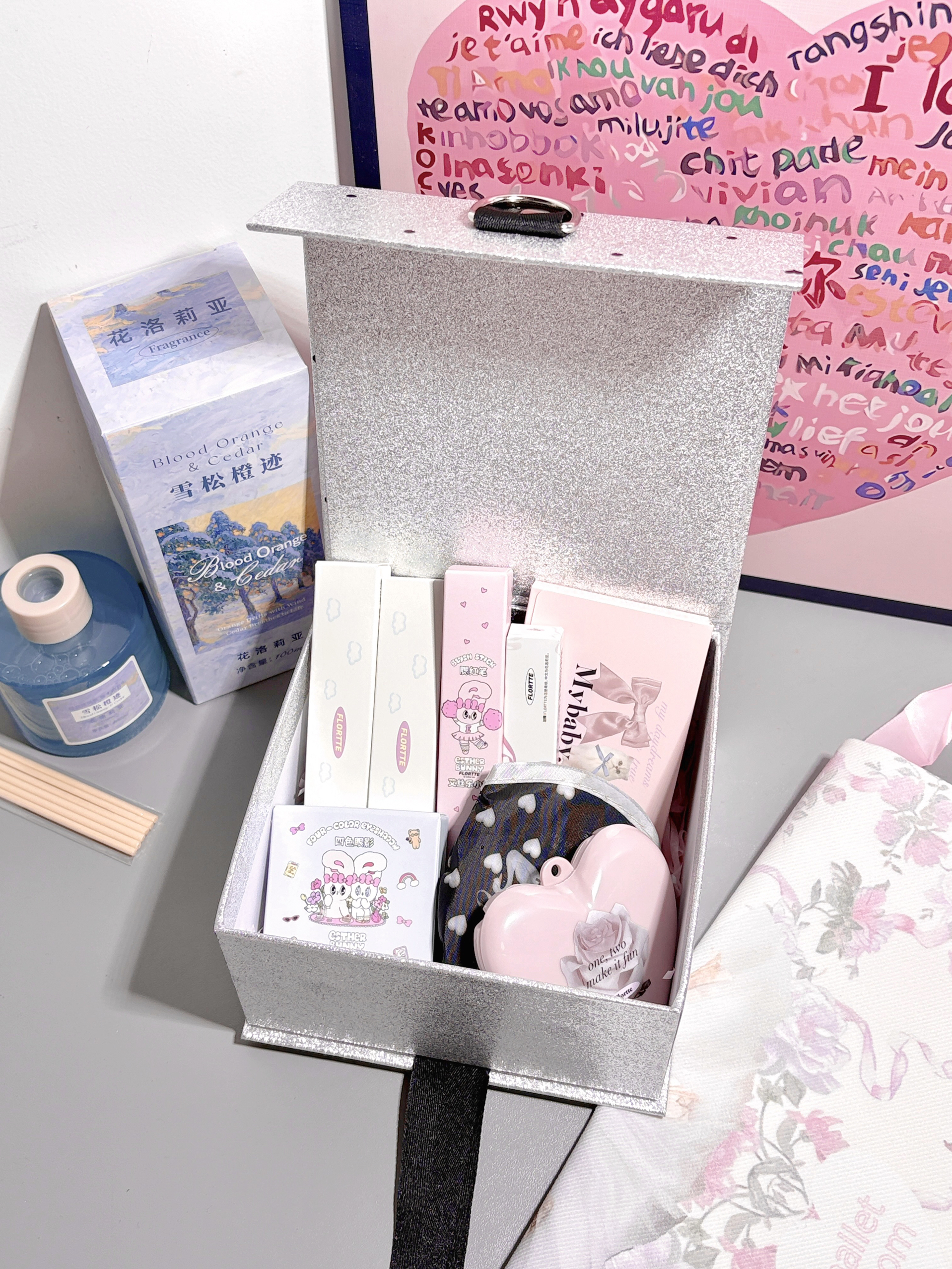 花洛莉亚也泰懂我们女孩子惹 这满满当当的彩妆礼盒谁不心动 里面唇釉 唇膏 腮红棒 眼影 还有扇子 吸油纸 梳子 包包 香薰 香薰挺好闻的 淡淡的清香 这个礼盒可见是尊滴用心啦